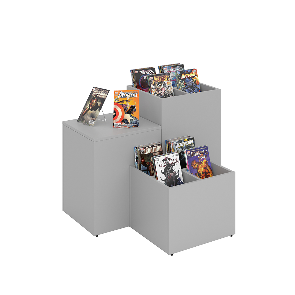 Le podium possède un couvercle amovible et des séparations astucieuses permettant de diviser la partie supérieure en 2 à 4 compartiments, en fonction de la taille des livres.