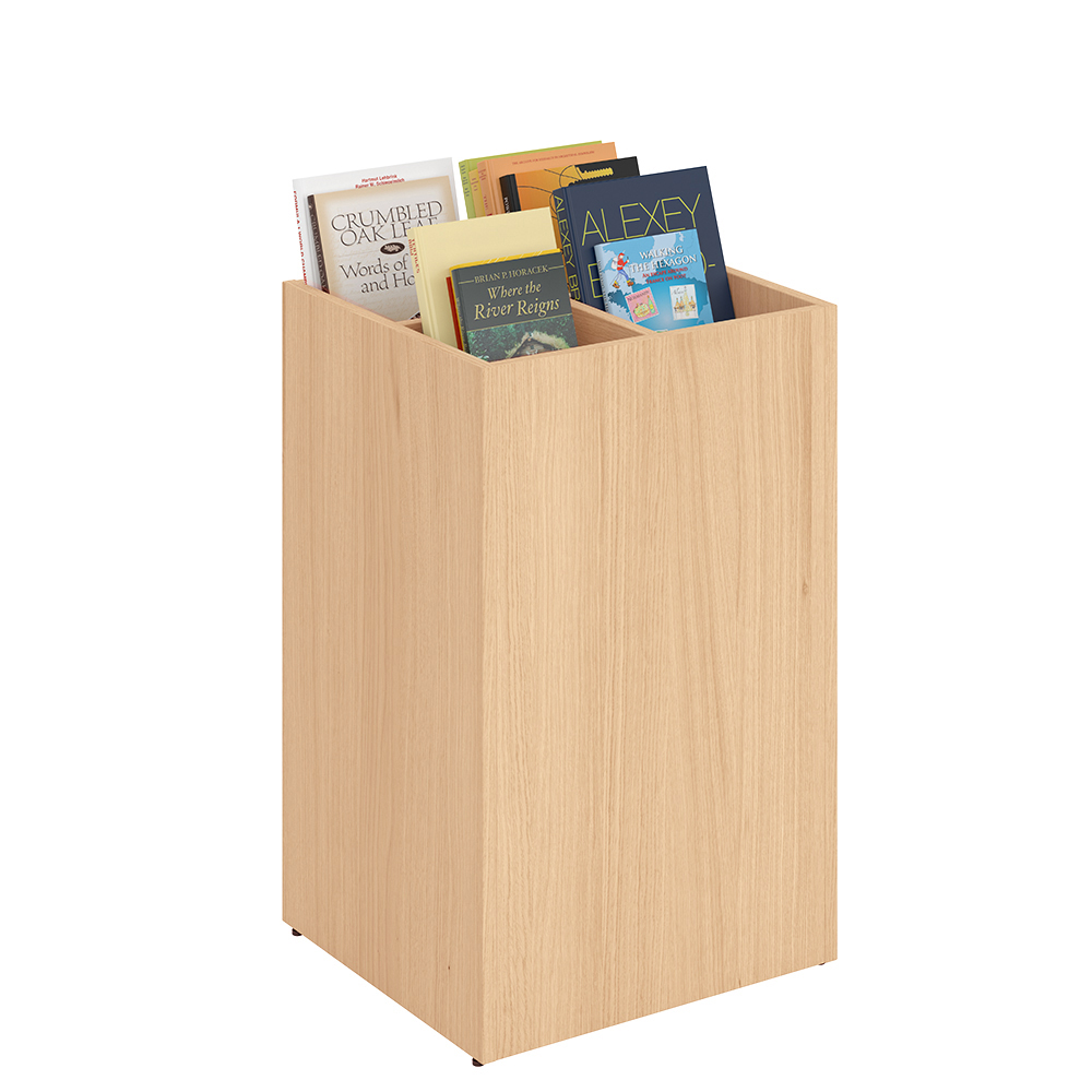 Le podium possède un couvercle amovible et des séparations astucieuses permettant de diviser la partie supérieure en 2 à 4 compartiments, en fonction de la taille des livres.