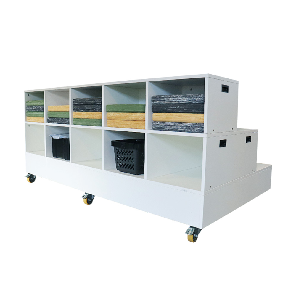 Avec son design minimaliste et élégant et ses charnières dissimulées, Verona peut être utilisé seul ou combiné avec d'autres unités. Au centre d'un espace ou contre un mur. À l'arrière, un grand espace est prévu pour ranger des objets tels que des coussins de siège, des jeux, des livres et des jouets, ce qui permet de laisser libre cours à la créativité. La partie supérieure du podium peut également être facilement inversée, ce qui permet de positionner les compartiments de rangement vers l'avant.