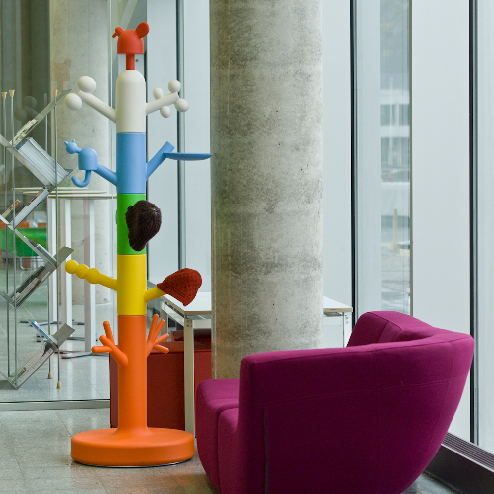 Un arbre féérique pour se rassembler. Une patère pour les jeunes, aux couleurs de l’arc-en-ciel, aussi ludique que seyante.