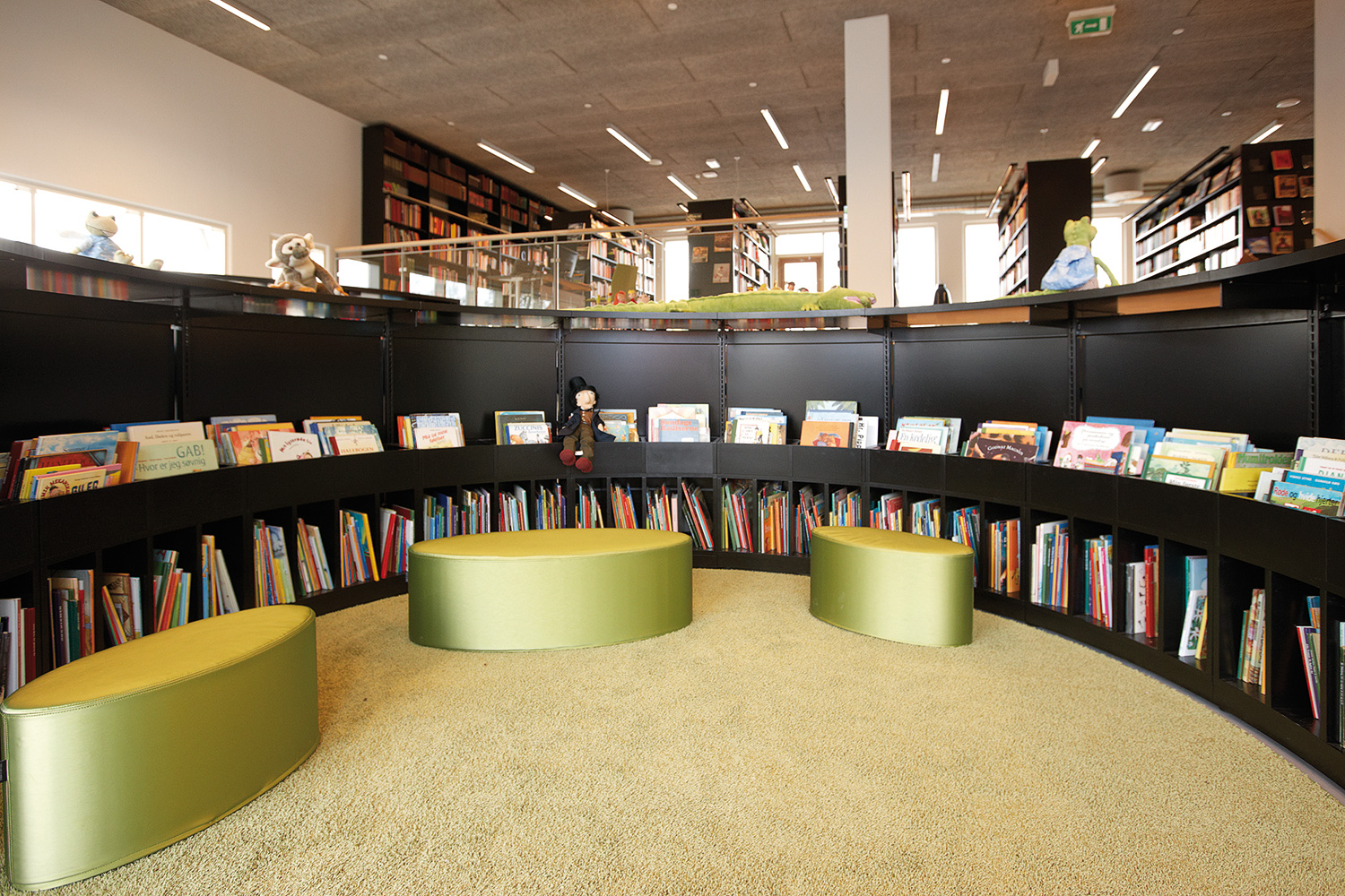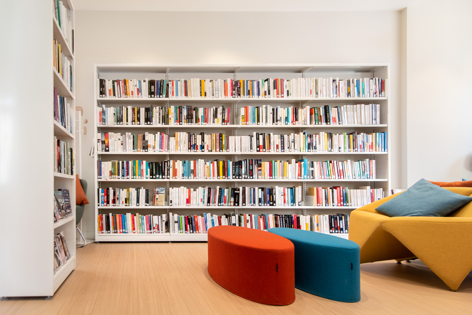 Ce pouf multifonctionnel de Softline est un joli complément aux meubles de bibliothèque plus traditionnels.