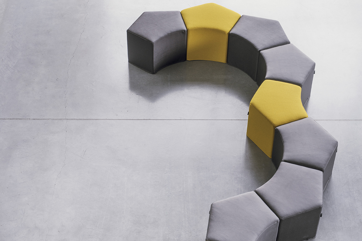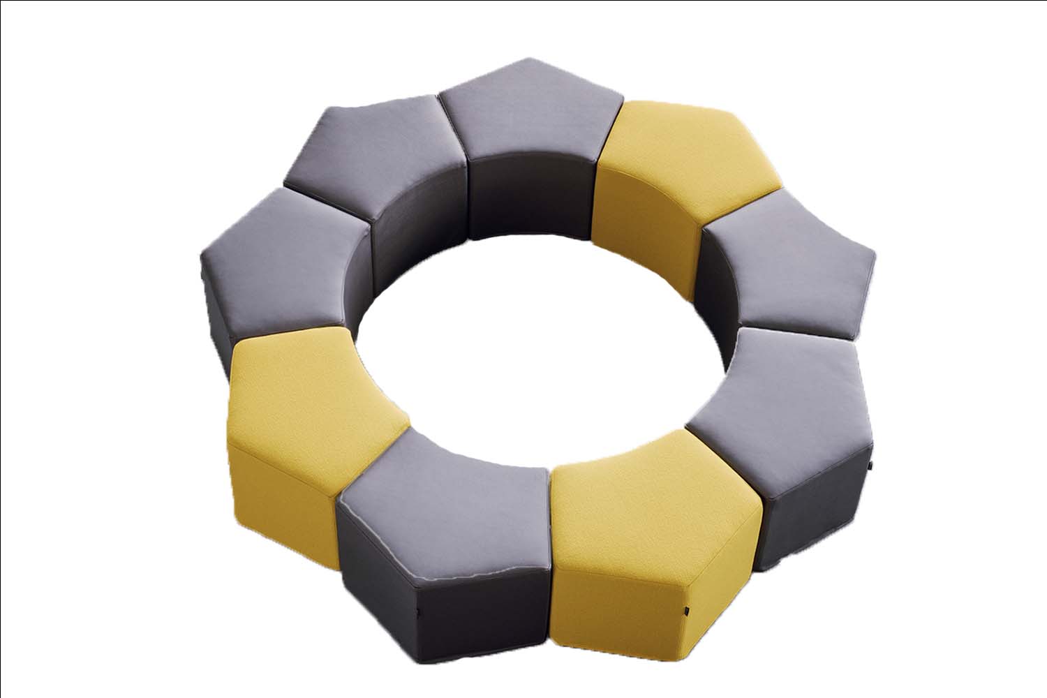 De nombreuses combinaisons et compositions sont possibles grâce à sa forme pentagonale. Combiné plusieurs poufs et jouer sur les couleurs pour réaliser des formes pratiques et originales.