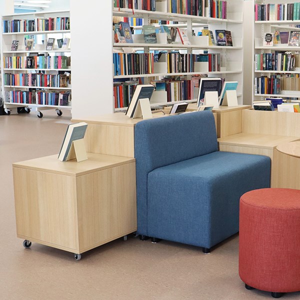 Présentoir à livres petit format en acrylique blanc opaque. Empilable.