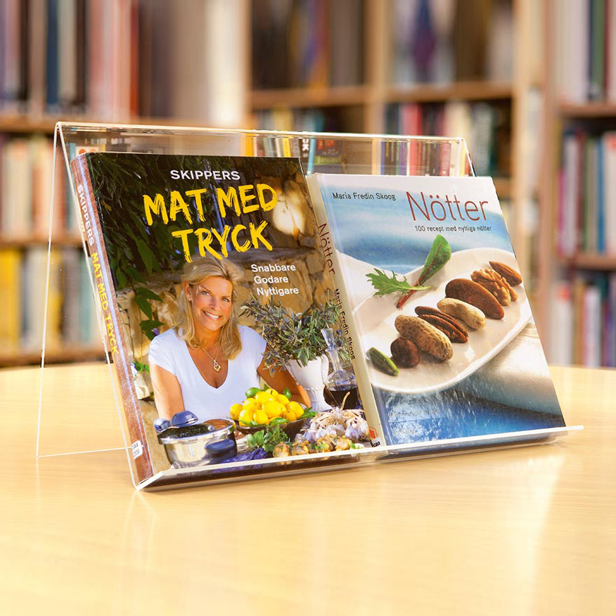 Présentoirs empilables, déclinés dans différentes hauteurs, largeurs, hauteurs et profondeurs.