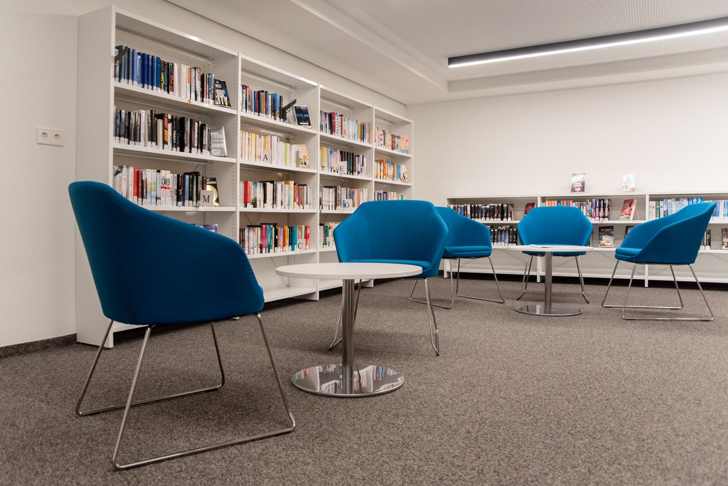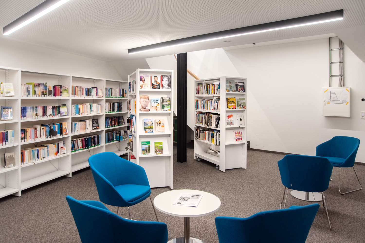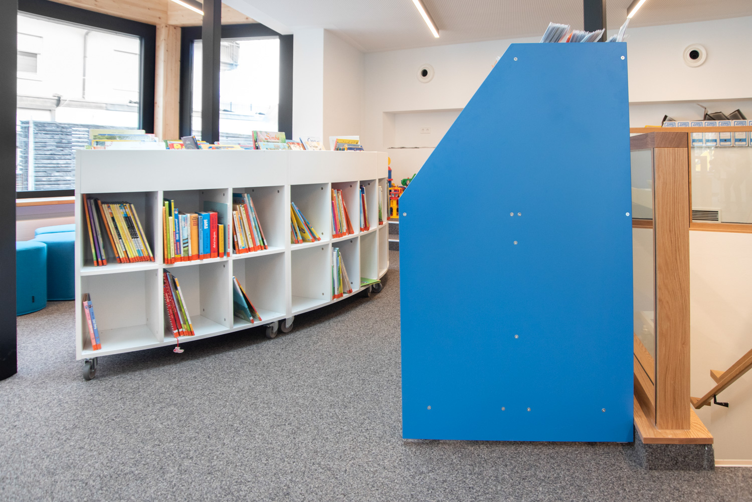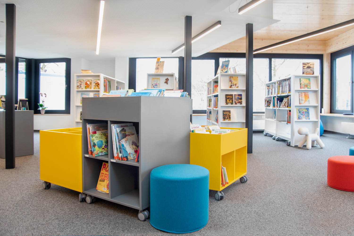 La répartition des espaces a été le plus grand défi, mais nous avons réussi à obtenir un bon résultat permettant d'accueillir tous types de public à l'intérieur sans que la bibliothèque ne semble trop exiguë ou saturée. Désormais, les habitants de Rot an See se retrouvent dans un environnement moderne et accueillant où ils peuvent trouver tout ce dont ils ont besoin.