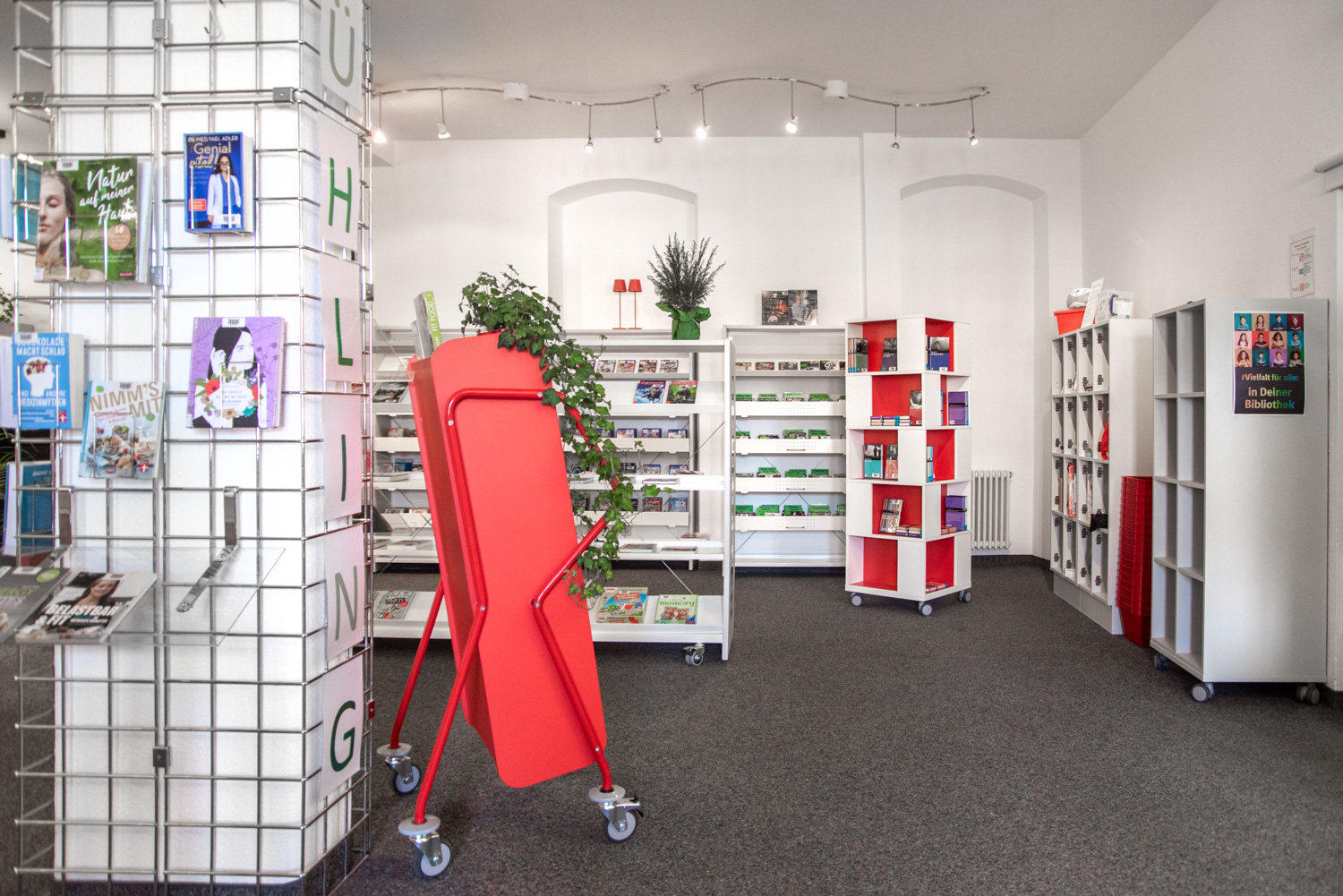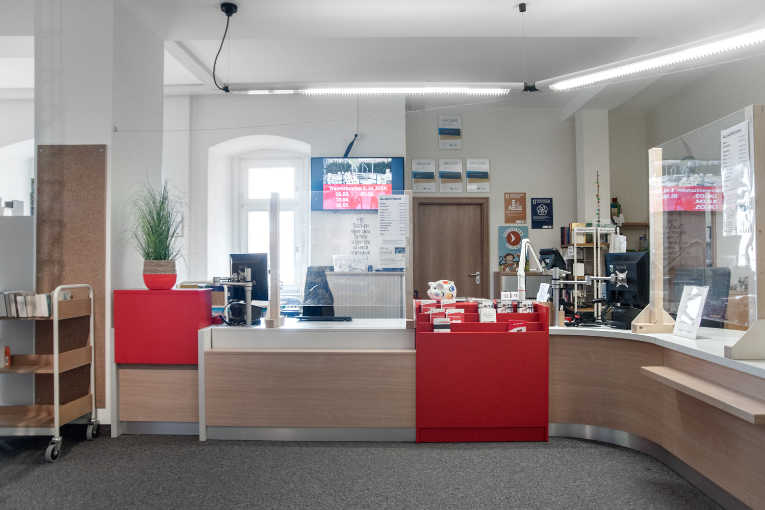 La bibliothèque municipale de Wertheim est située dans la vieille ville, sur les bords de la rivière Main. Nos architectes d'intérieur ont réaménagé le hall d'entrée et ont valorisé l'accueil et la visite des lieux.