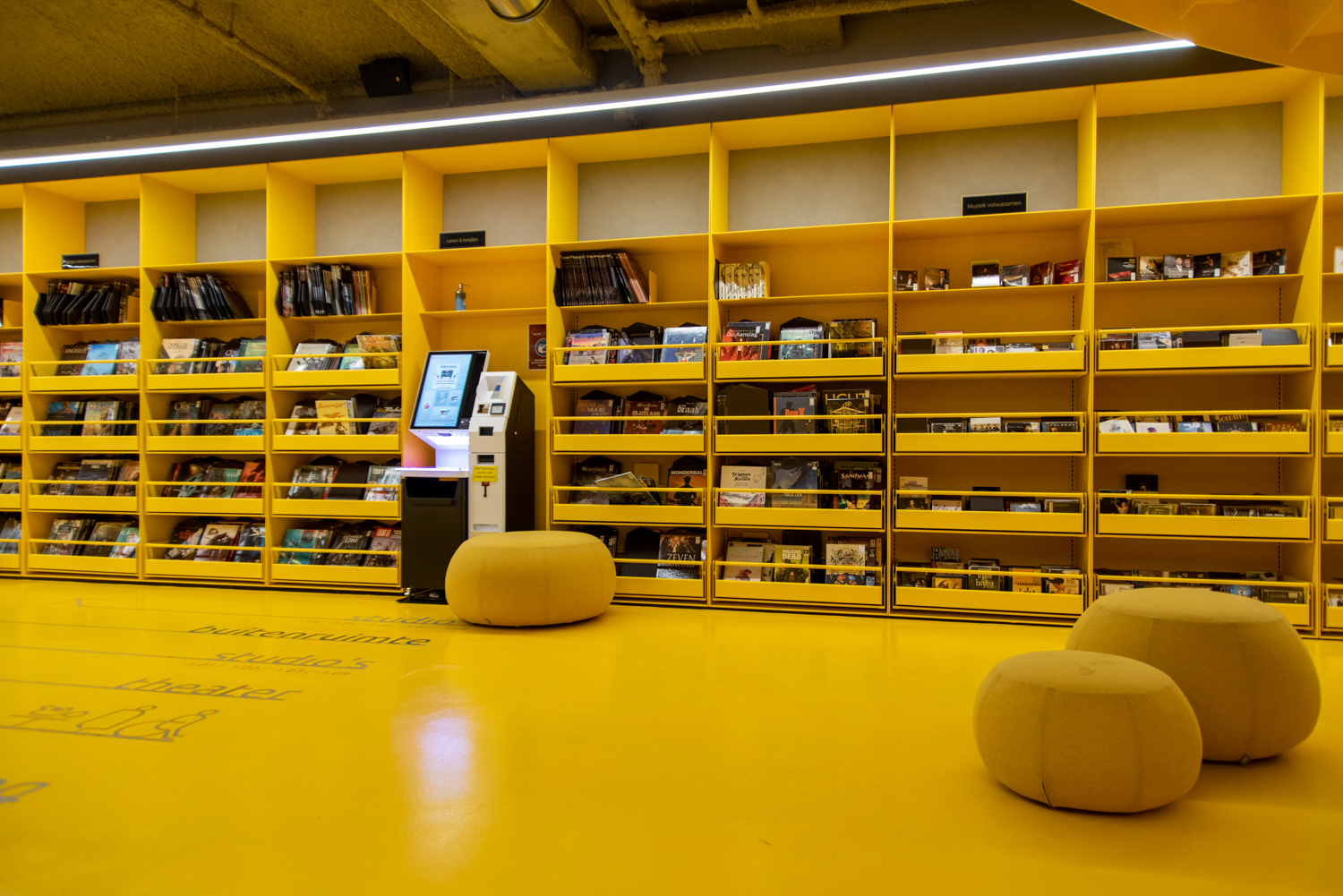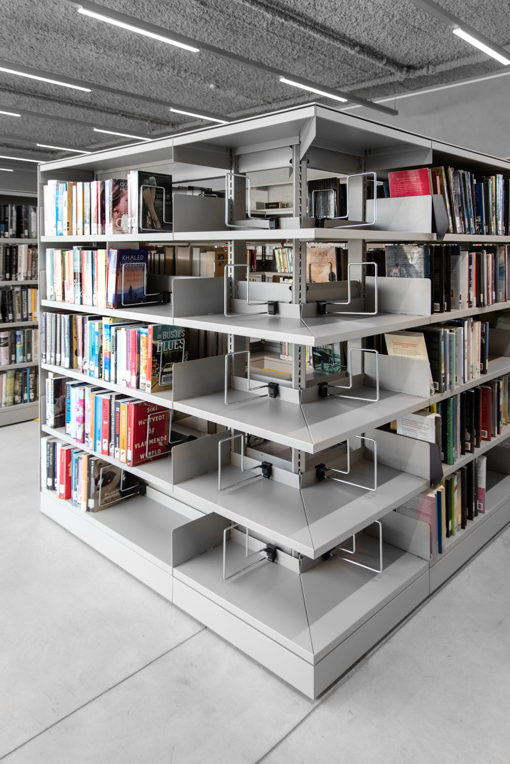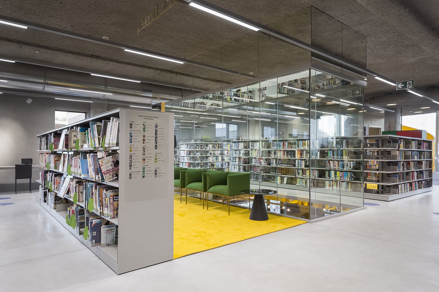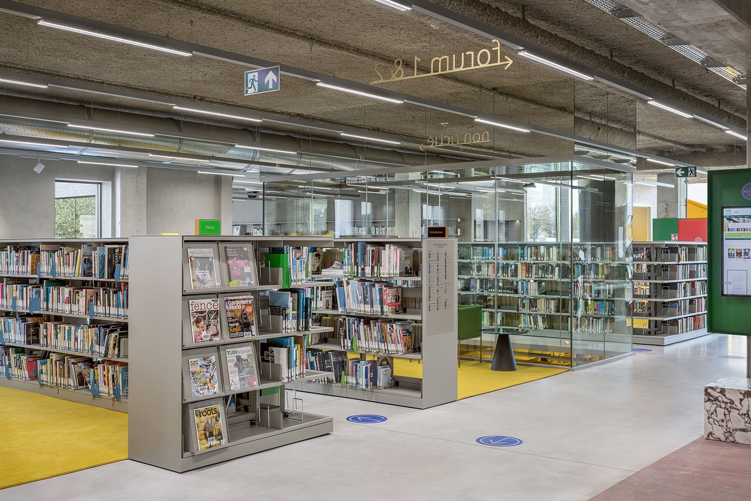Le bibliothécaire Jan Claeys ajoute: «La bibliothèque est dynamique, ludique, invitante à explorer, pour l'utilisateur indépendant et autonome grâce à l'utilisation optimale de l'informatique. Un concept global qui met l'accent sur l'expérience et l'ouverture. »