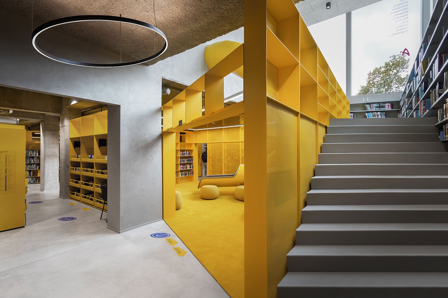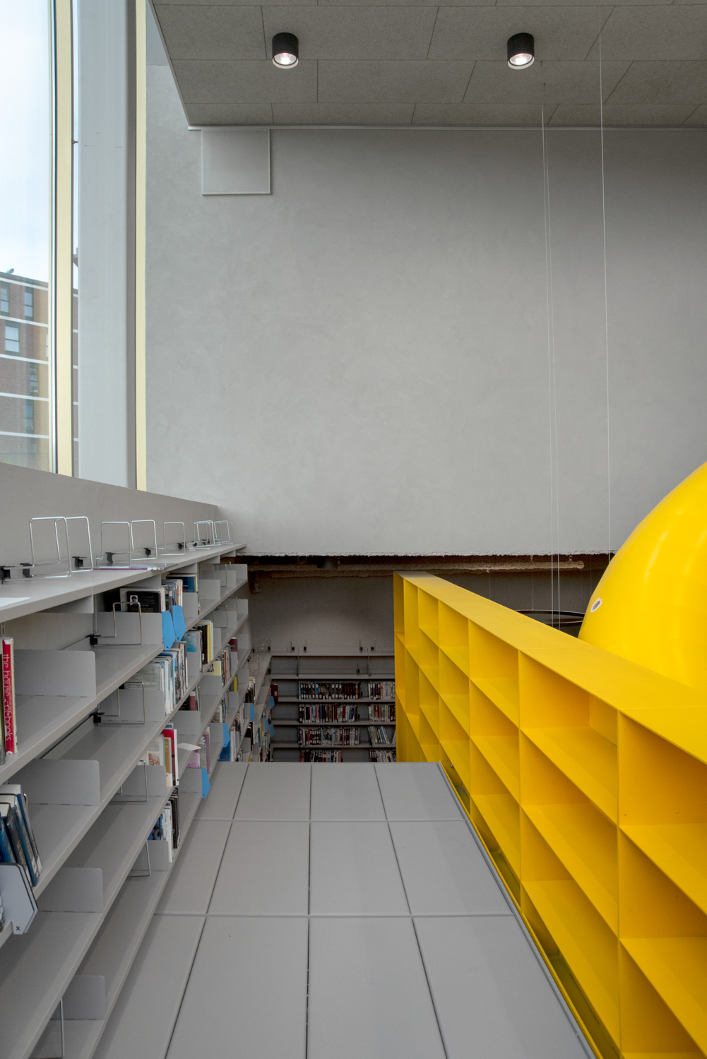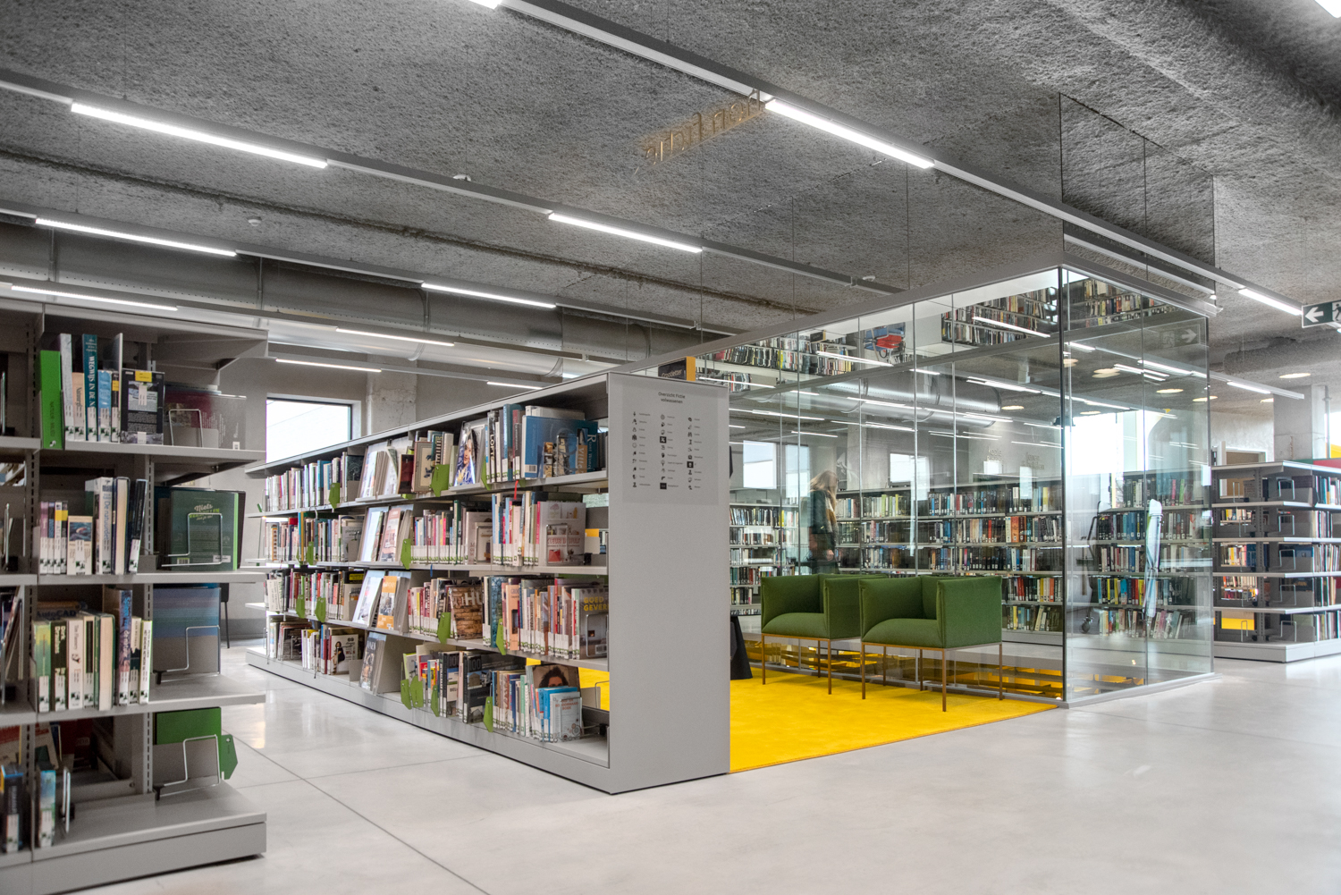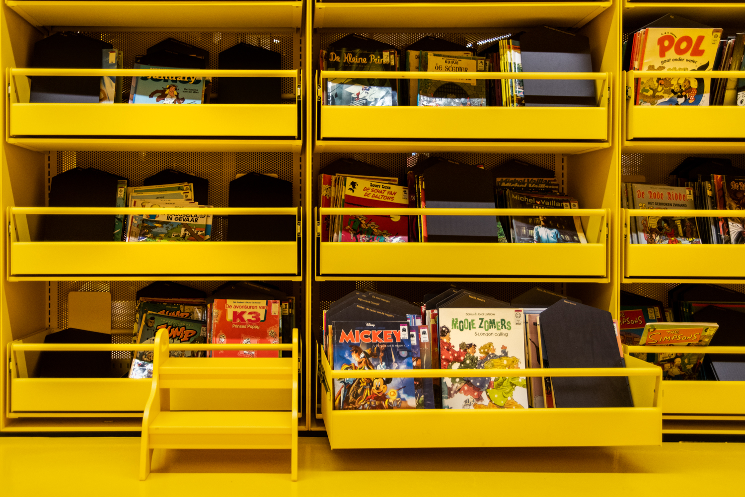 Le bibliothécaire Jan Claeys ajoute: «La bibliothèque est dynamique, ludique, invitante à explorer, pour l'utilisateur indépendant et autonome grâce à l'utilisation optimale de l'informatique. Un concept global qui met l'accent sur l'expérience et l'ouverture. »