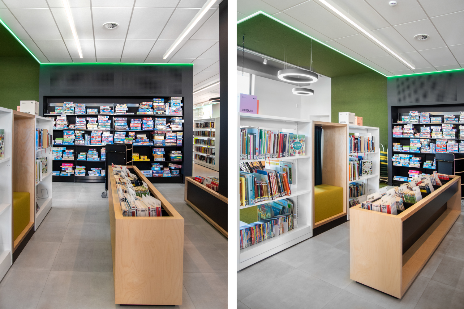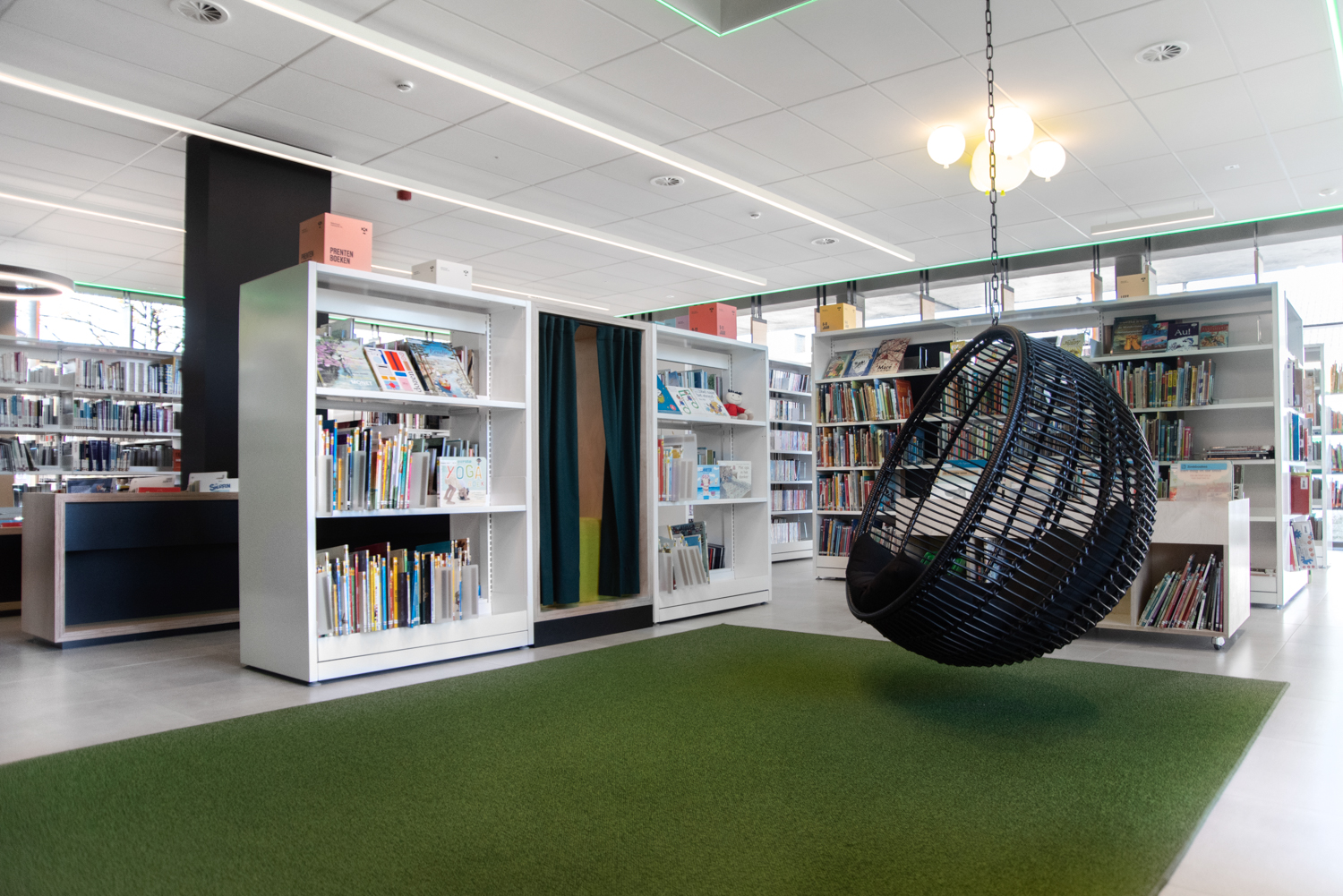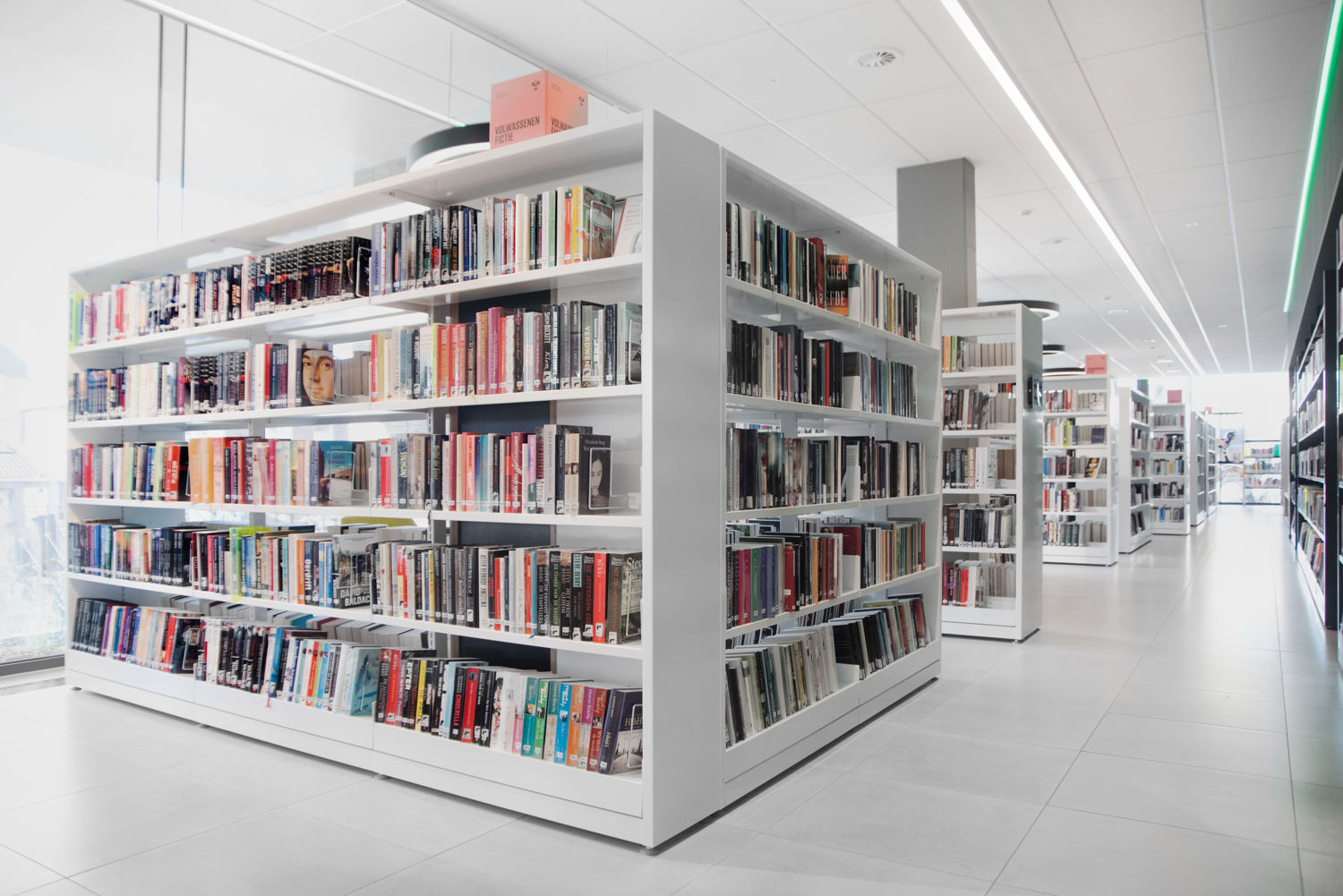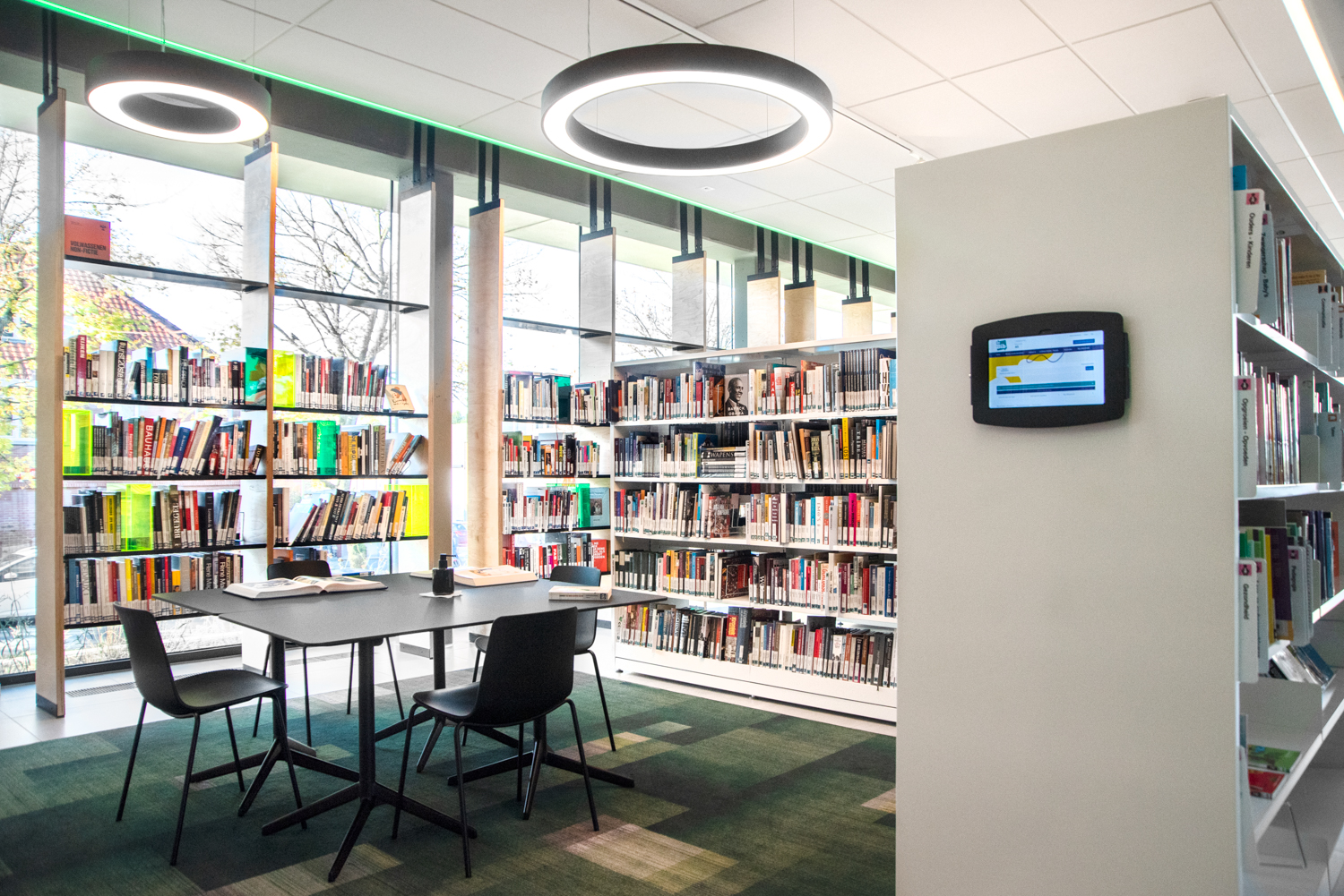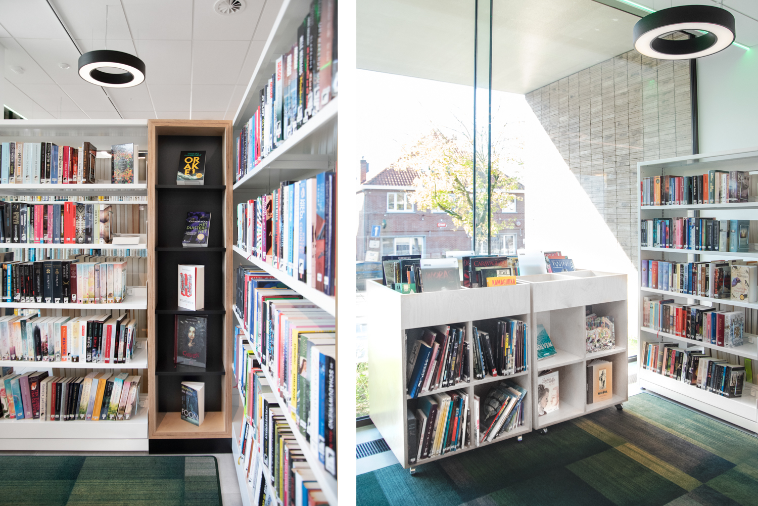 La bibliothèque publique de AS est située au milieu de la province belge du Limbourg. Elle est caractérisée par beaucoup de lumière et par son atmosphère chaleureuse. L’aménagement combine des mobiliers de bibliothèque standard et des réalisations sur mesure.