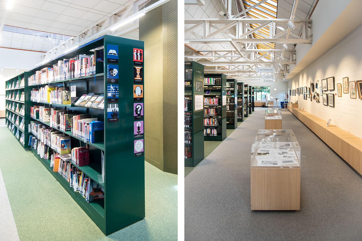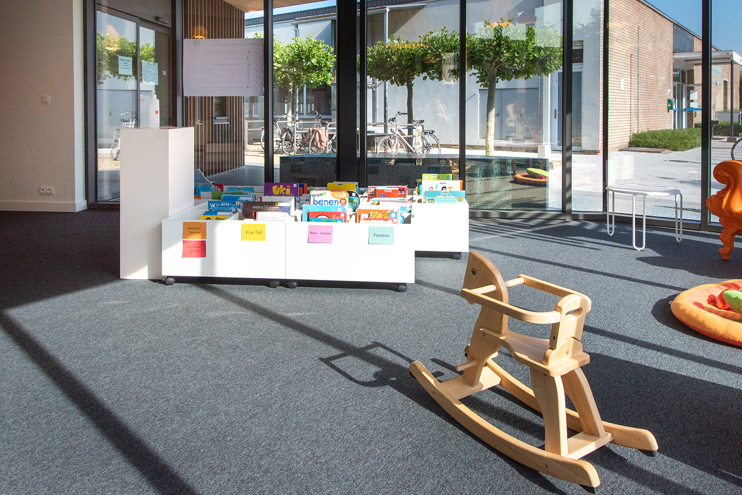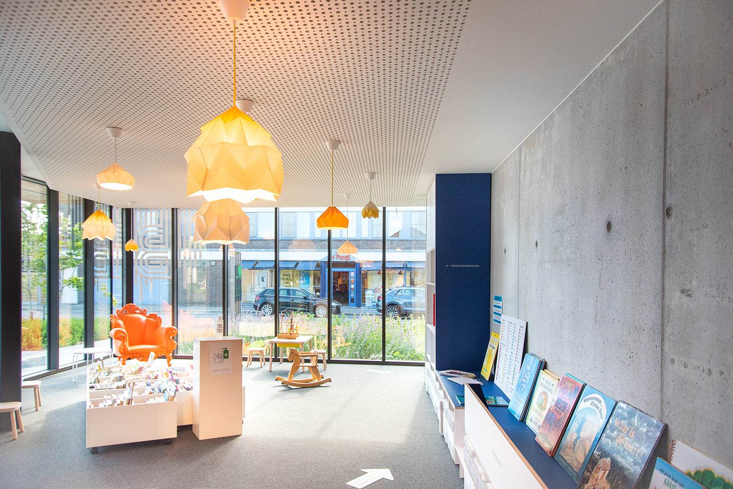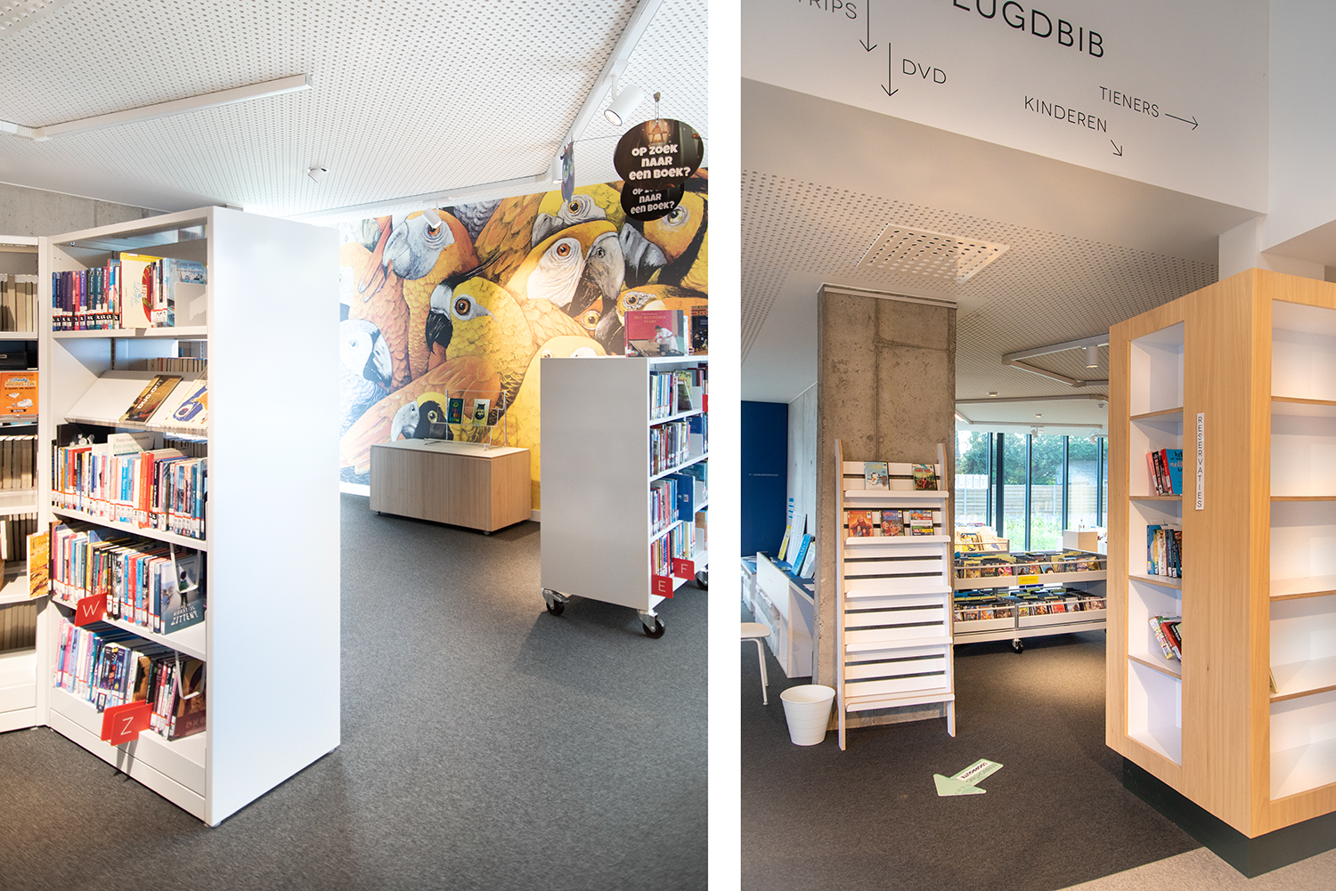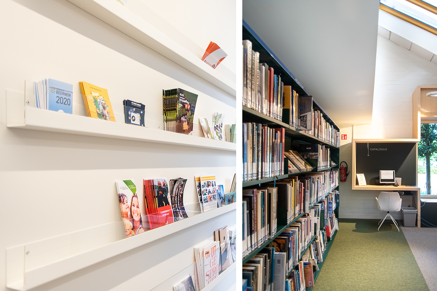 Après presque 30 ans, la bibliothèque de Beernem était prêt pour une rénovation complète et d'un changement tourné vers l'avenir d'une bibliothèque purement axée sur la collection à une bibliothèque d'expérience. Avec de nouveaux éclairages, mobilier sur mesure et rayonnages, un centre de connaissances contemporain a été créé où on se sent chez soi. Une nouvelle construction offre un nouvel espace complémentaire, notemment pour les jeunes lecteurs. Le visiteur trouve son chemin grâce à l’aménagement clairement lisible, et une signalétique claire. L'utilisation de couleurs et de matériaux avec une touche scandinave apporte un confort chaleureux à la bibliothèque animée.