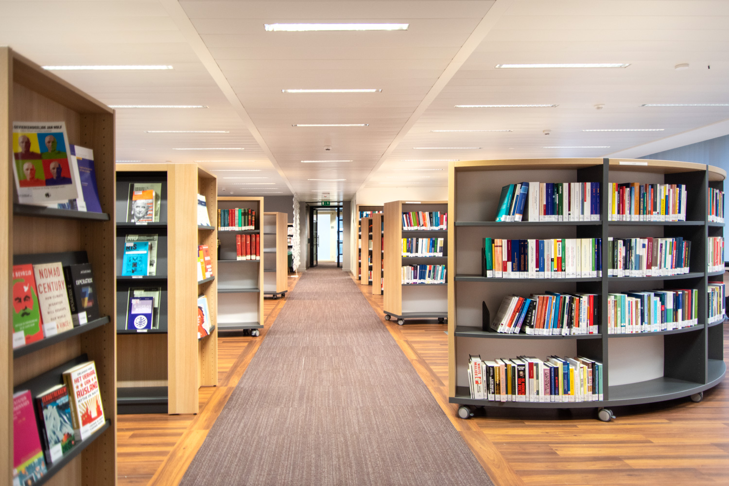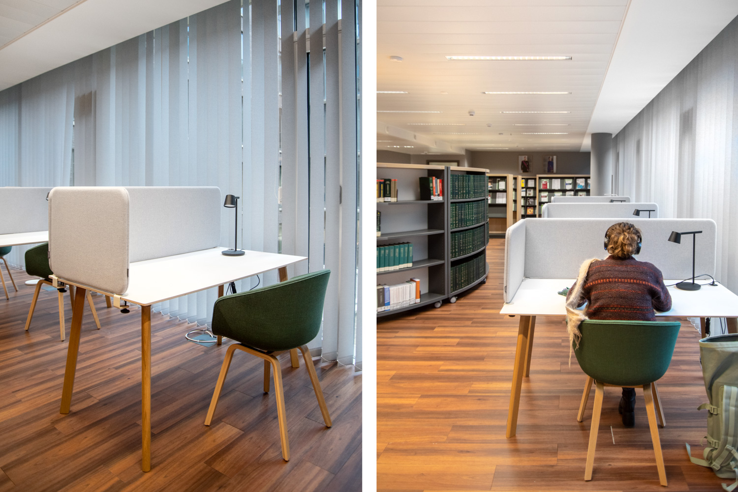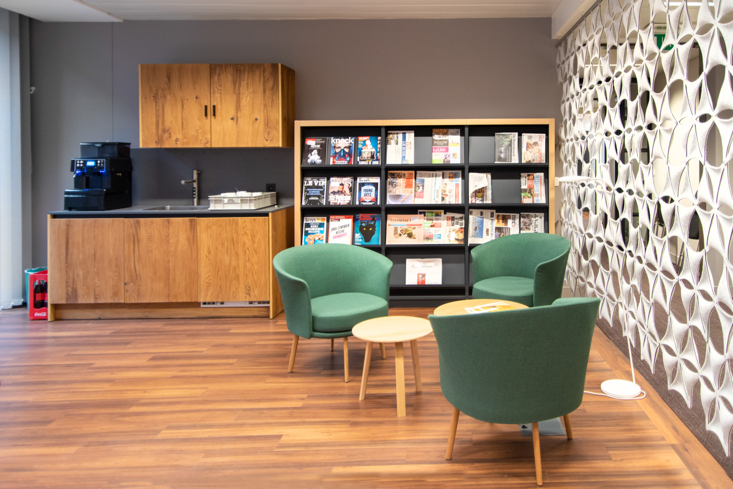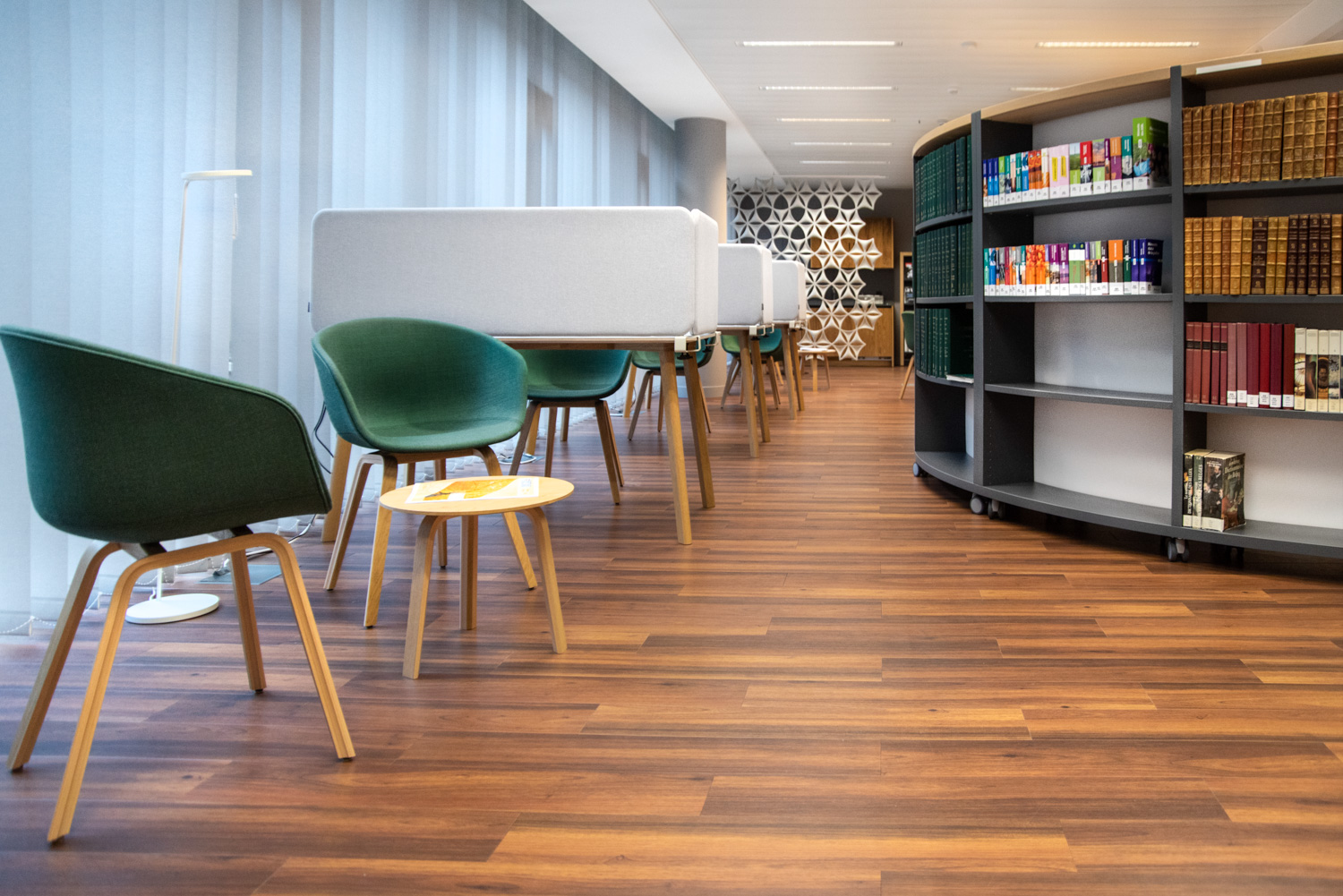 La nouvelle salle de lecture a été conçue pour attirer davantage de visiteurs et offrir aussi bien la possibilité de travailler dans la bibliothèque que celle de lire tranquillement un journal avec une tasse de café.