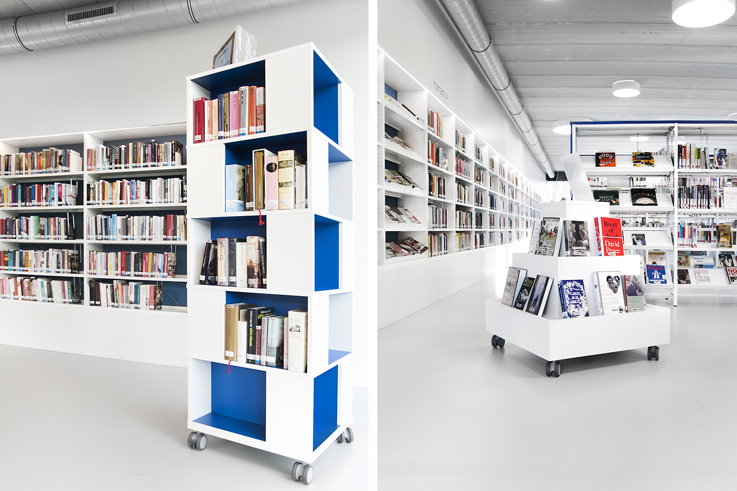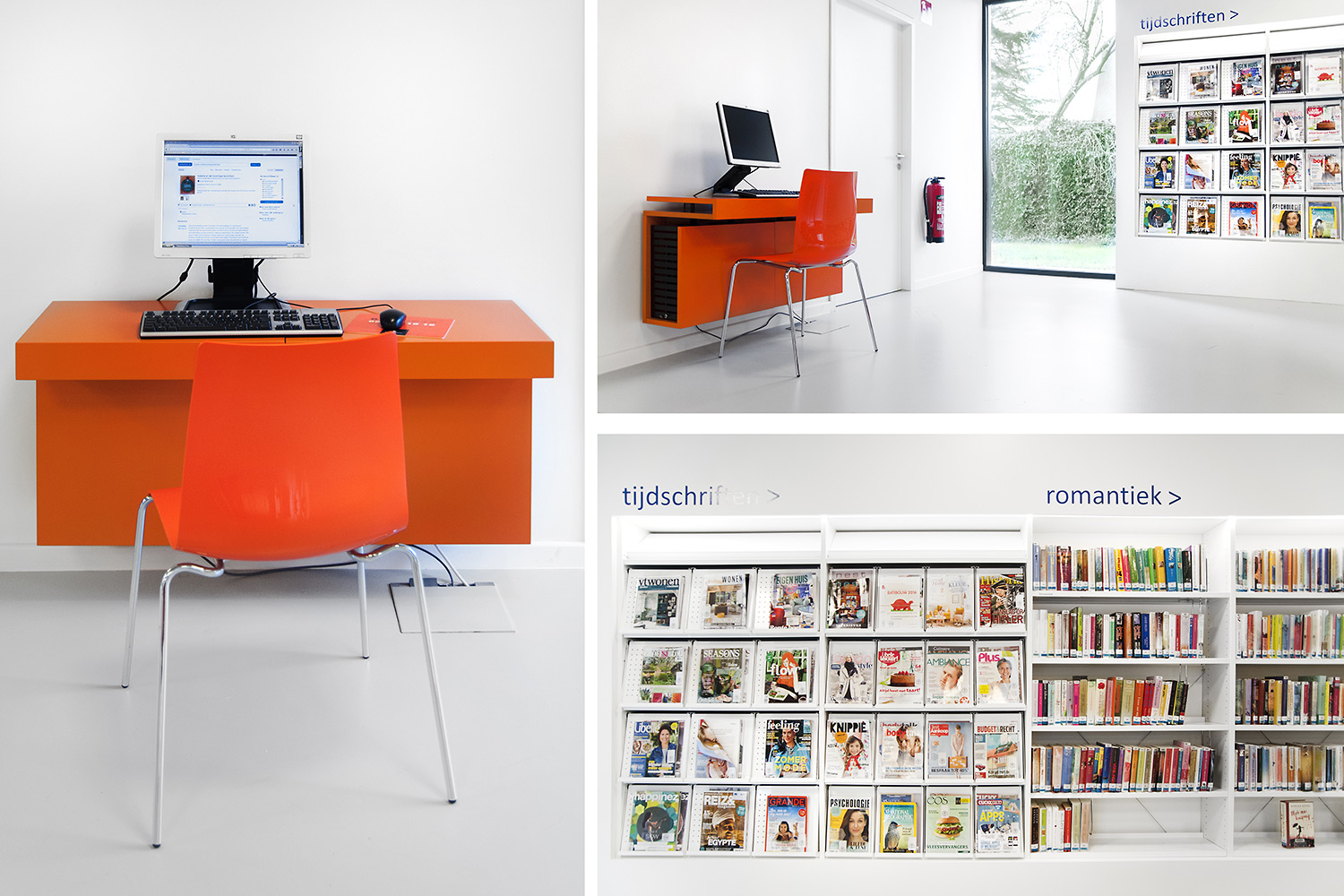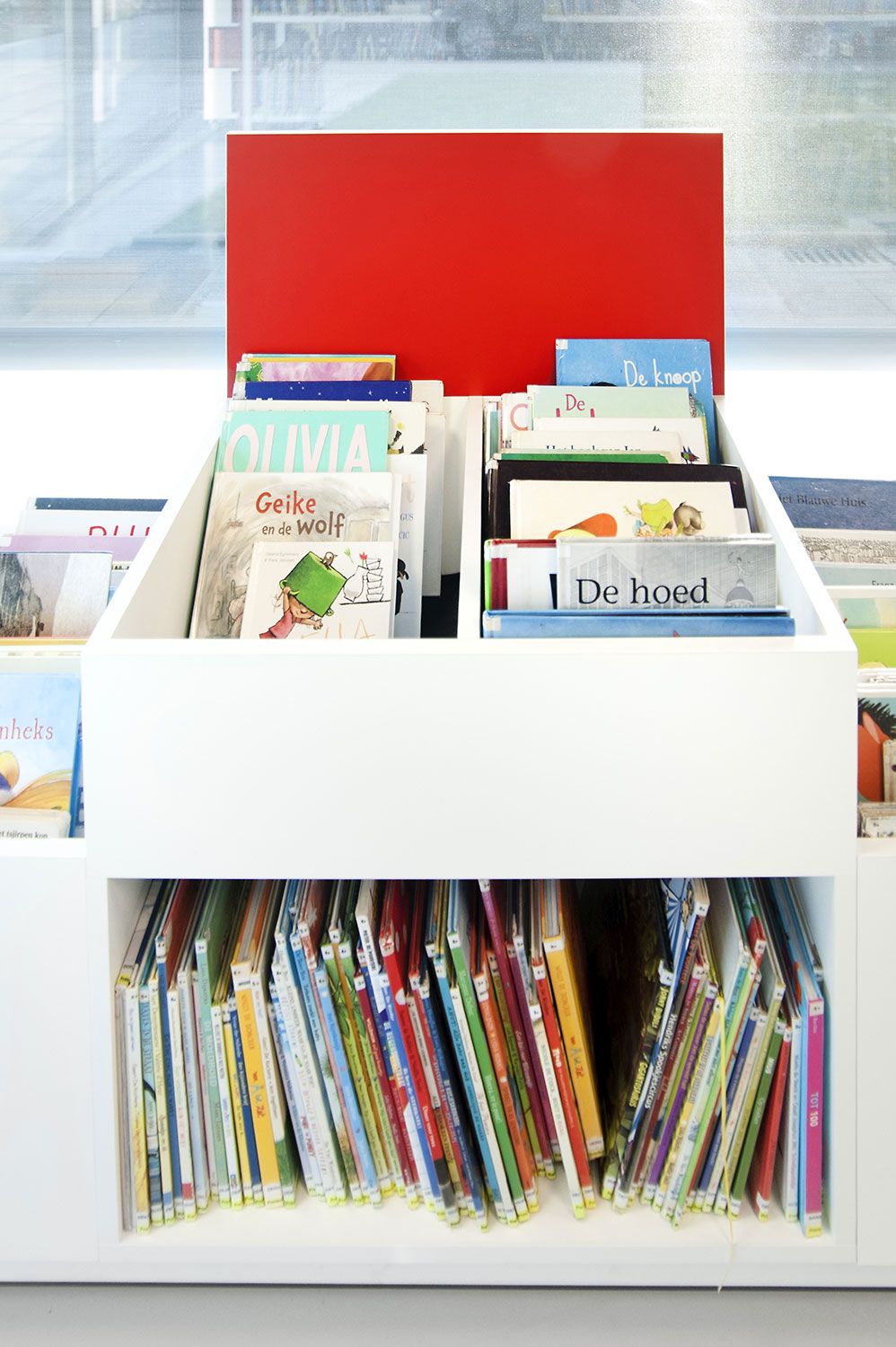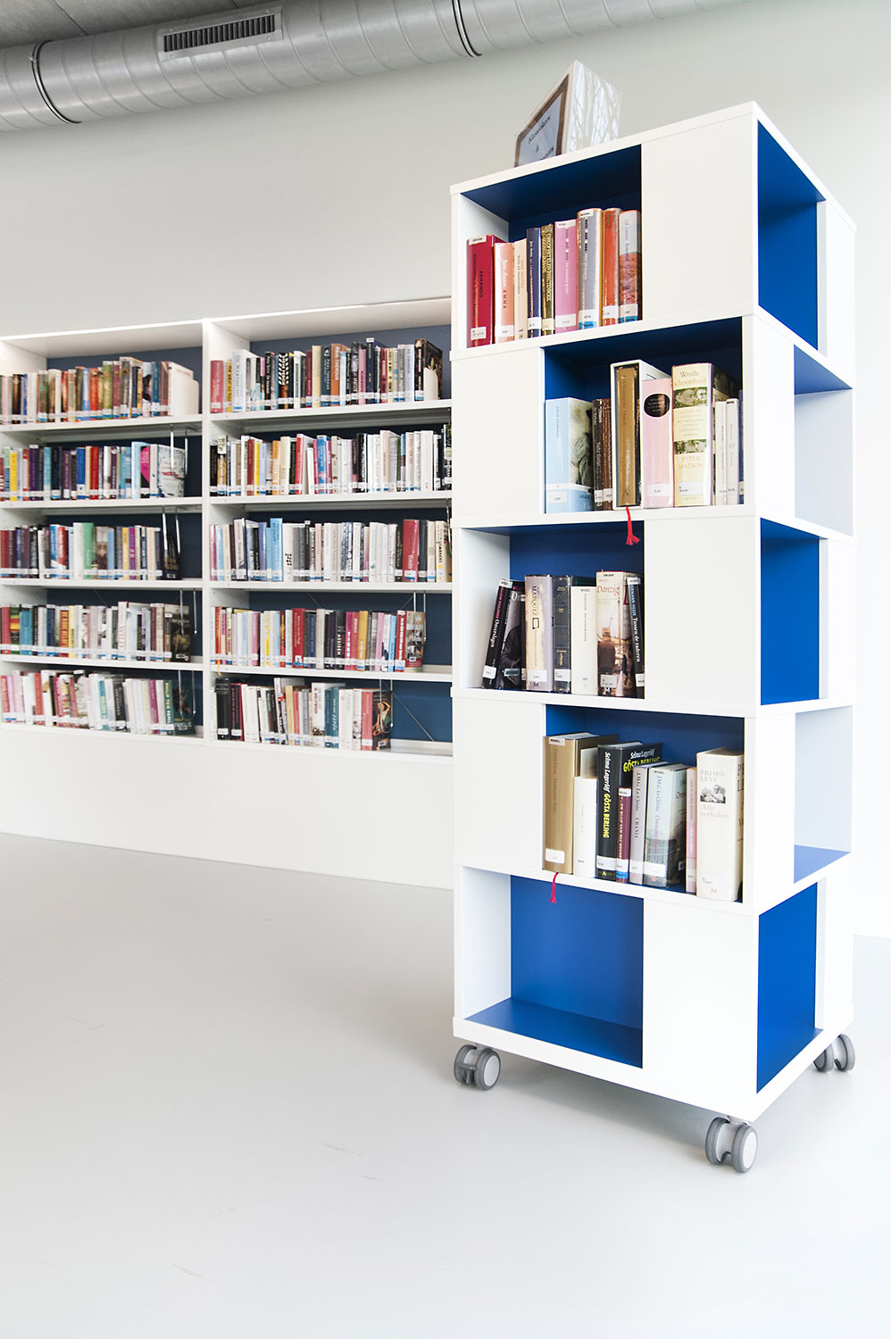 L’abondante lumière naturelle et la vue sur le parc sont les principaux atouts de cette bibliothèque agréable et intemporelle. Quelques notes colorées renvoient en outre aux différents groupes cibles et les tablettes ont été encastrées pour conserver un design minimaliste.
