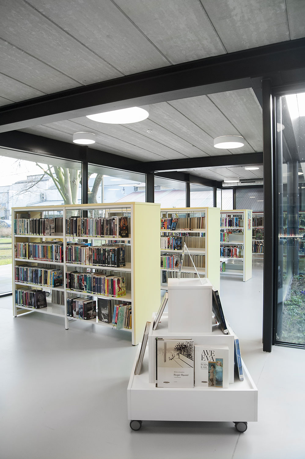 L’ancienne bibliothèque de Tronchiennes était installée dans un bâtiment loué qui ne répondait plus aux besoins des bibliothèques modernes. La surface exploitable de la nouvelle implantation est nettement supérieure et a ainsi permis l’aménagement de rayonnages plus bas pour une meilleure clarté et un sentiment d’espace accru.