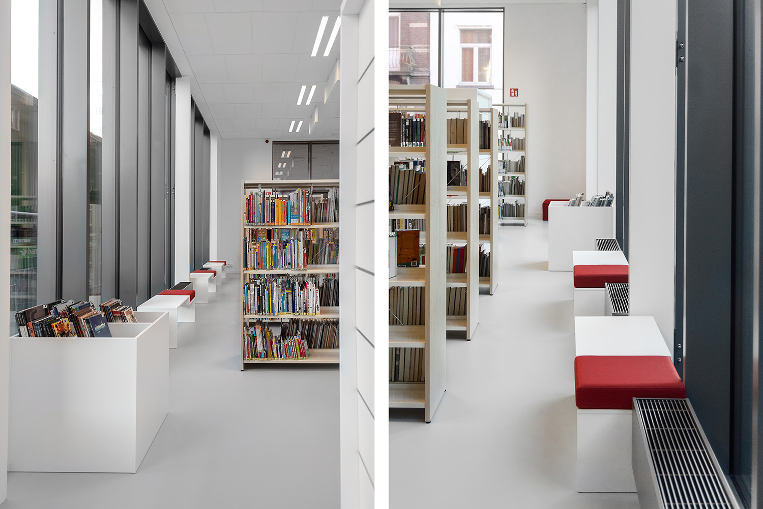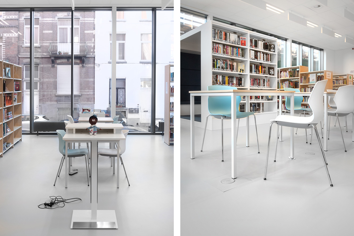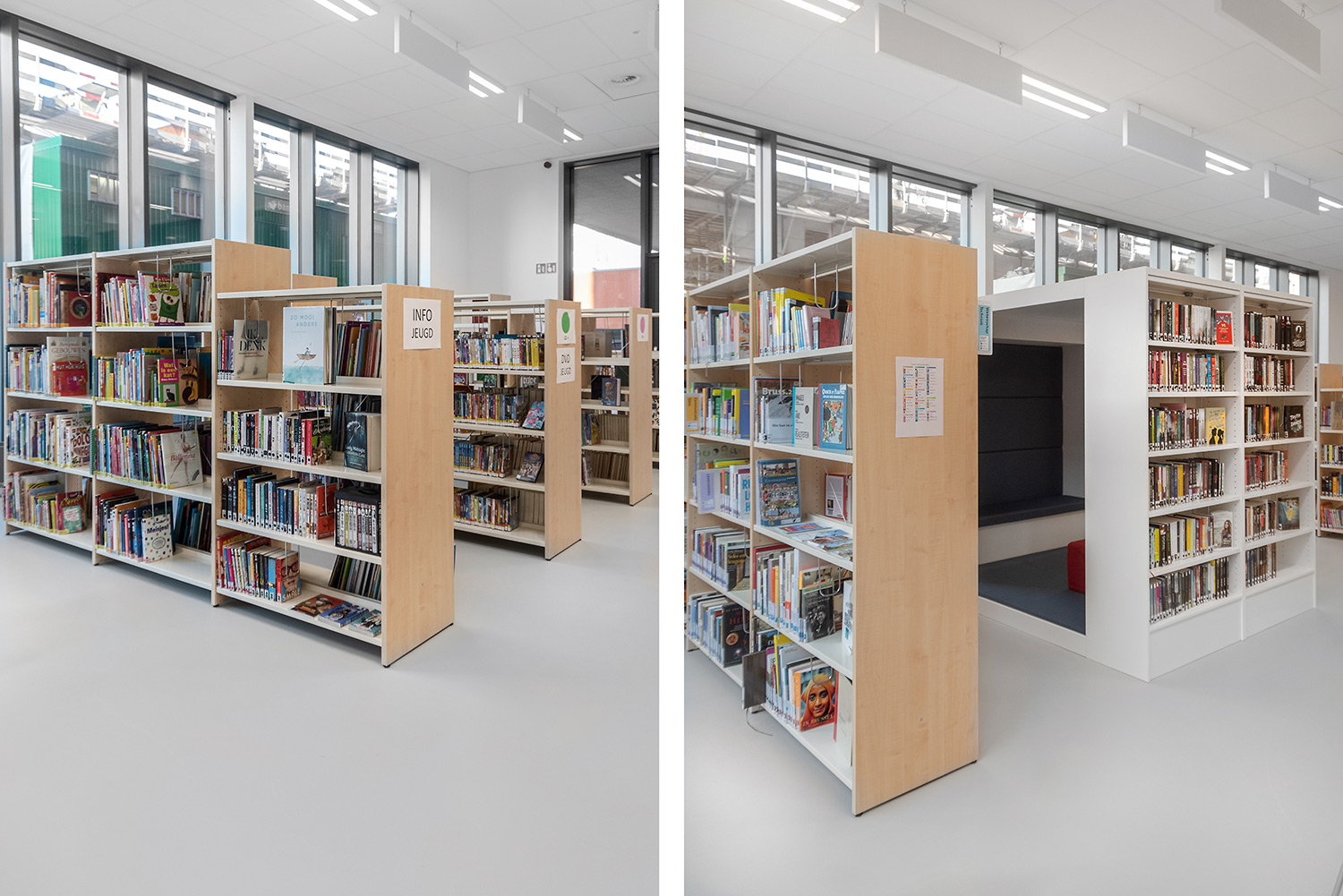 La bibliothécaire Nathalie Cools: "Nous avons opté pour des zones claires: le coin bébé avec une estrade, le coin adolescent avec le Cocoon et le grand cercle de lecture au centre. Avec des accents de couleurs provenant de la collection elle-même et de touches gaies comme un tapis de jeu. Les lecteurs sont très satisfaits avec leur nouvelle bibliothèque. La collection prend tout son sens et la bibliothèque devient, en tant qu’entité invisible, votre deuxième maison. Nous avons choisi Schulz pour leur qualité reconnue
