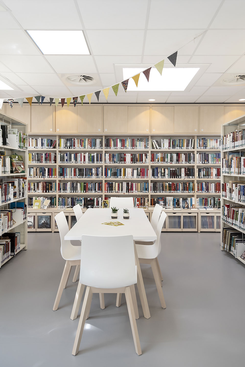 La bibliothécaire Frederika Van Wing: «Une bibliothèque pour tous, c'est une bibliothèque accessible, au propre comme au figuré. Un accès sans barrières, du mobilier mobile dans une seule pièce lumineuse et ouverte et une collection nettement présentée dans un aménagement flexible. ”