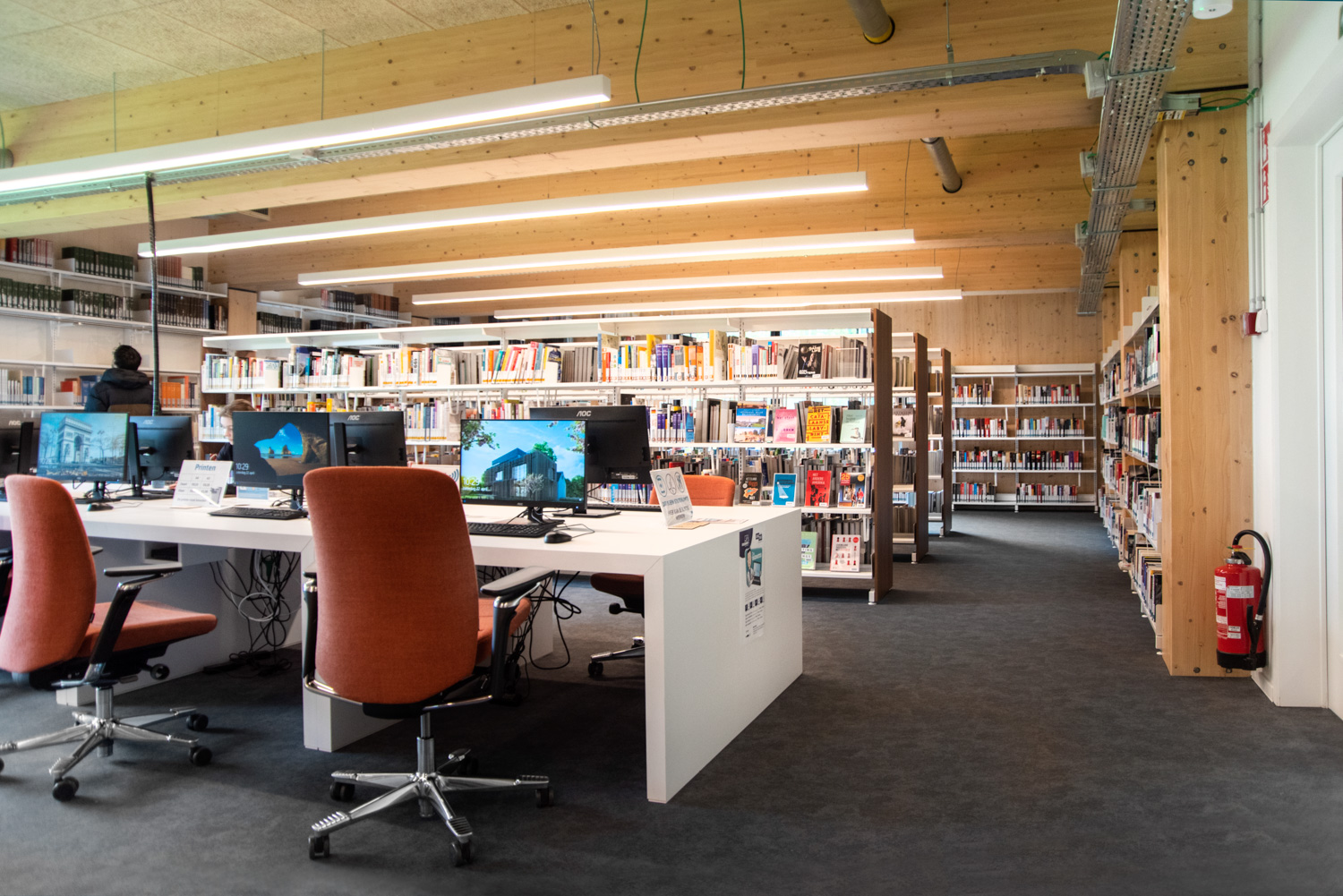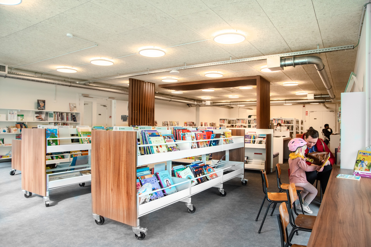 Schulz Benelux s'est chargé de l'aménagement intérieur comprenant la fourniture des systèmes d'étagères, des tables, des assises et également des meubles sur mesure.