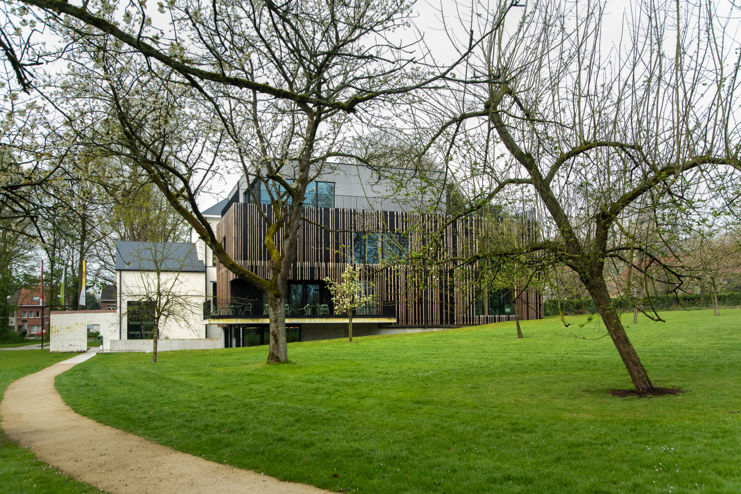 Avec une vue sur le parc Coloma depuis sa façade arrière, la bibliothèque de Leeuw Saint- Pierre est un endroit idéal pour se détendre. La bibliothèque est répartie sur trois niveaux dans un bâtiment historique classé, complété par une extension contemporaine et une terrasse de lecture permettant aux visiteurs de profiter d'une vaste collection de documents et d'espaces de détente et de lecture.