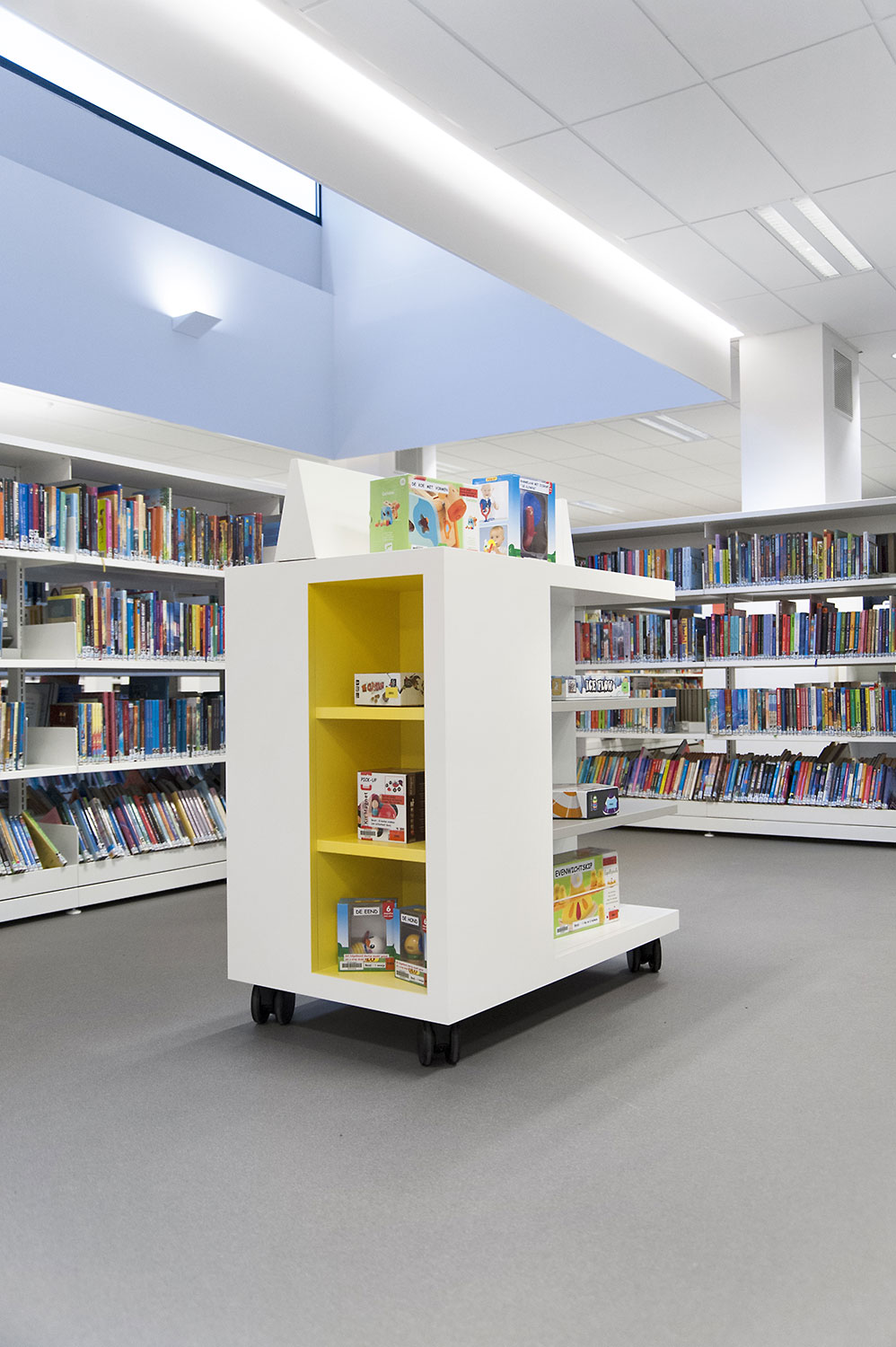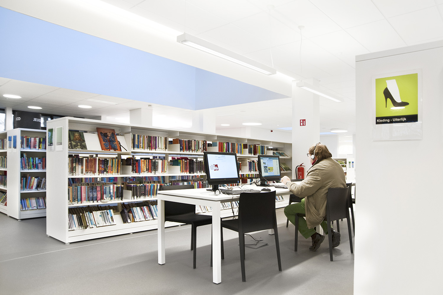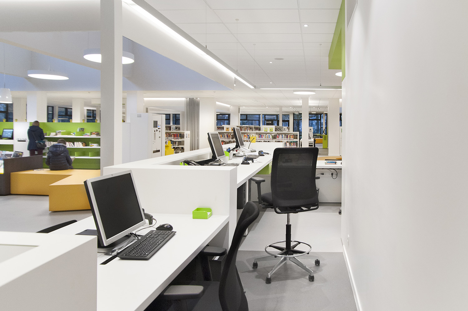 D’une part, le bâtiment a évolué, mais la façon dont la bibliothèque fonctionne également. La bibliothèque de Wevelgem est ce qu’on appelle une bibliothèque orientée vers l’utilisateur, c’est-à-dire une bibliothèque qui accorde beaucoup d’importance à un mode de fonctionnement reposant sur la possibilité de poser des questions : les visiteurs peuvent s’adresser au personnel de la bibliothèque qui les aide et les oriente.