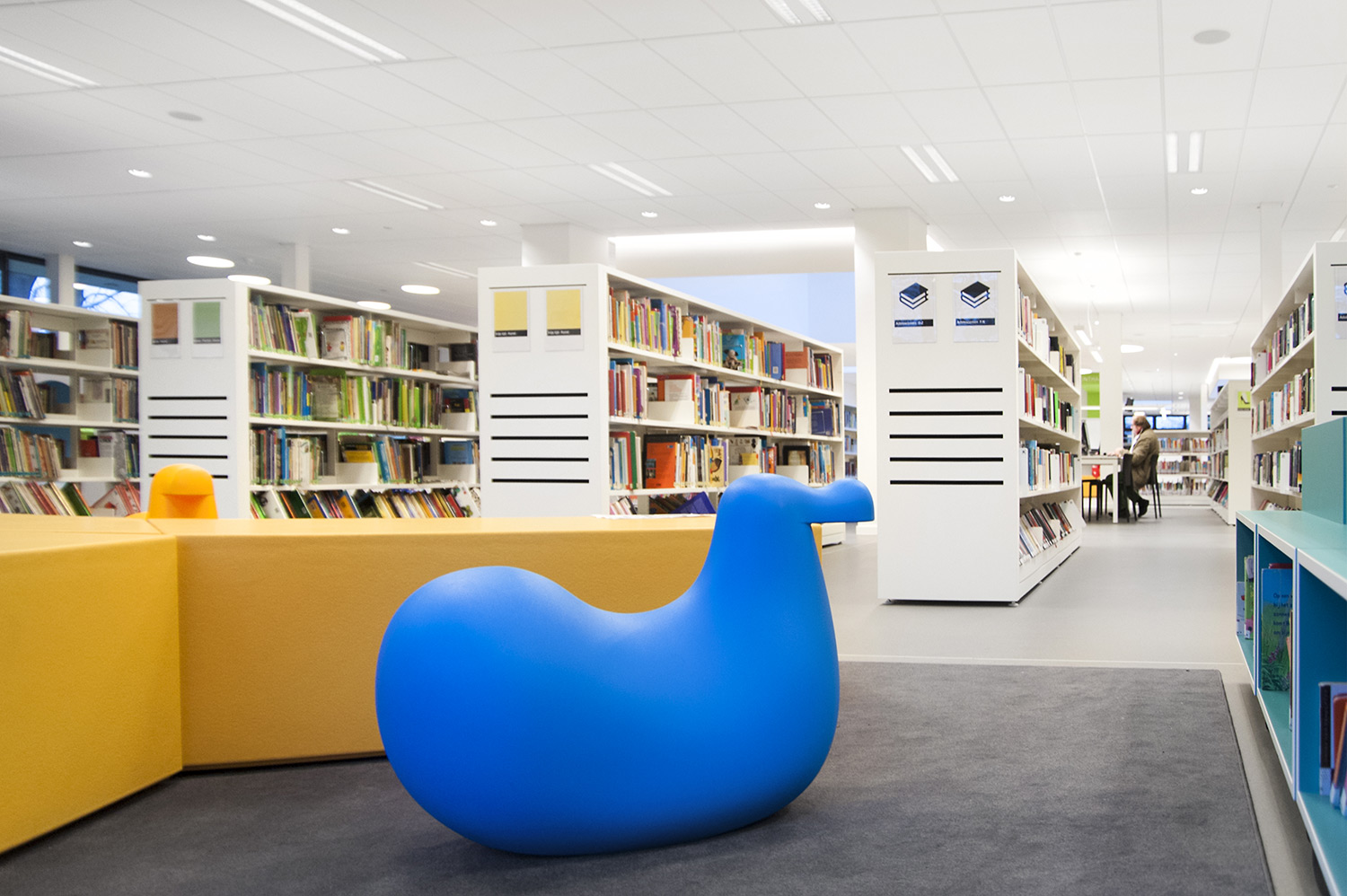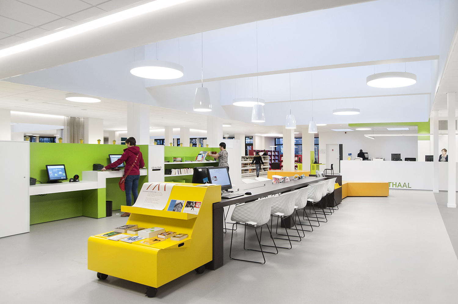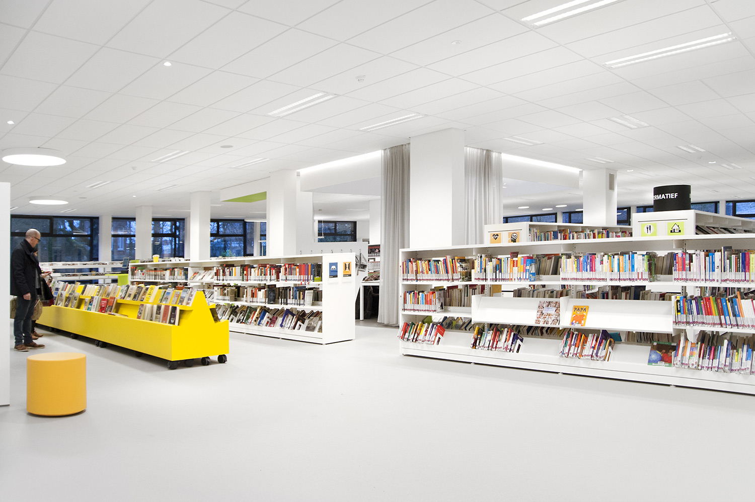 D’une part, le bâtiment a évolué, mais la façon dont la bibliothèque fonctionne également. La bibliothèque de Wevelgem est ce qu’on appelle une bibliothèque orientée vers l’utilisateur, c’est-à-dire une bibliothèque qui accorde beaucoup d’importance à un mode de fonctionnement reposant sur la possibilité de poser des questions : les visiteurs peuvent s’adresser au personnel de la bibliothèque qui les aide et les oriente.