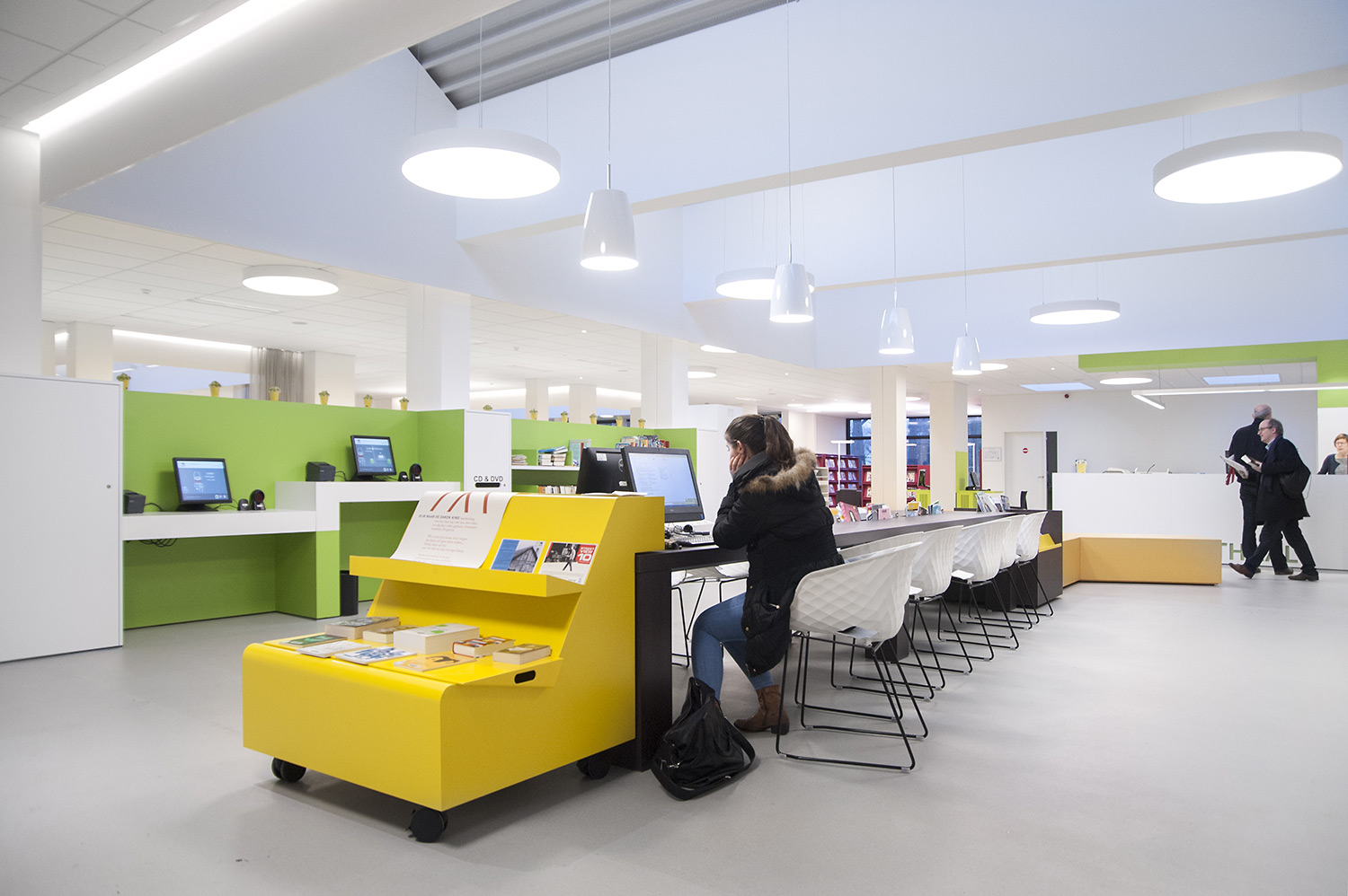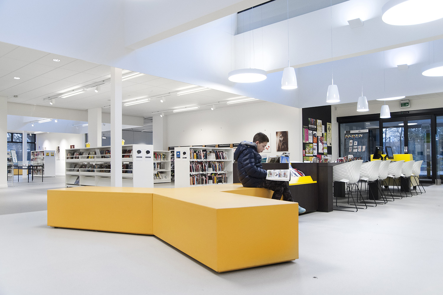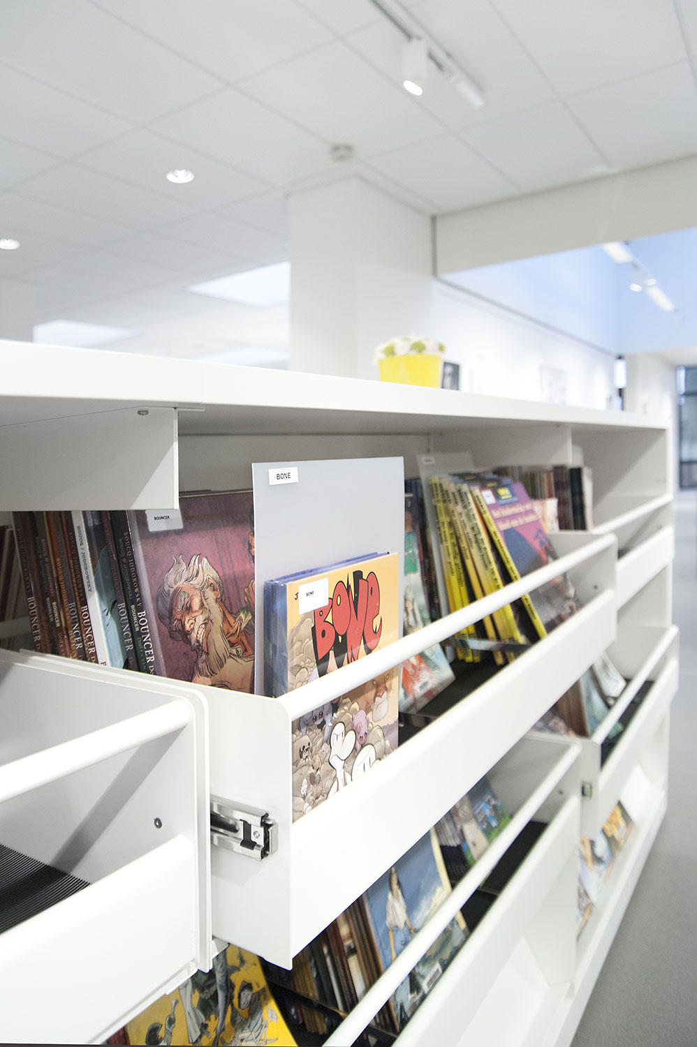 Ce projet est le fruit d’une collaboration entre plusieurs entités : les architectes, la bibliothèque, le spécialiste de l’aménagement d’intérieur sur mesure POTTEAU Labo et Schulz Benelux.