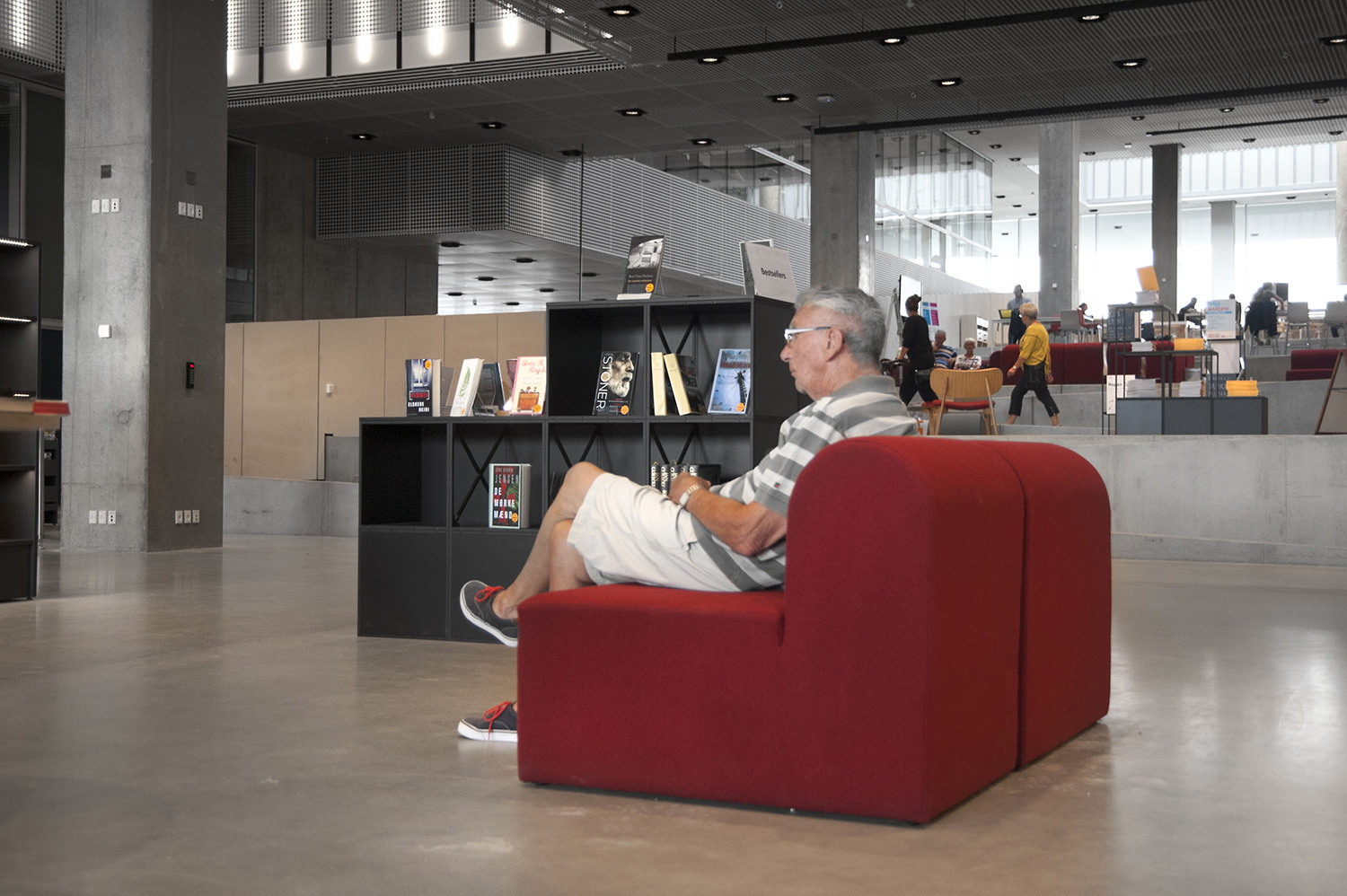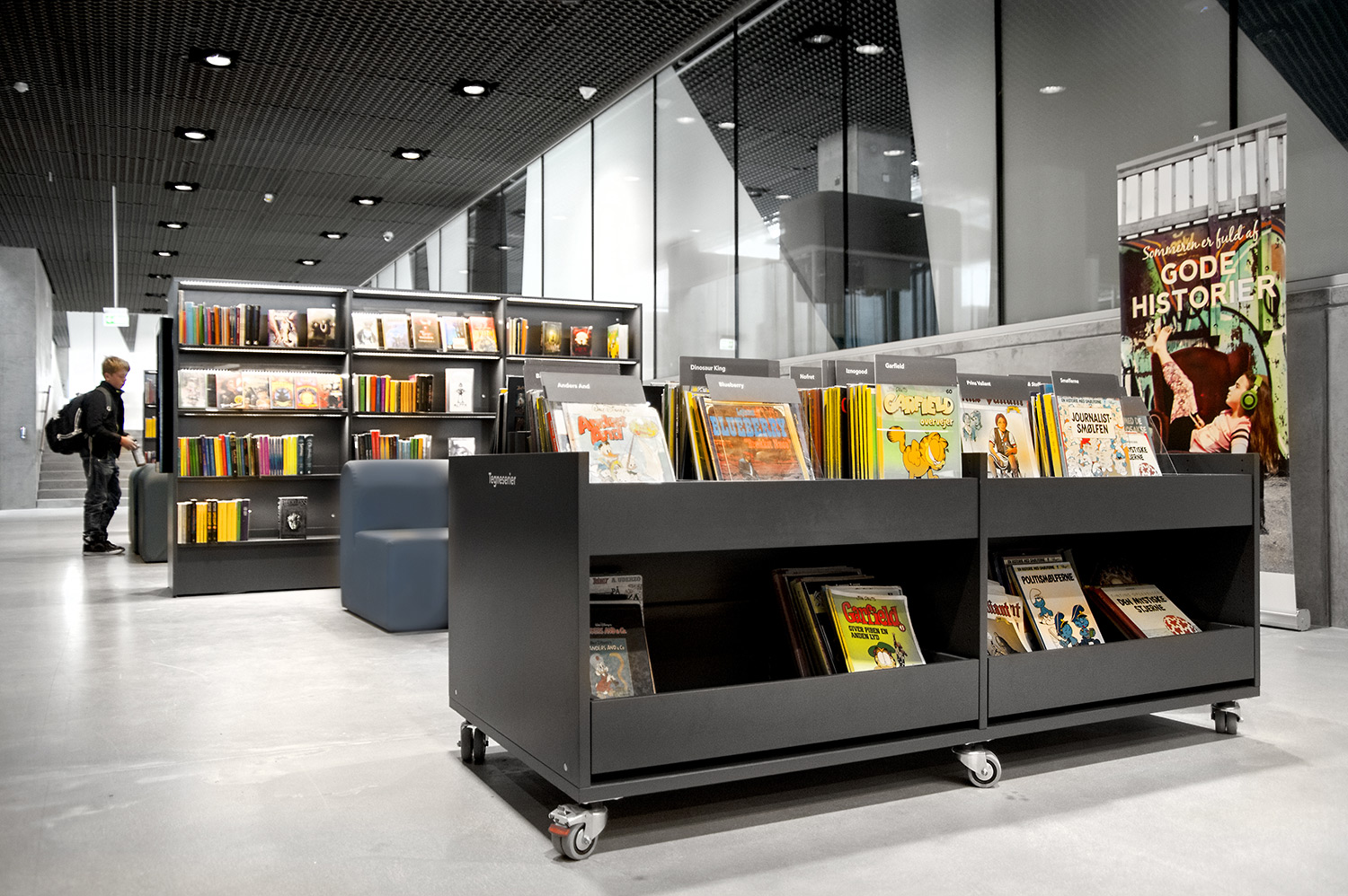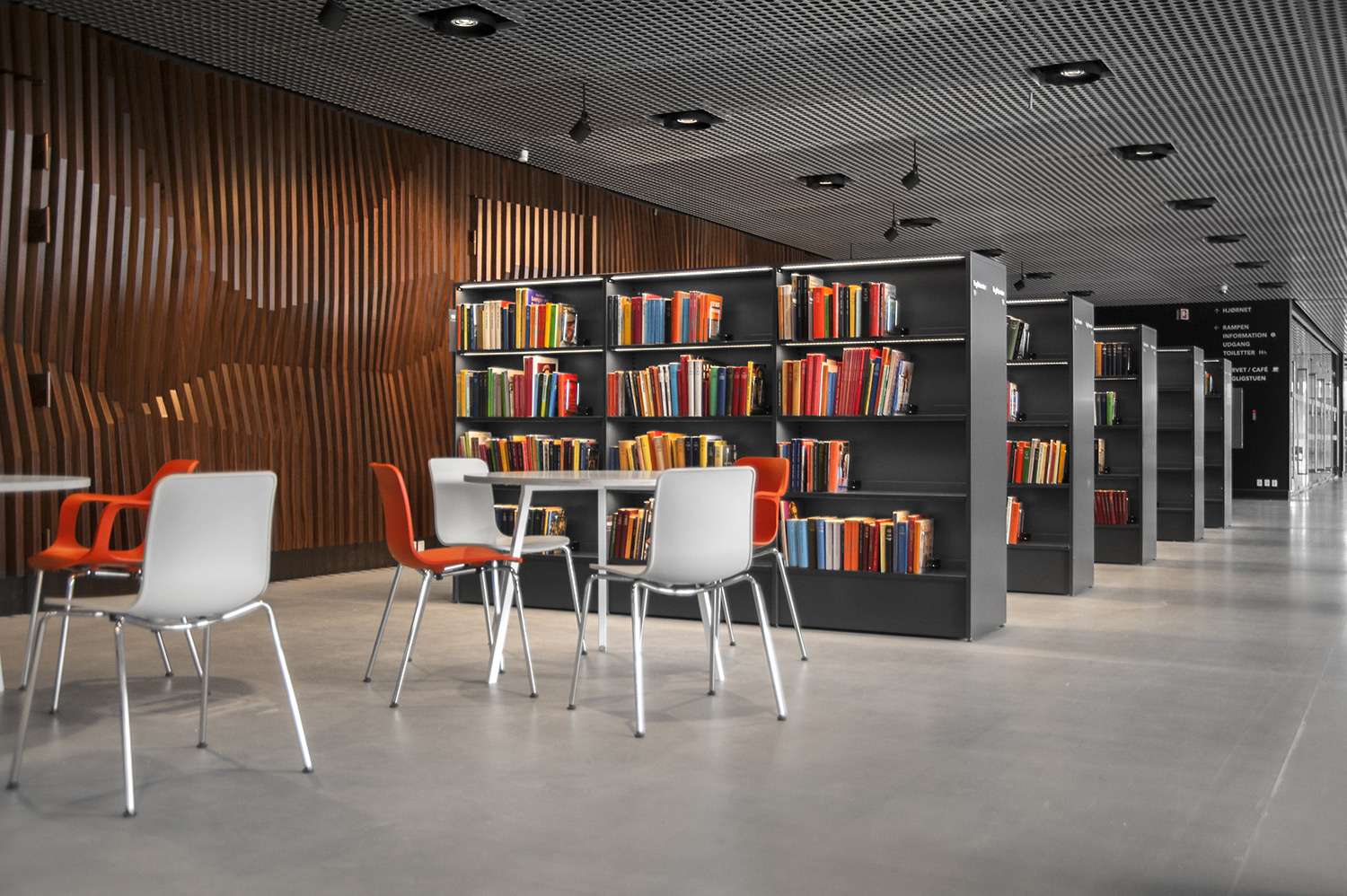 Notre société affiliée, Lammhults Biblioteksdesign A/S, a fourni la majeure partie du mobilier spécialisé de la bibliothèque de Dokk1, pour laquelle certaines solutions ont été réalisées sur mesure. Le bâtiment est conçu comme un paysage urbain ouvert, vous permettant de déambuler, avec des vues et des espaces multiples et divers. Un esprit que l’on retrouve tour à tour dans l’aménagement intérieur, la décoration et même le mobilier.