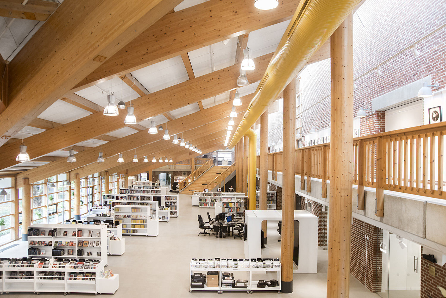 Dans le cadre d’un vaste projet de rénovation de la bibliothèque, un nouvel escalier majestueux permet d’accéder à des espaces d’assise et d’étude au premier étage