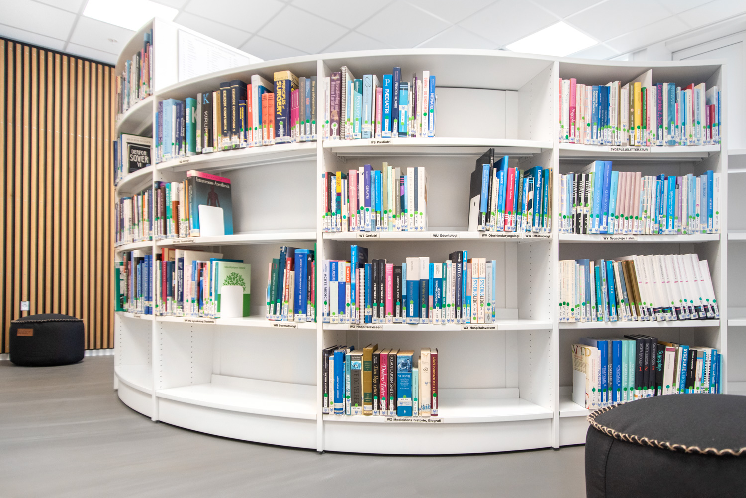 " Comme si on était assis dehors ", c'est ce que l'on est tenté de penser en entrant dans la bibliothèque de l'hôpital d'Esbjerg, qui est à la fois une bibliothèque et un lieu d'étude pour le diplôme de docteur en médecine.