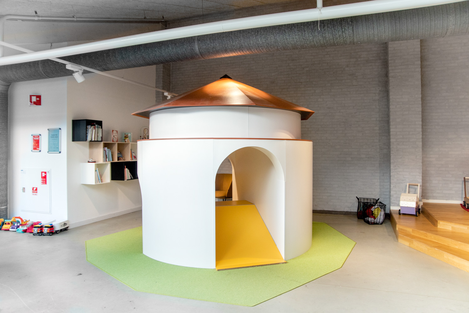 Pour les plus petits, l'accent a été mis sur l'aménagement d'un espace de jeux et de lecture accueillant également les parents. Il y a une tour appelée "Krudttårnet" (baril de poudre), une miniature d’un ancien magasin de poudre à canon de la ville, sur laquelle les enfants sont ravis de grimper et de glisser. De ravissantes « niches » de lecture turquoise, réalisées sur mesure, ont été dotées de hublots donnant l'impression d'être sous l'eau. Les parents ou les grands-parents peuvent s'installer dans les différents salons et profiter des activités des enfants. En outre, la bibliothèque dispose d'un nouvel espace avec tables de restauration et armoire-vestiaire.