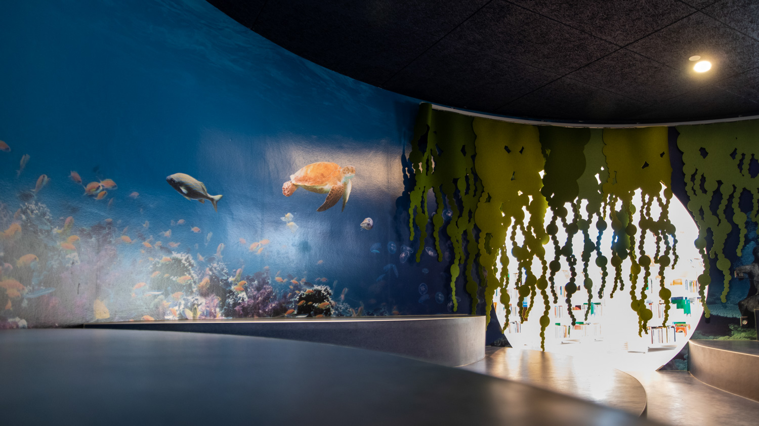 « Nous travaillons avec plusieurs écoles et institutions. Le nouvel espace du conte est idéal pour rassembler les enfants et créer une formidable expérience de lecture de groupe. Il est aussi utilisé par les enfants plus âgés pour s’asseoir et lire de façon calme et intime dans les profondeurs de la mer. Dans le grand espace ouvert de la bibliothèque, les conditions de lecture sont complètement différentes avec plus d’activités et plus de mouvement »