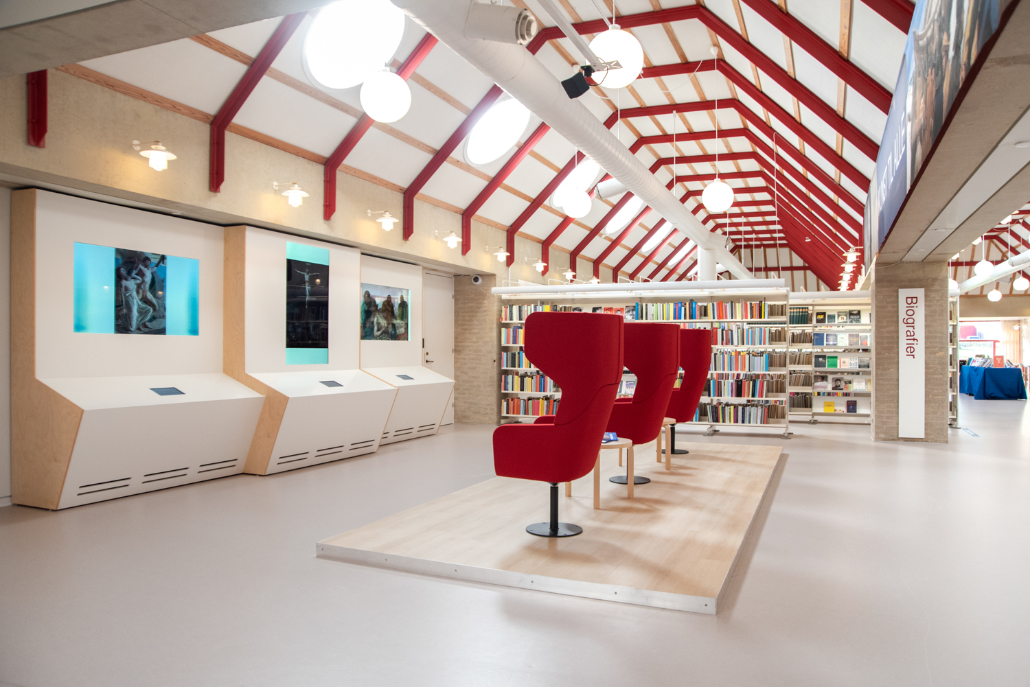 Un nouveau mur multimédia dédié à l’Art et un nouvel espace spécifique aux jeux de société ont été installés dans la nouvelle bibliothèque Ringsted en 2019 et en 2020.