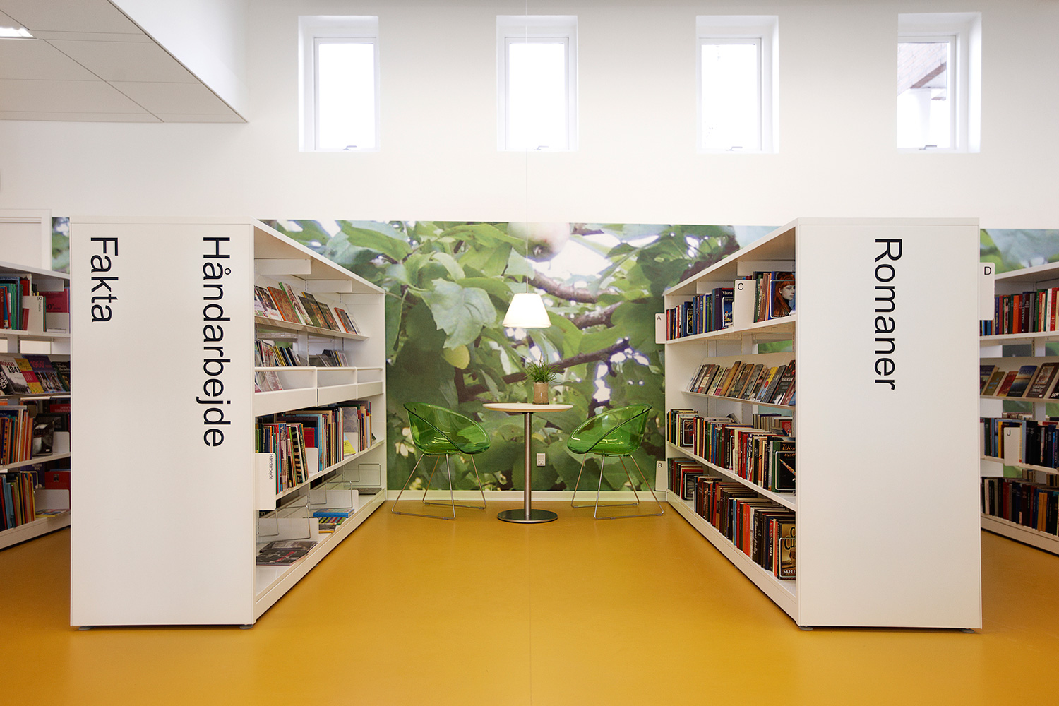 La bibliothèque de Sindal est localisée sous le même toit que le bâtiment destiné aux services aux citoyens. Un bâtiment qui malheureusement a été ravagé par le feu dans le passé. Maintenant reconstruite la nouvelle bibliothèque réouvre avec un nouveau mobilier pensé par l’architecte et fournit par BCI.Le nouveau design intérieur est clairement harmonieux avec des rappels environnementaux.