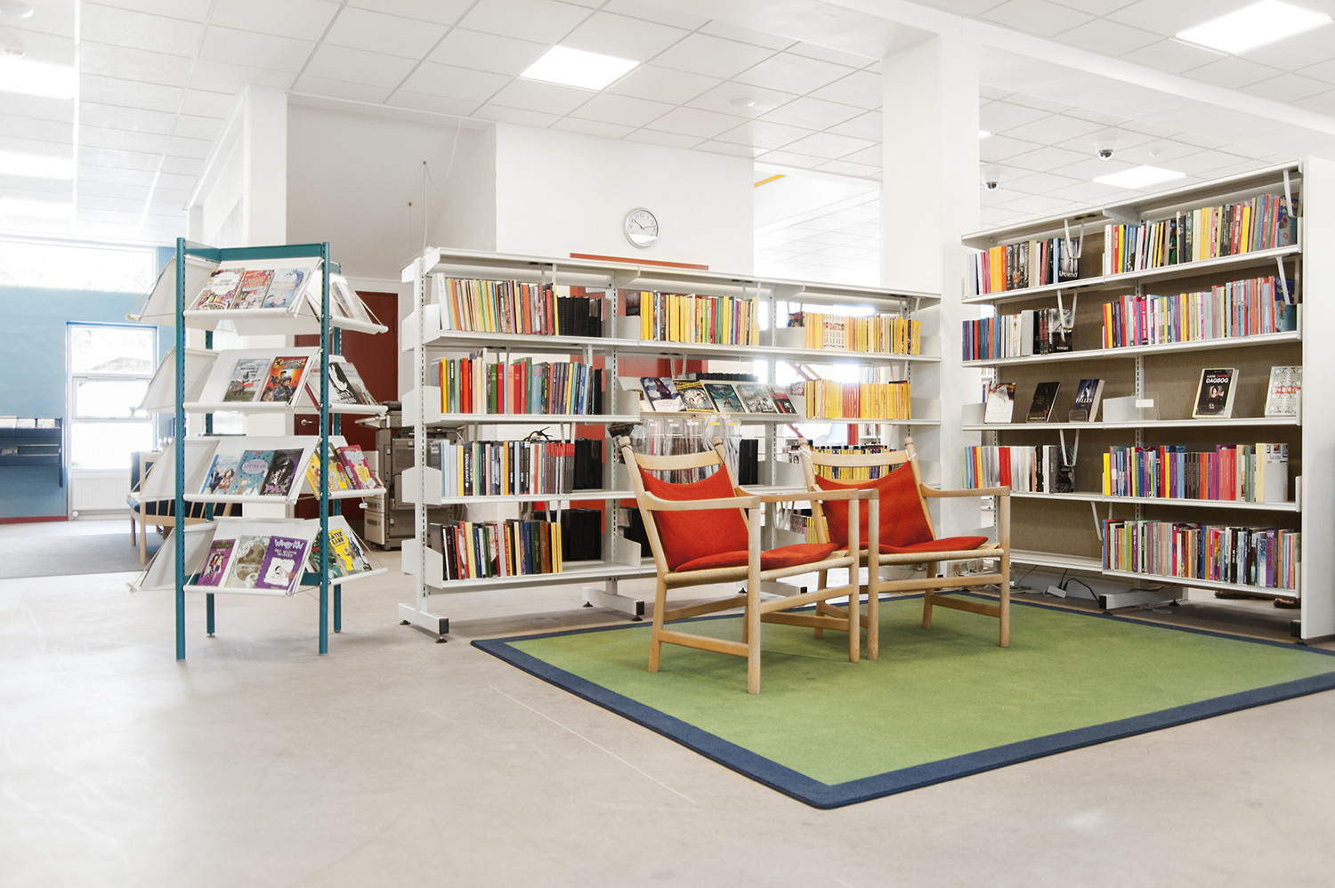 Les livres et autres éléments de la collection sont plus faciles à trouver grâce au repositionnement du mobilier et aux panneaux d’habillage dotés d’une signalétique claire qui sont venus s’ajouter aux systèmes de rayonnage existants.