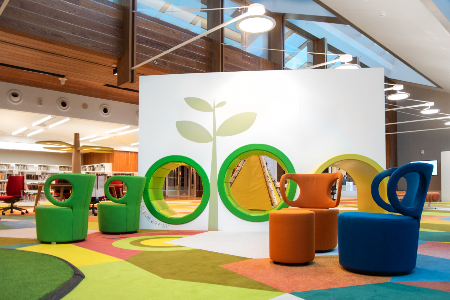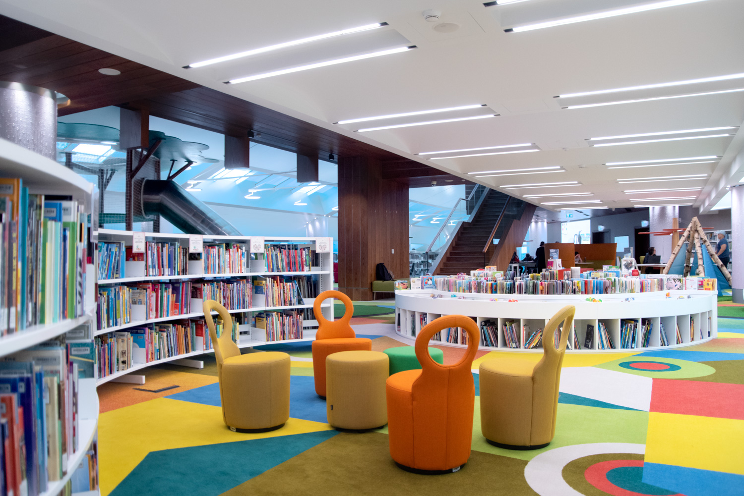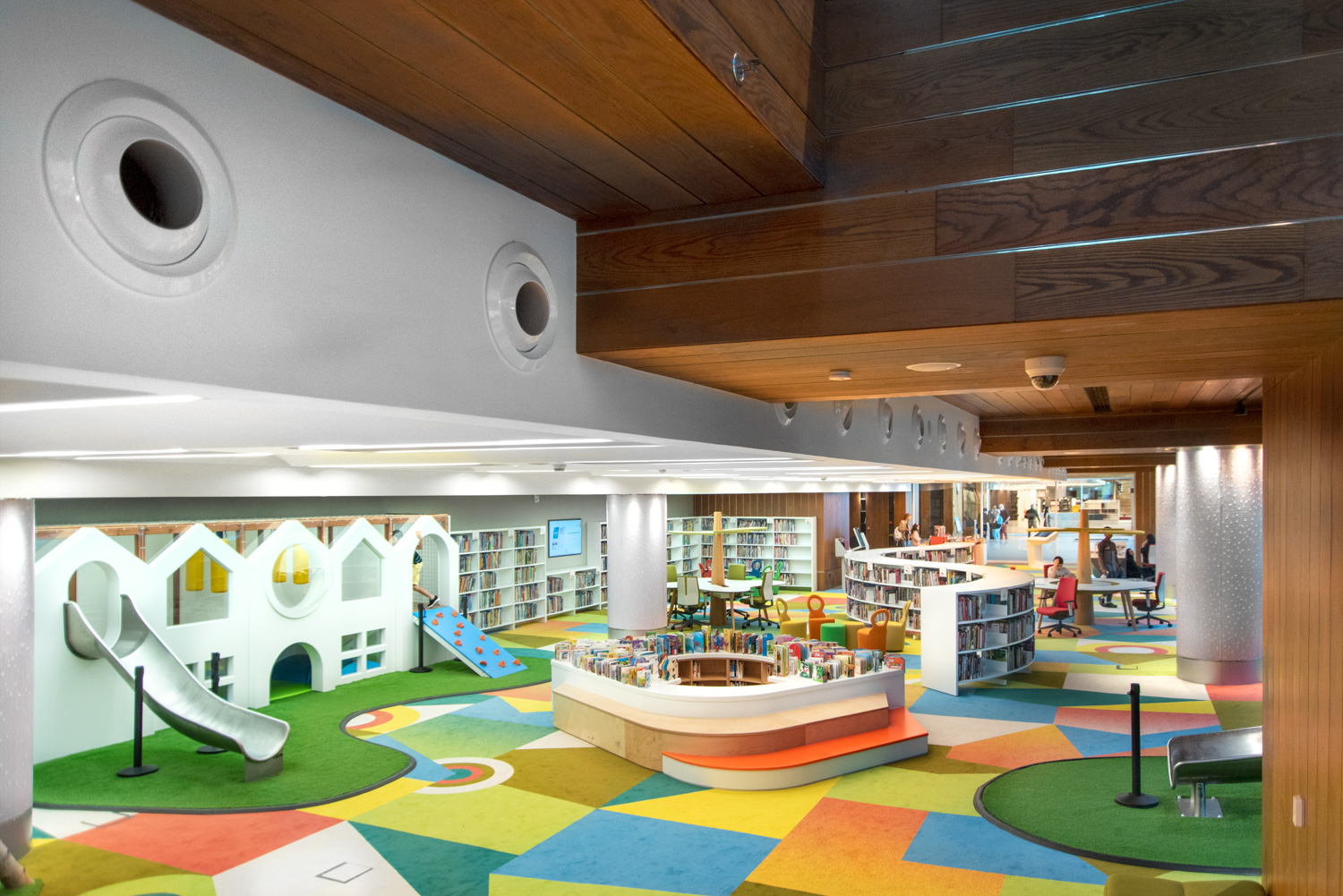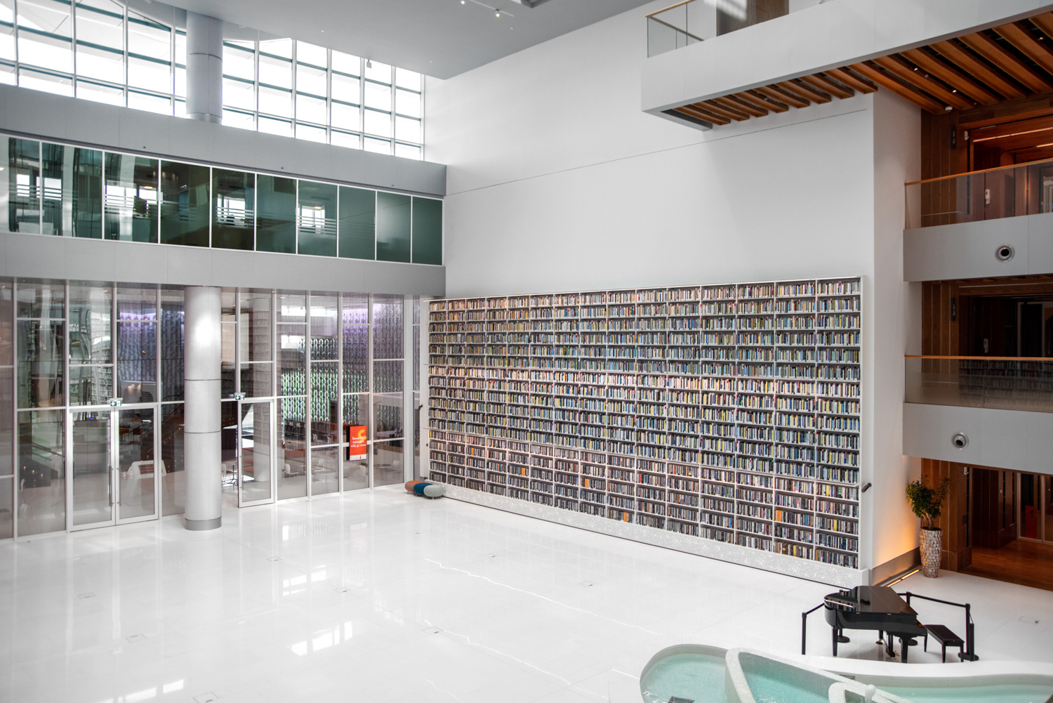 L'établissement abrite neuf bibliothèques distinctes, allant des médias, des arts aux titres commerciaux, en passant par les périodiques internationaux, les cartes et les atlas, les livres pour enfants et adolescents, ainsi qu'une collection spéciale de documents d'archives. À cela s'ajoutent un amphithéâtre intérieur et extérieur, un musée littéraire et un espace d'exposition, un centre de conférence, un café sur deux étages et une boutique de souvenirs.