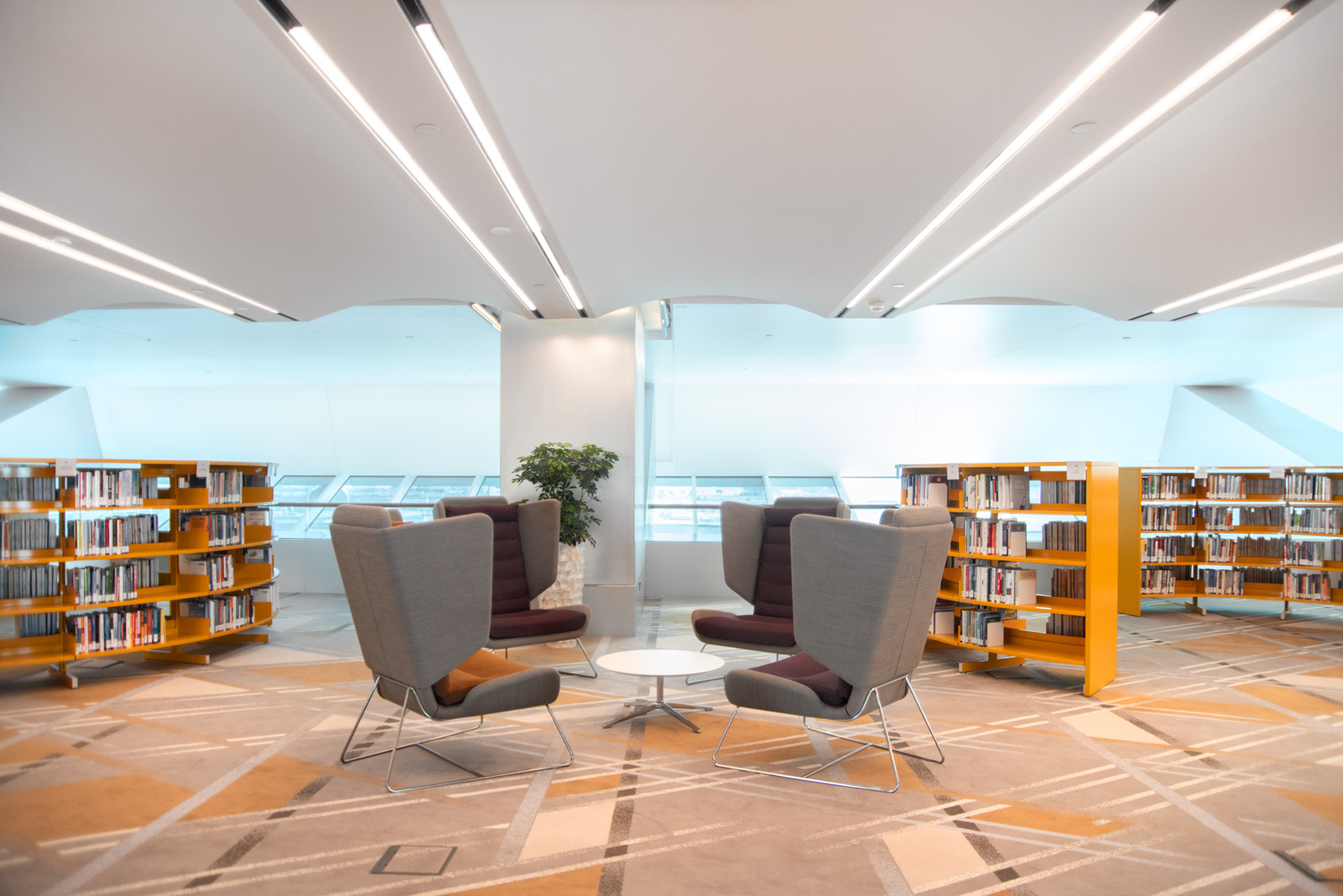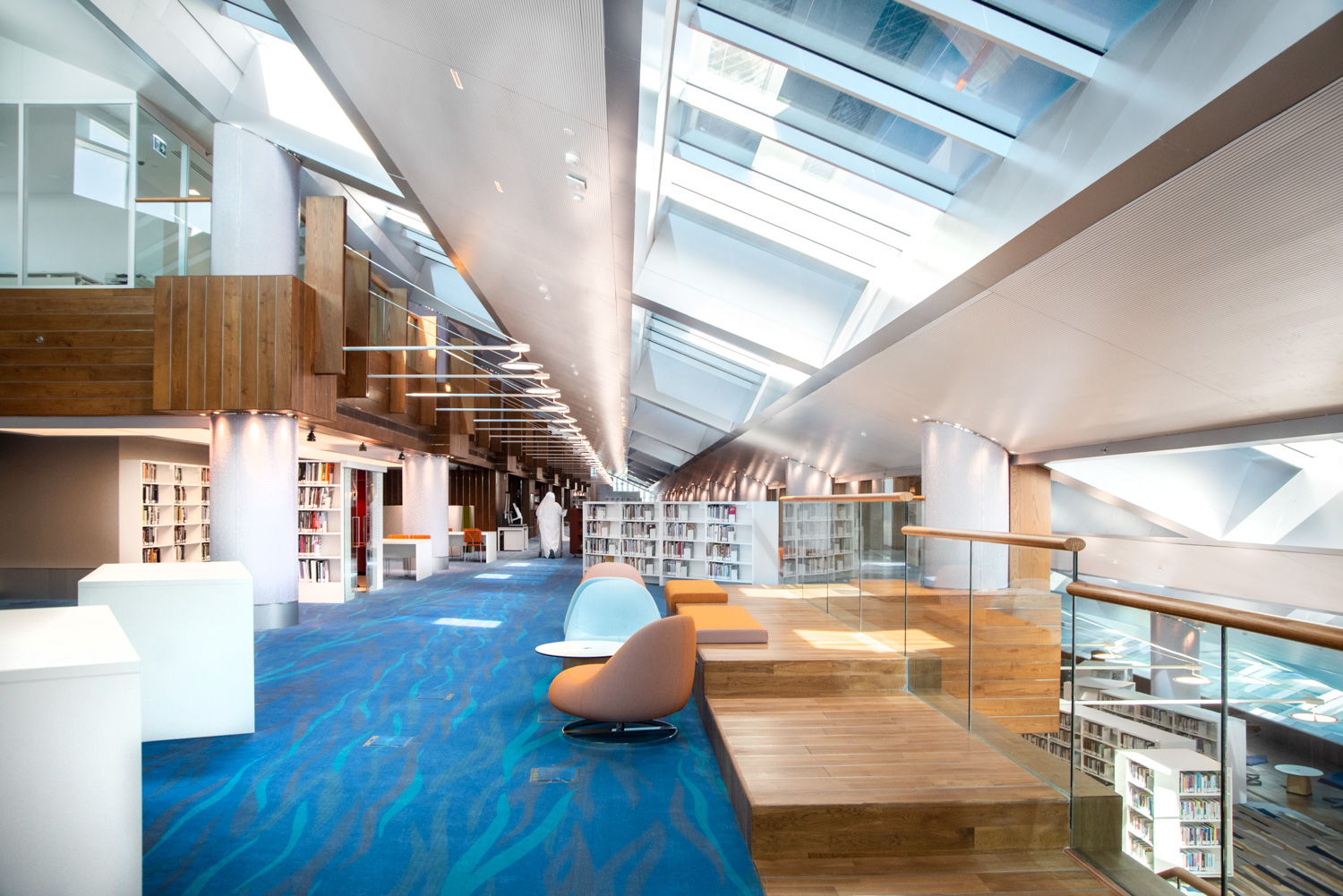 Construite le long de l'historique Dubai Creek et conçue sous la forme d'un lutrin islamique traditionnel, la bibliothèque Mohammed bin Rashid est un centre unique pour la culture et le savoir à Dubaï. S'étendant sur sept niveaux, il abrite aujourd'hui plus d'un million de titres disponibles en plusieurs langues, en format physique et numérique. Lammhults Biblioteksdesign a remporté l'appel d'offres pour la conception et l'aménagement intérieur de l'ensemble de ce bâtiment majestueux.
