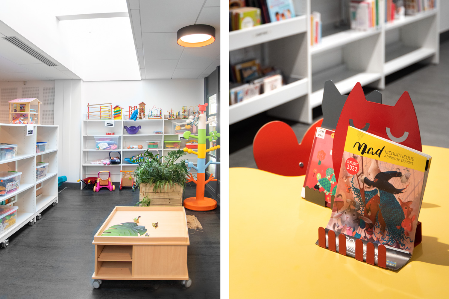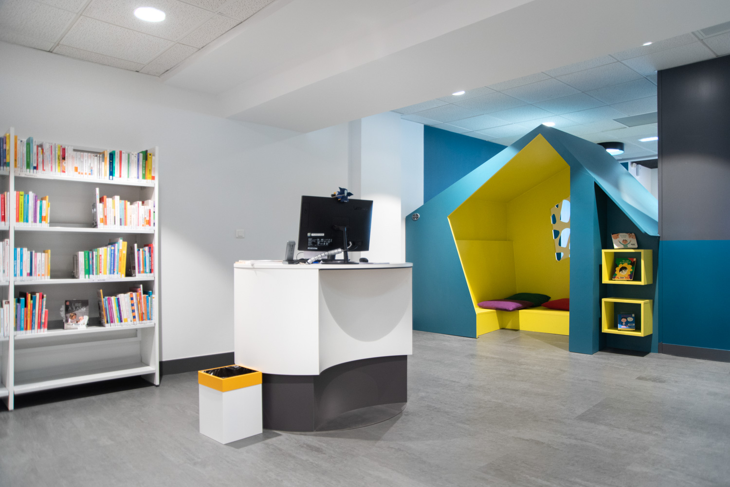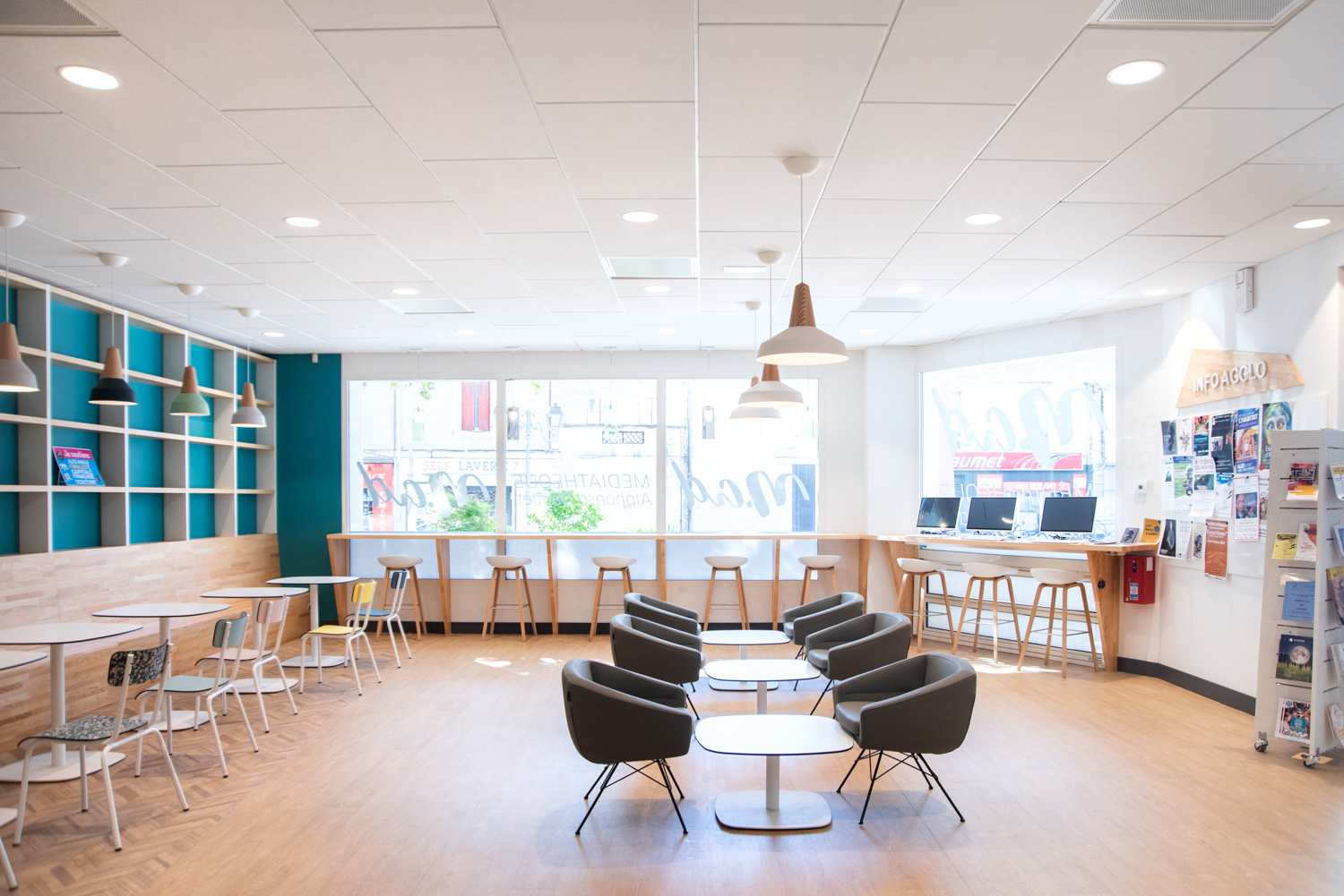 La médiathèque Alphonse Daudet vous accueille et vous séduit par une forte présence de bois, avec notre gamme Lingo. Couleurs acidulées et bois laqué blanc ou naturel forment un bel ensemble.