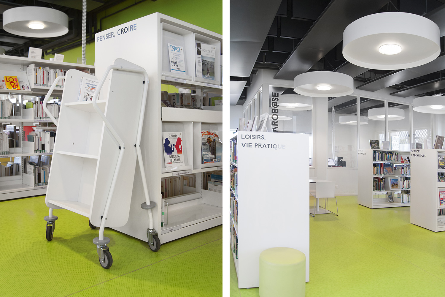Produits utilisés à la Médiathèque Jean Prévost, Bron, France