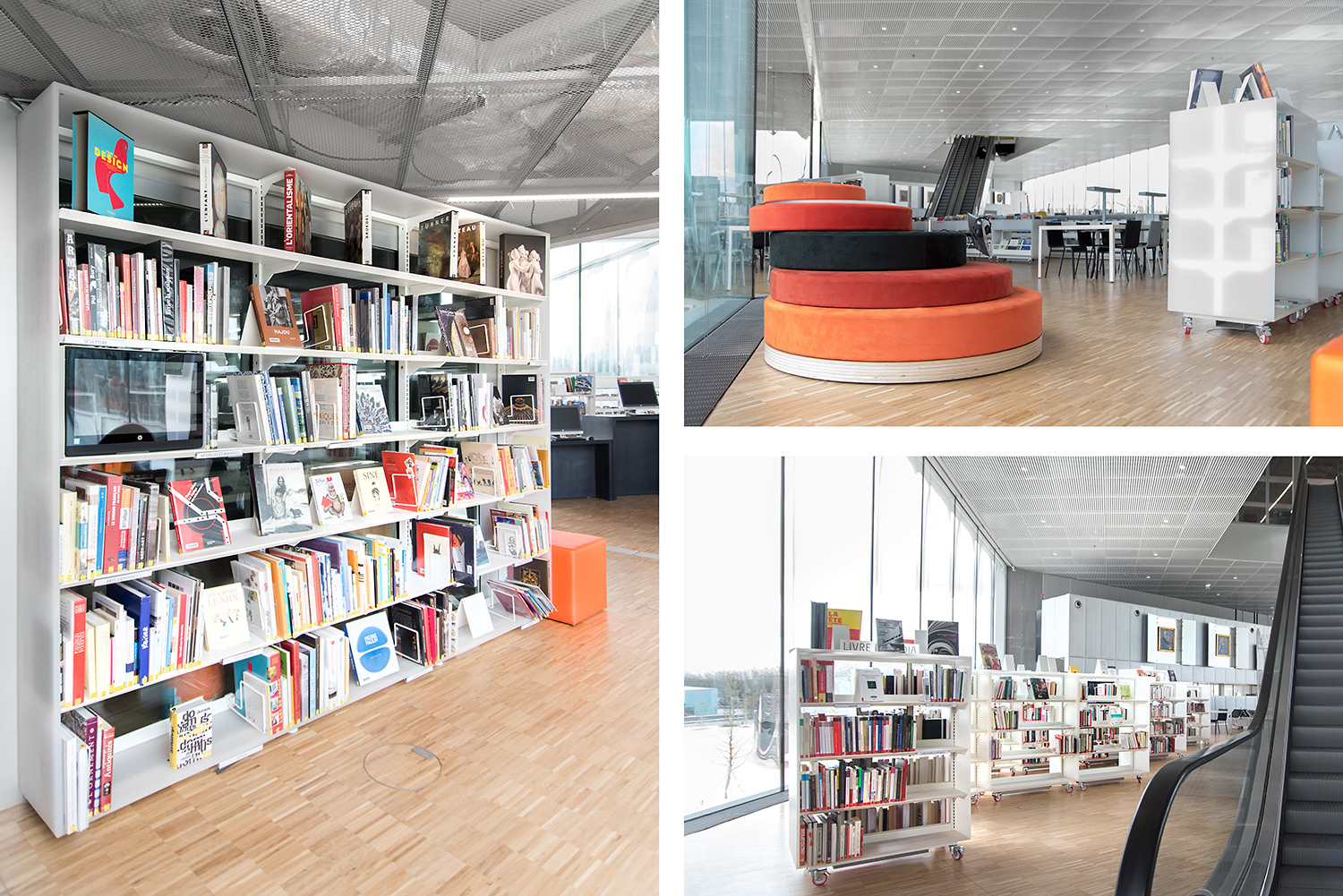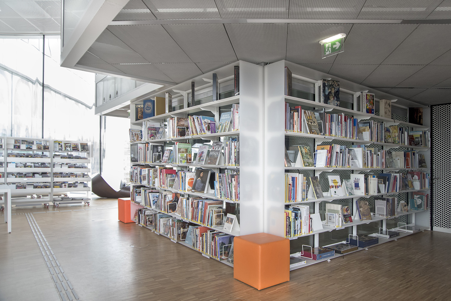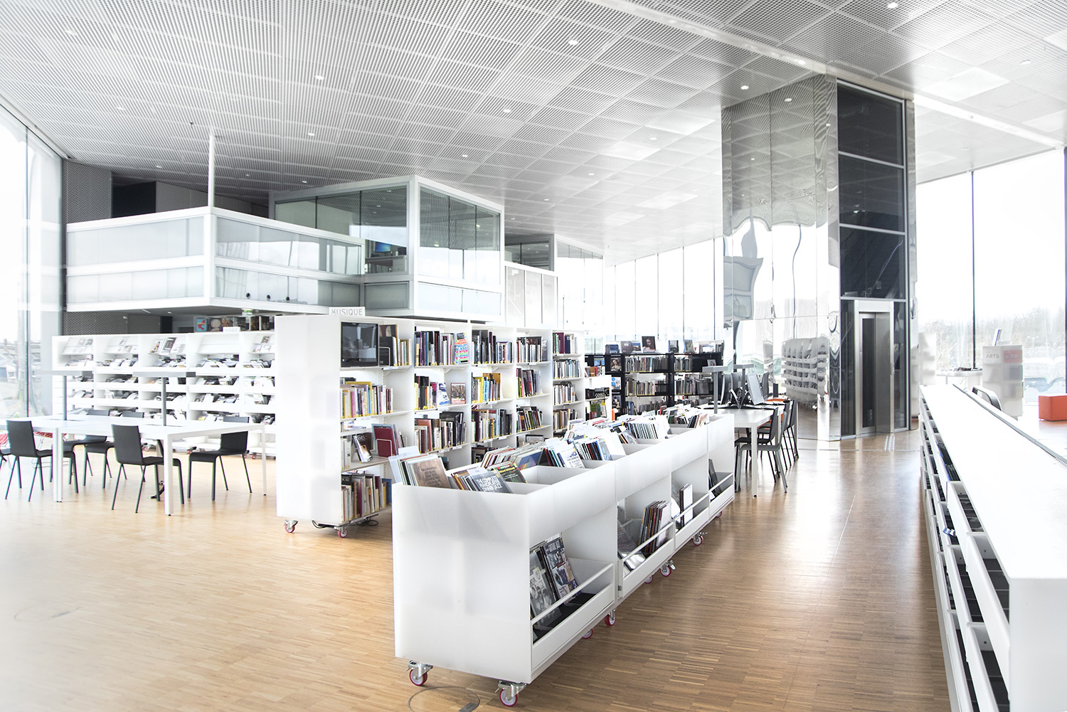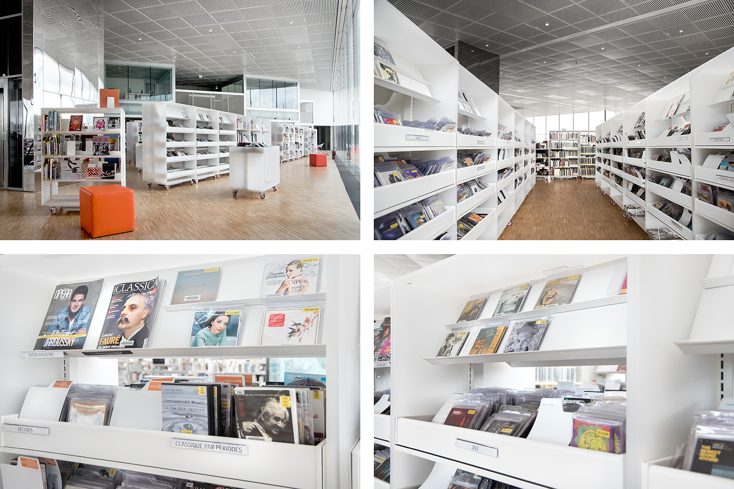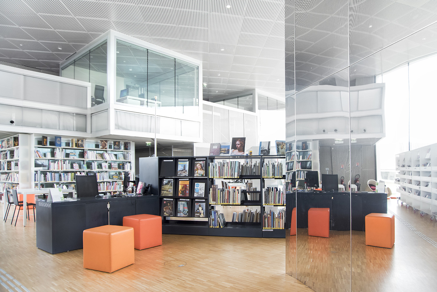 En collaboration avec les architectes, BCI a réalisée et installée tout le mobilier spécifique, rayonnages/bacs/vitrines/présentoirs/postes d’info, (mobilier néanmoins basé sur des éléments standards BCI, ayant déjà prouvés leur qualité et durabilité), ce qui donne à ce projet de bibliothèque son côté tout à fait unique.