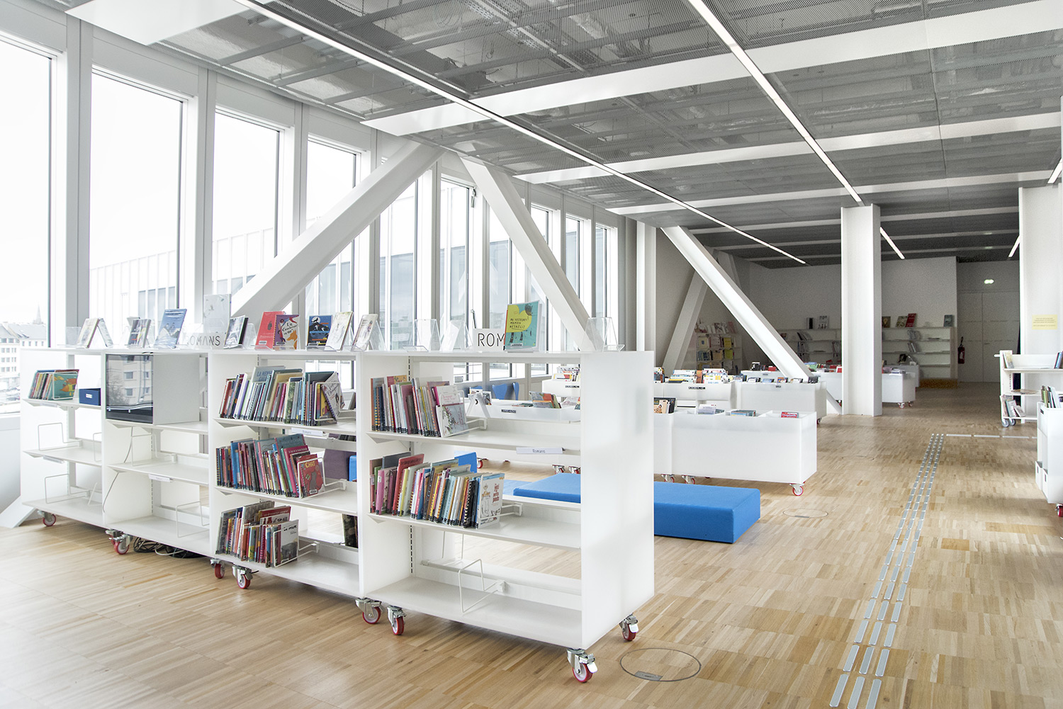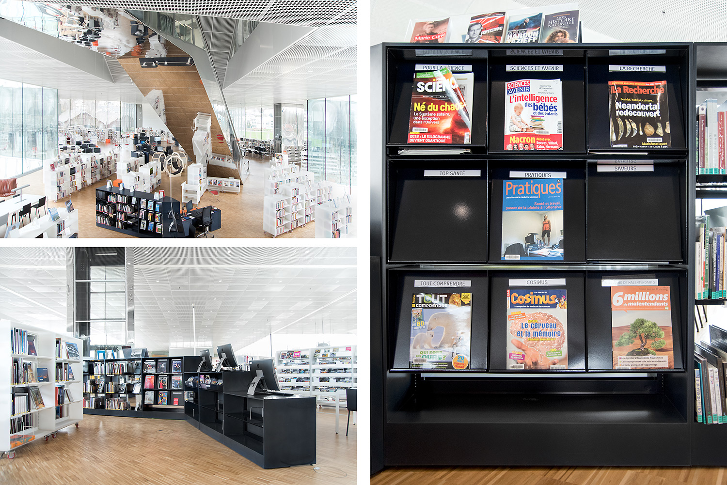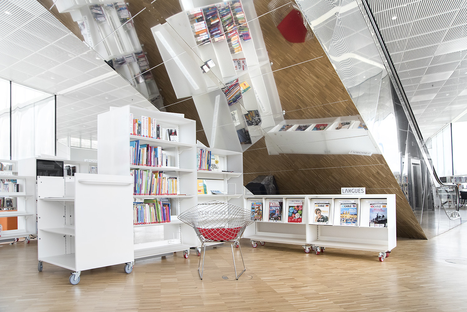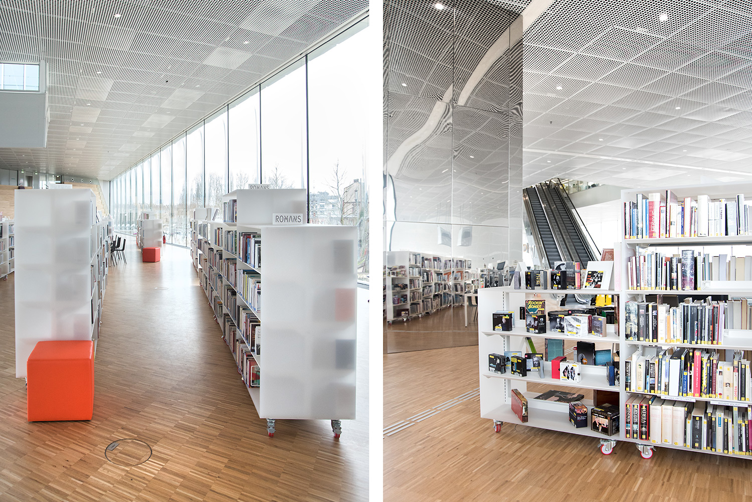 En collaboration avec les architectes, BCI a réalisée et installée tout le mobilier spécifique, rayonnages/bacs/vitrines/présentoirs/postes d’info, (mobilier néanmoins basé sur des éléments standards BCI, ayant déjà prouvés leur qualité et durabilité), ce qui donne à ce projet de bibliothèque son côté tout à fait unique.