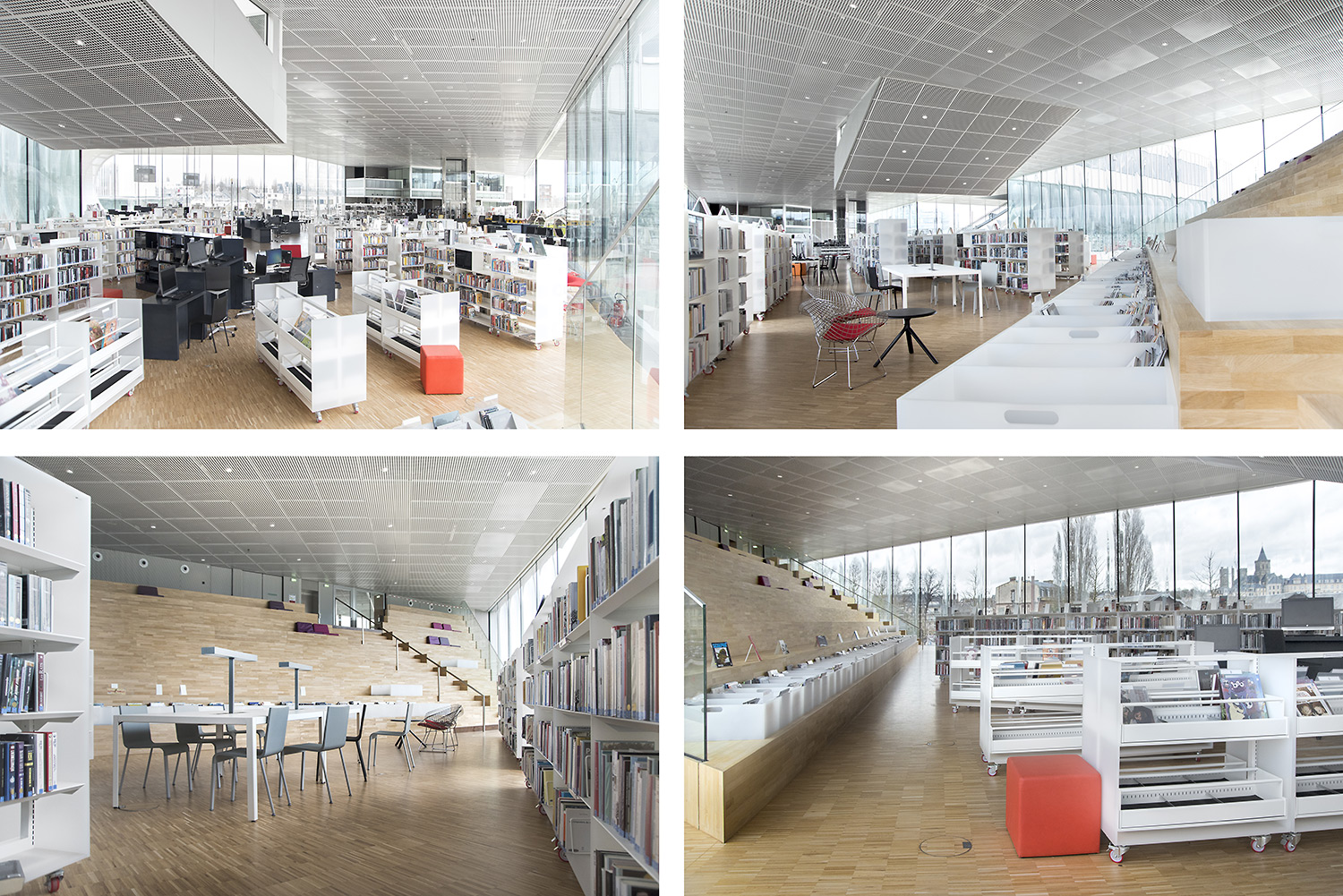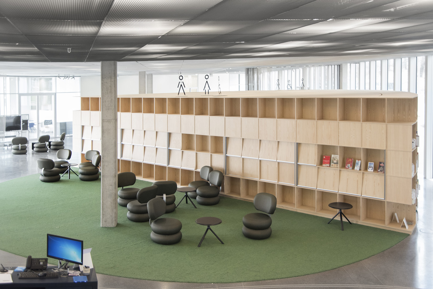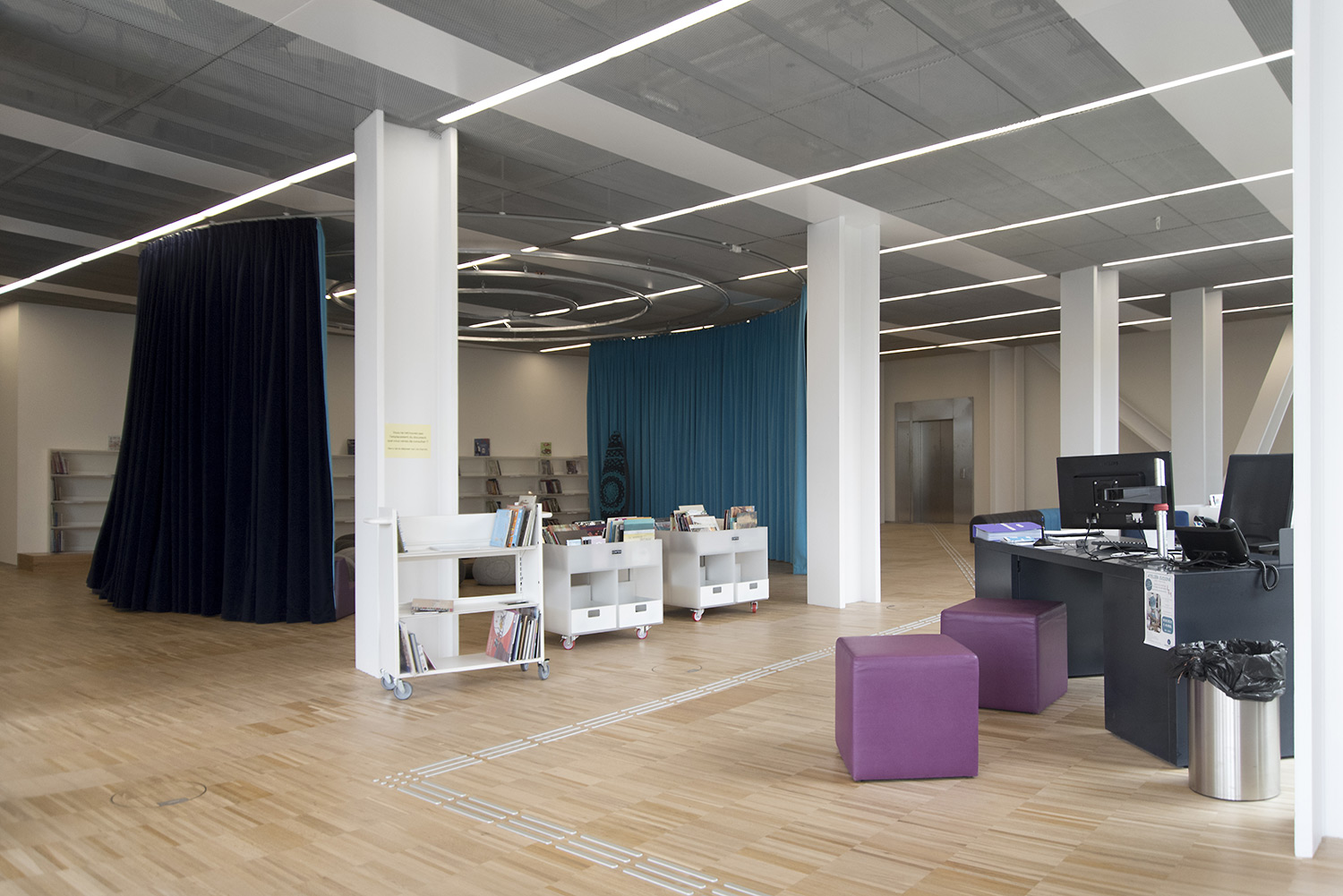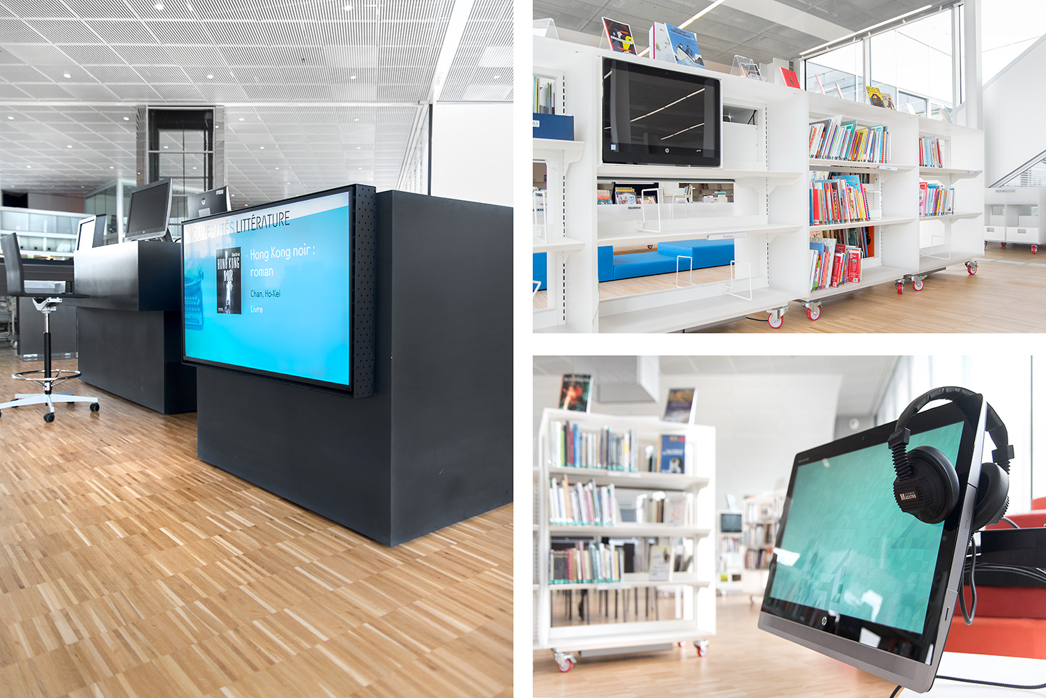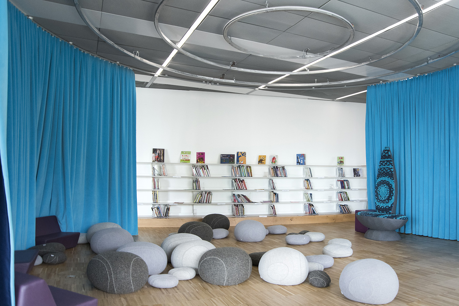 En collaboration avec les architectes, BCI a réalisée et installée tout le mobilier spécifique, rayonnages/bacs/vitrines/présentoirs/postes d’info, (mobilier néanmoins basé sur des éléments standards BCI, ayant déjà prouvés leur qualité et durabilité), ce qui donne à ce projet de bibliothèque son côté tout à fait unique.