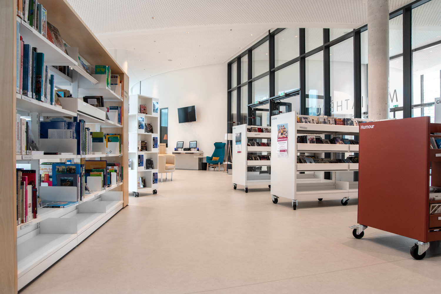 Ce nouvel équipement, qui s’inscrit dans la modernisation du bassin lecture Nord, est pensé comme un lieu ouvert sur son environnement, avec de nouveaux espaces comme une salle dédiée au jeu sous toutes ses formes, une salle d'animation et un patio propice à la lecture. La gamme Classic London accompagne ces nouveaux espaces, aux nuances blanches, orangées ou bleues pour un mobilier tout en rondeur dédié au polar.