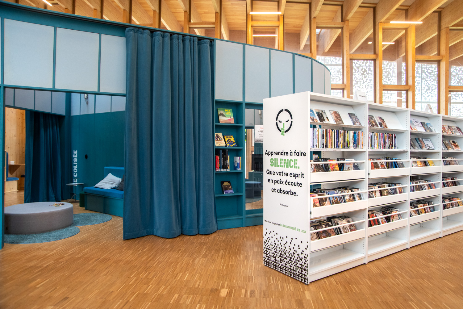 Allier des espaces de lecture, des espaces ludiques et une salle de spectacles est une démarche originale. Le principal défi du projet résidait donc dans la création d’un lien fluide et harmonieux entre ces univers distincts. L’objectif était d’imaginer un lieu vivant, chaleureux et inspirant, où chaque visiteur puisse vivre une expérience singulière.