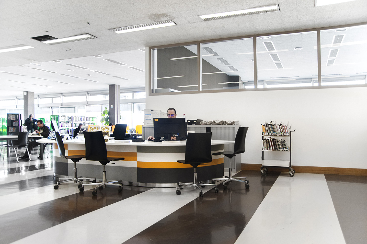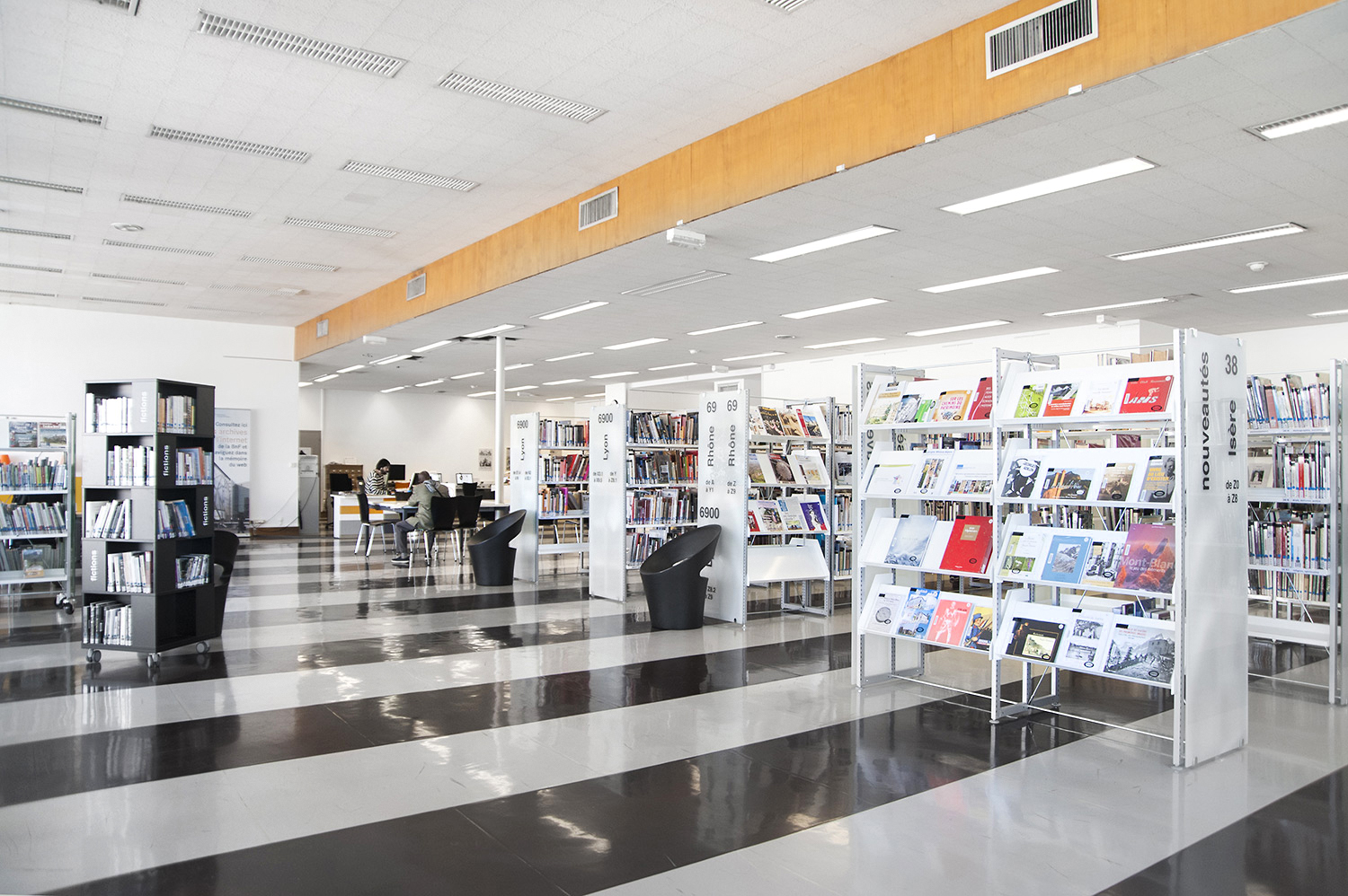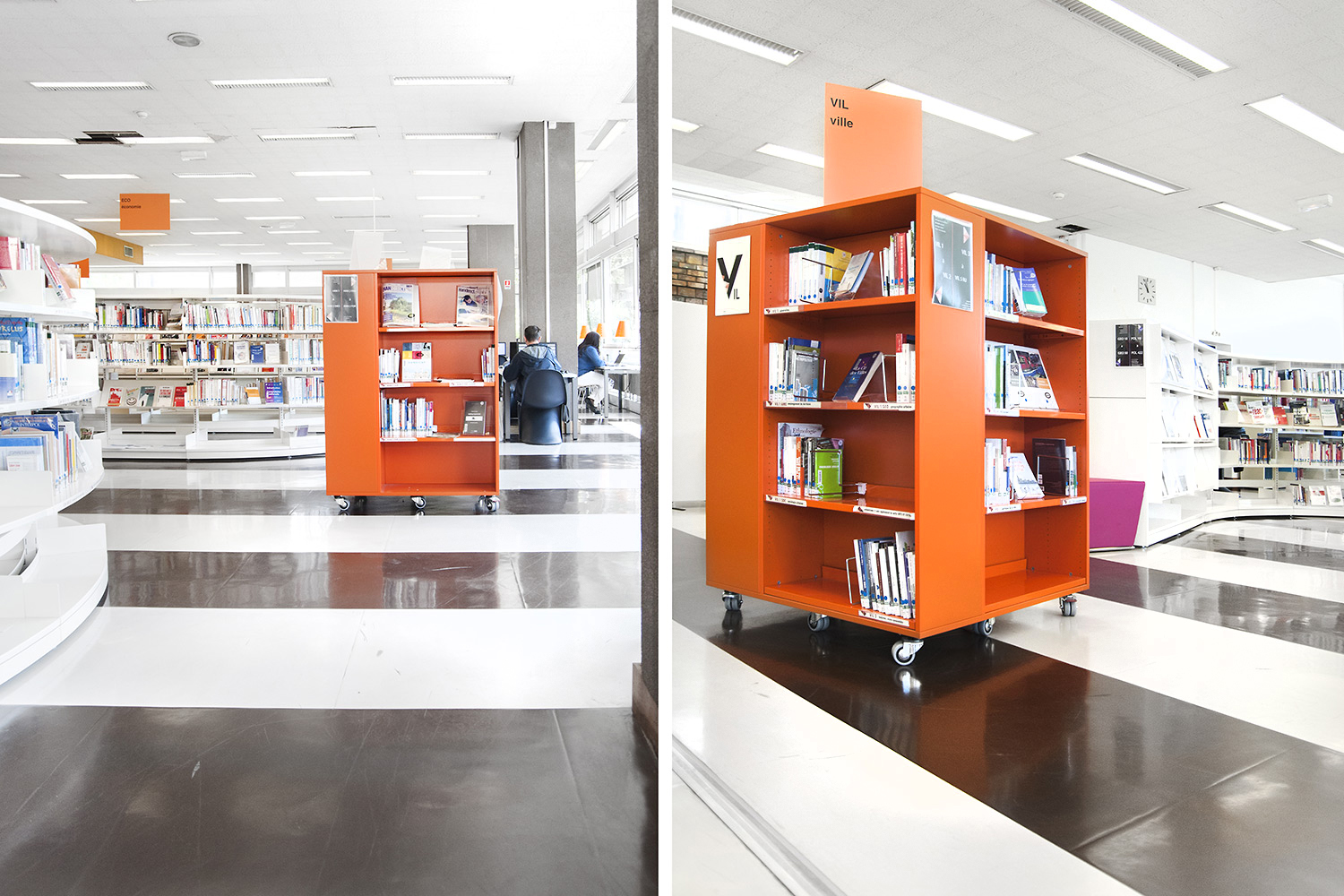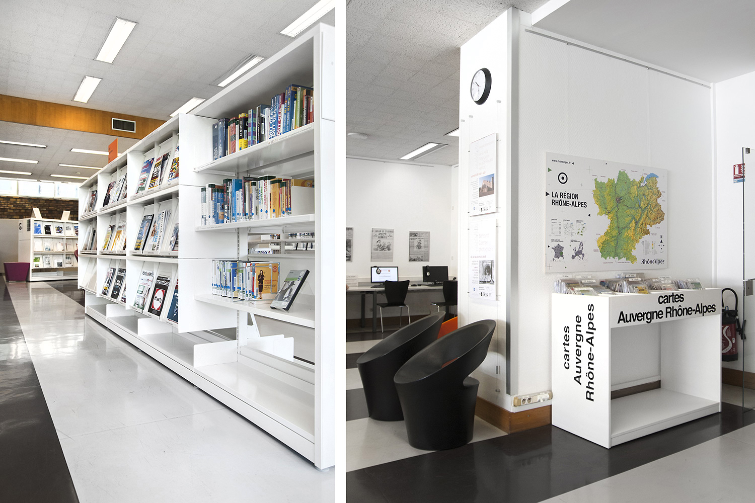 Le mobilier installé inclut notamment la gamme de rayonnages Classic London, droit et courbe, la gamme Opal verre, les banques d’accueil, des postes de travail, du mobilier de présentation et du mobilier de confort. Fonctionnel et esthétique le mobilier joue son rôle dans l’amélioration du confort général, des utilisateurs comme du personnel.