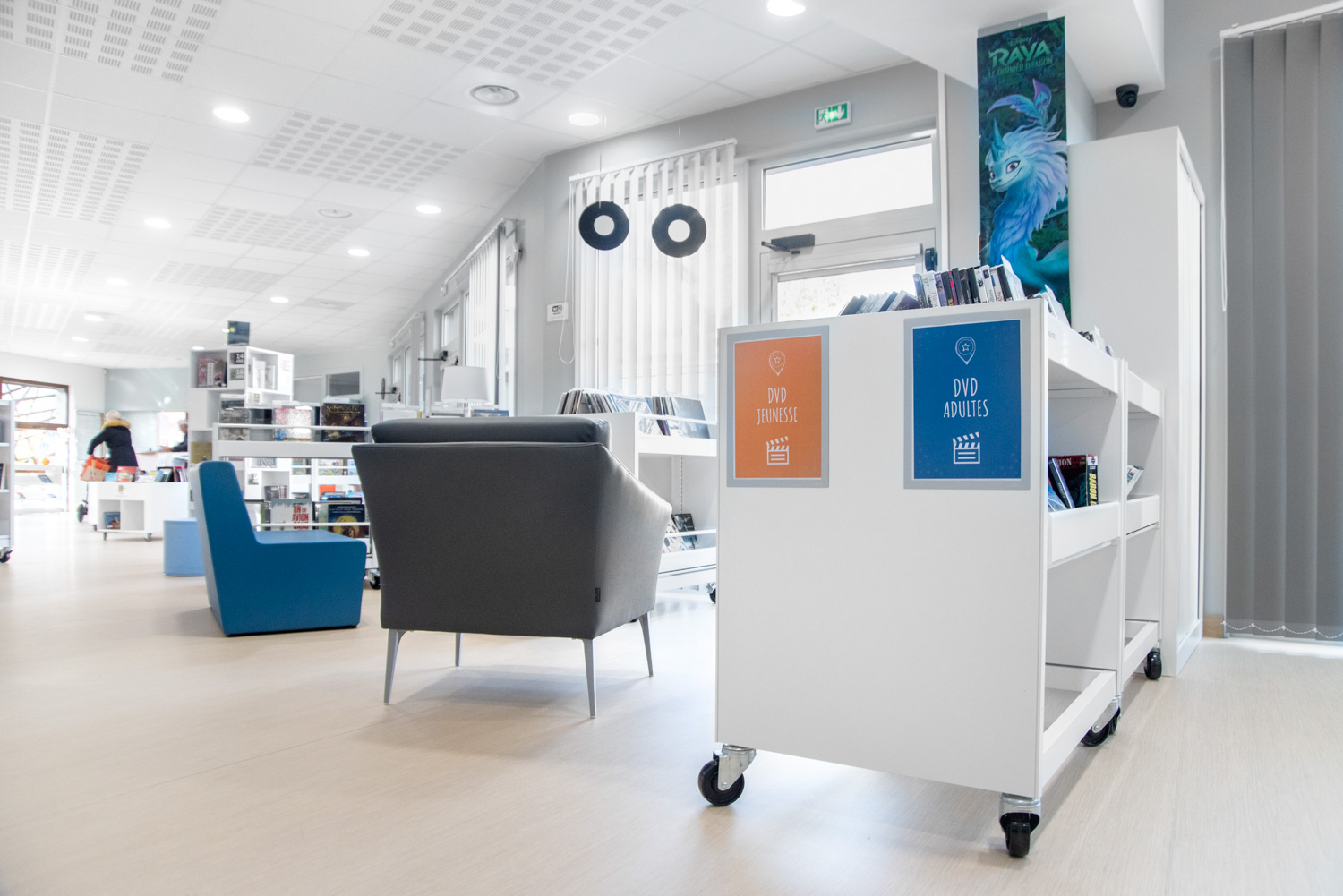 La médiathèque a travaillé avec architecte d’intérieur de BC Intérieur et l’UGAP pour le choix et la disposition du mobilier.