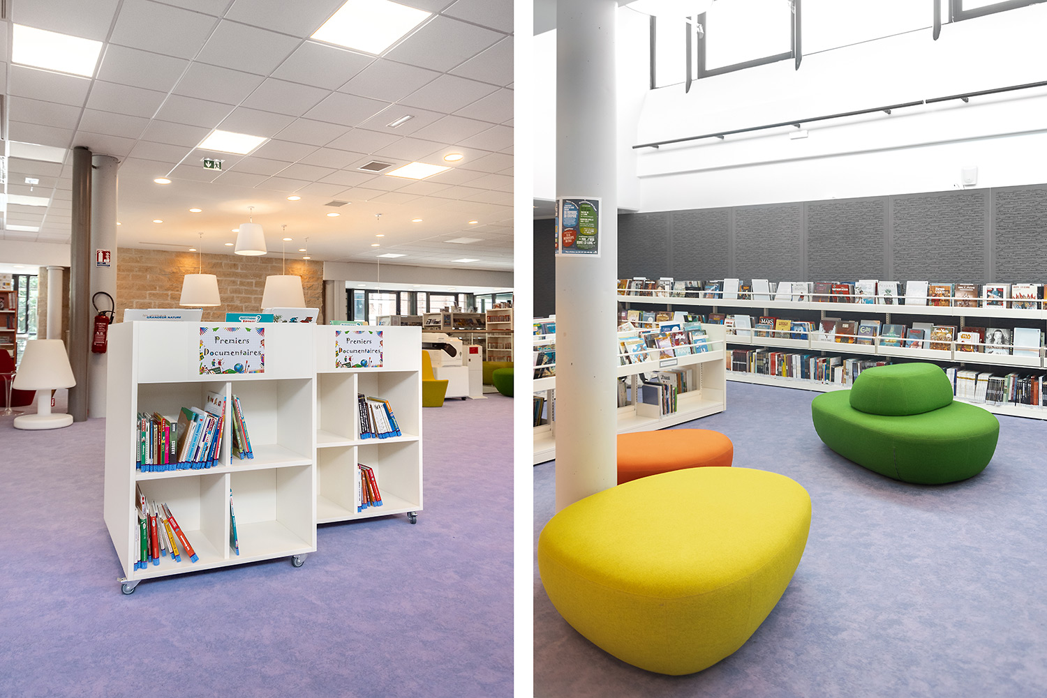 A l’étage, désormais les documentaires pour les enfants et les adultes sont regroupés sur un même espace, au 1er étage, en gardant la séparation de l’âge.