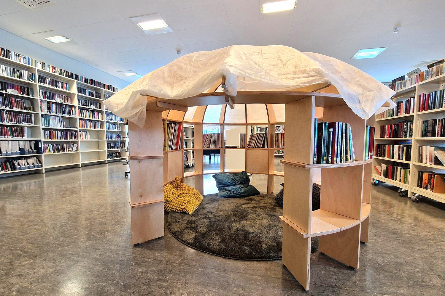 Dans certains endroits les rayonnages ont été spécialement intégrés dans des niches, tenant compte des bouches d’aération, chauffages et installations électriques.