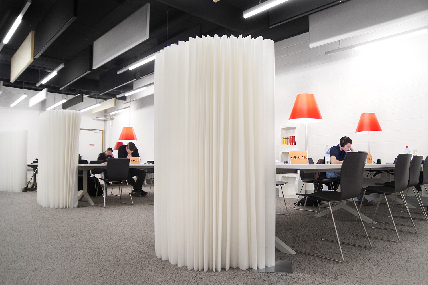 Même si la bibliothèque du campus Belval ne sera exploitée que pendant une durée limitée, cet espace a néanmoins été soigneusement aménagé pour répondre aux besoins et souhaits des étudiants
