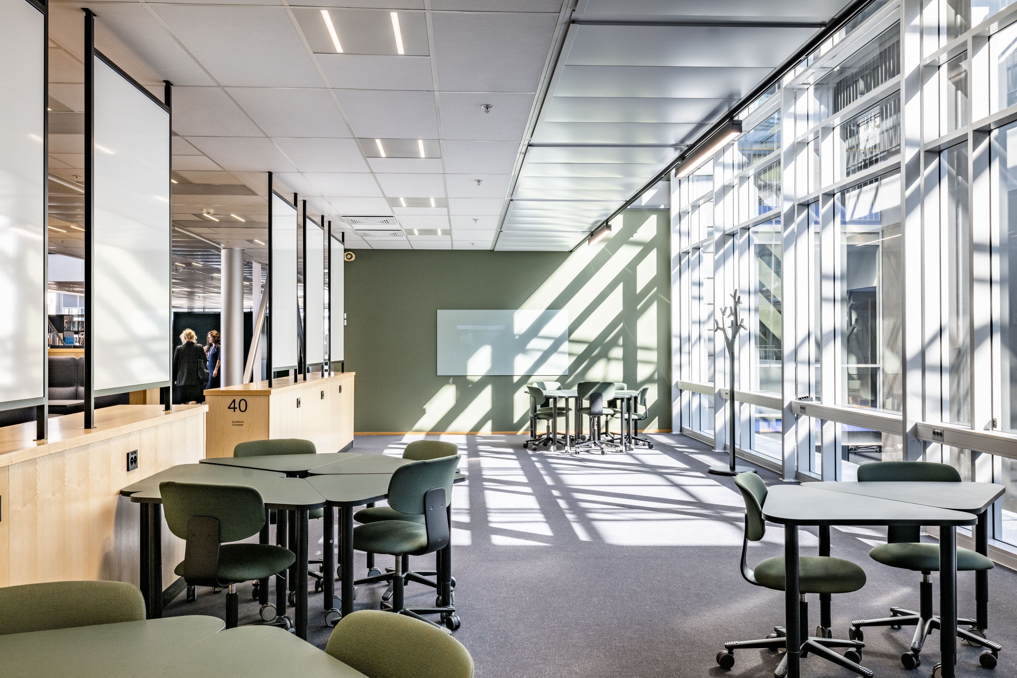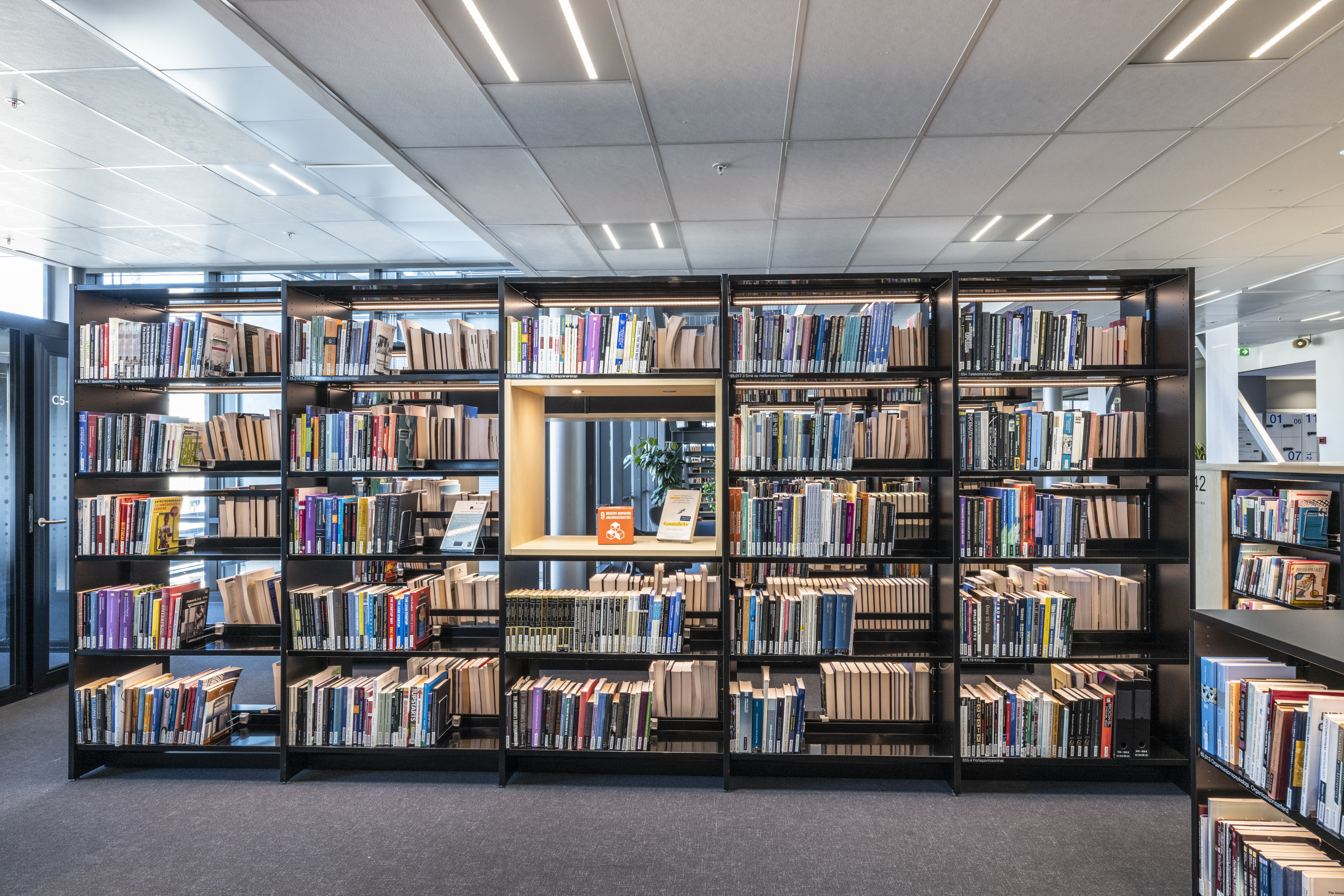 La bibliothèque de l’école de commerce d’Oslo communément appelée BI est l'une des bibliothèques de recherche et d'étude les plus modernes d'Europe. La bibliothèque se veut un espace de travail et de formation inspirant, qui favorise les dialogues et les relations entre les étudiants et le personnel éducatif, se stimulant les uns les autres. Les étudiants ont eux-mêmes joué un rôle important dans la conception de l'espace, en mettant l'accent sur la réduction du bruit, la collaboration et la concentration.