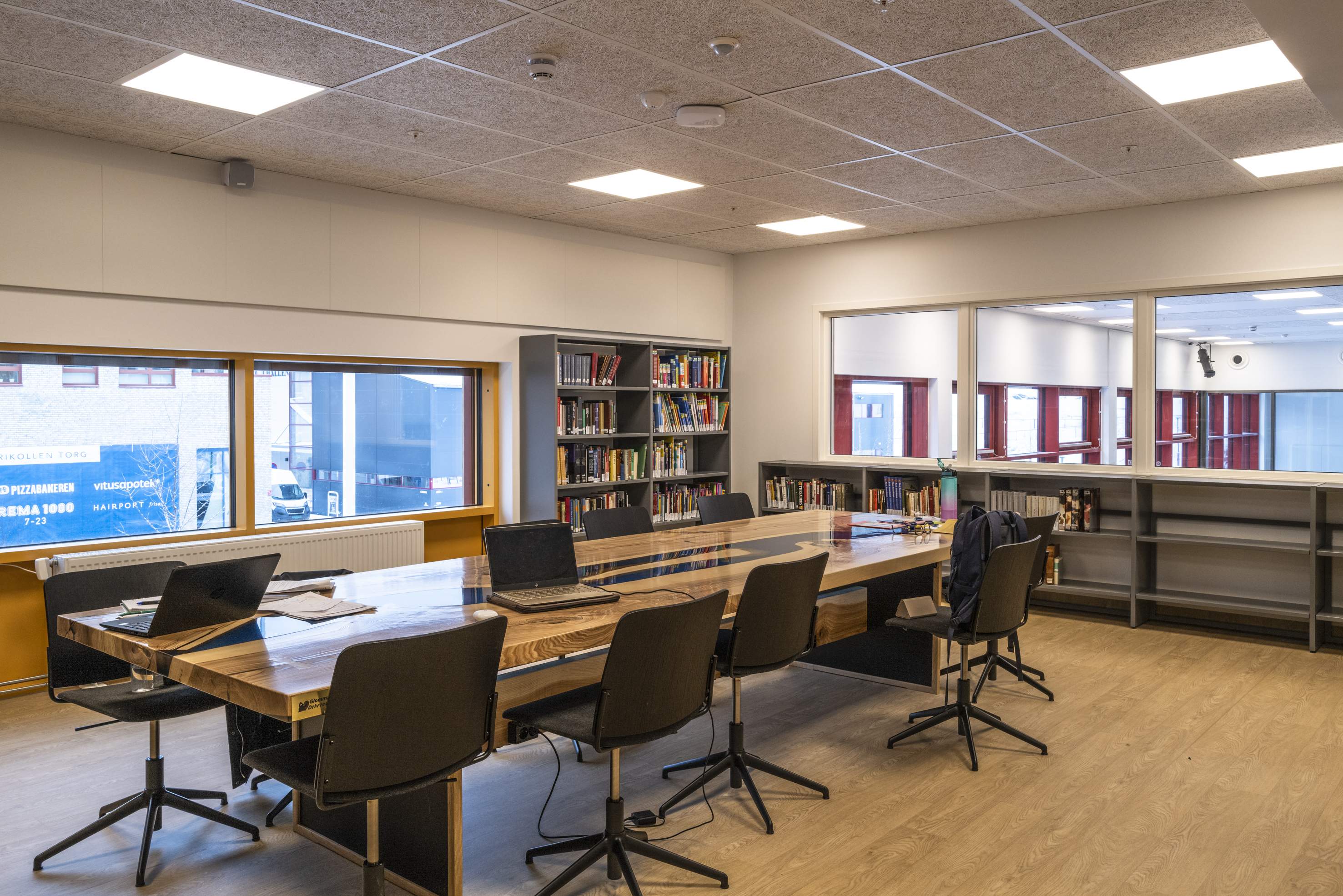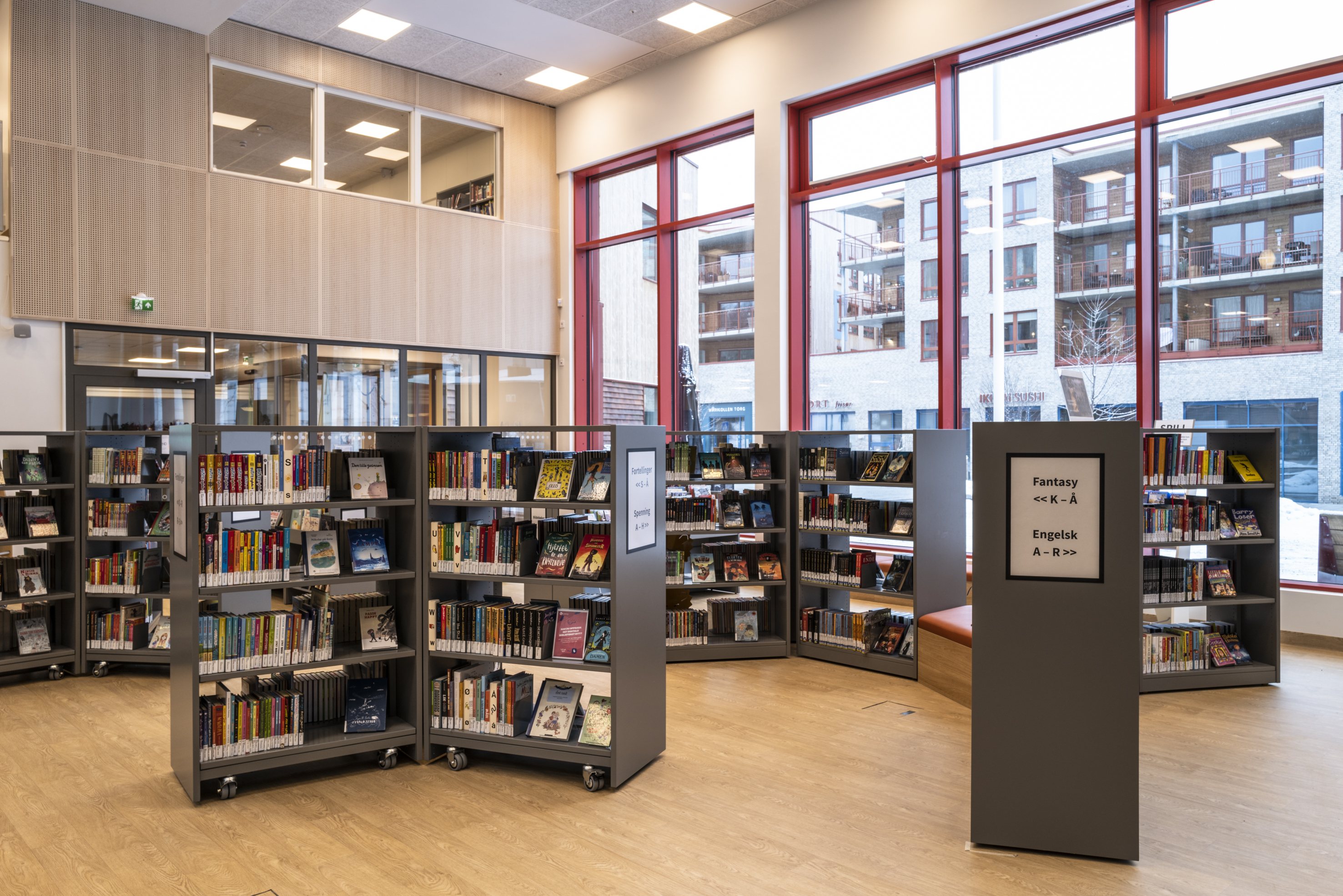 BS Eurobib, en Norvège, a eu le plaisir de fournir les systèmes d'étagères, les postes d'accueil et d'information, les sièges, les tables et la majeure partie du reste de l`équipement.