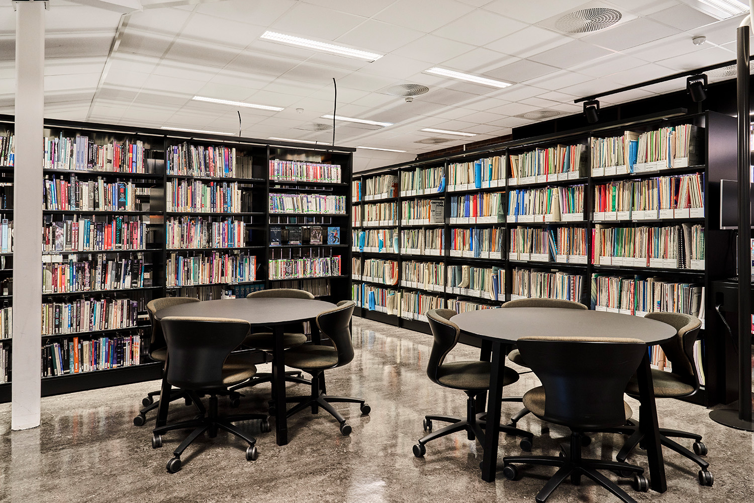 Après plusieurs mois de travaux de rénovation intensifs, la bibliothèque universitaire a réouvert ses portes en novembre 2020 dans des espaces modernes et décloisonnés, adaptés à un environnement d'étude dynamique et polyvalent. L'accent est mis sur les espaces sociaux, les espaces de travail en groupe et les salles spécialisées. Notre filiale norvégienne BS Eurobib a été chargée de fournir tout le système d'étagères, qui a été complété en 2022 par d'autres mobiliers avec notamment des meubles porte-revues permettant de présenter et de stocker les magazines.