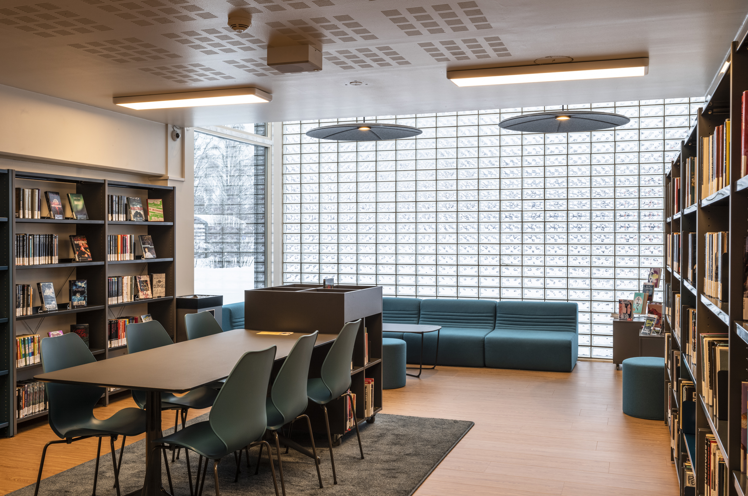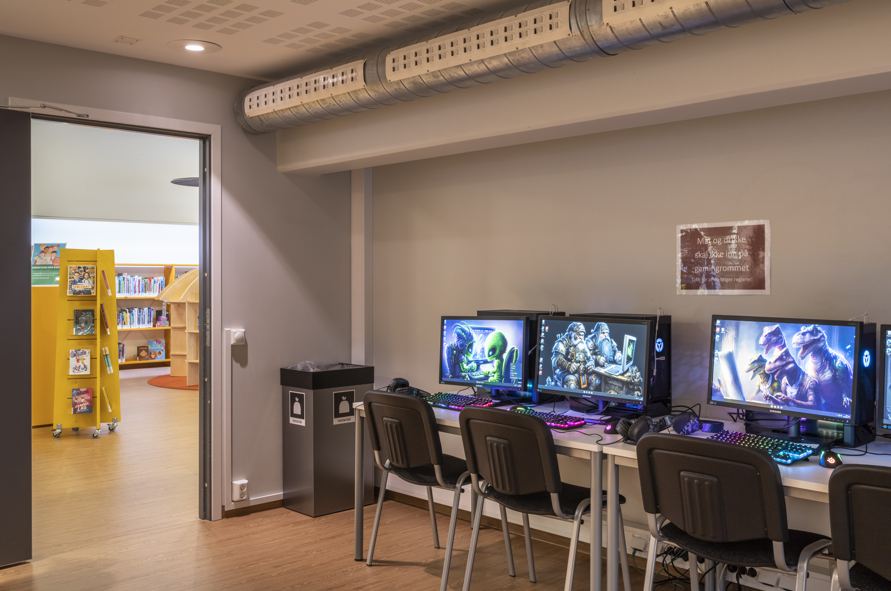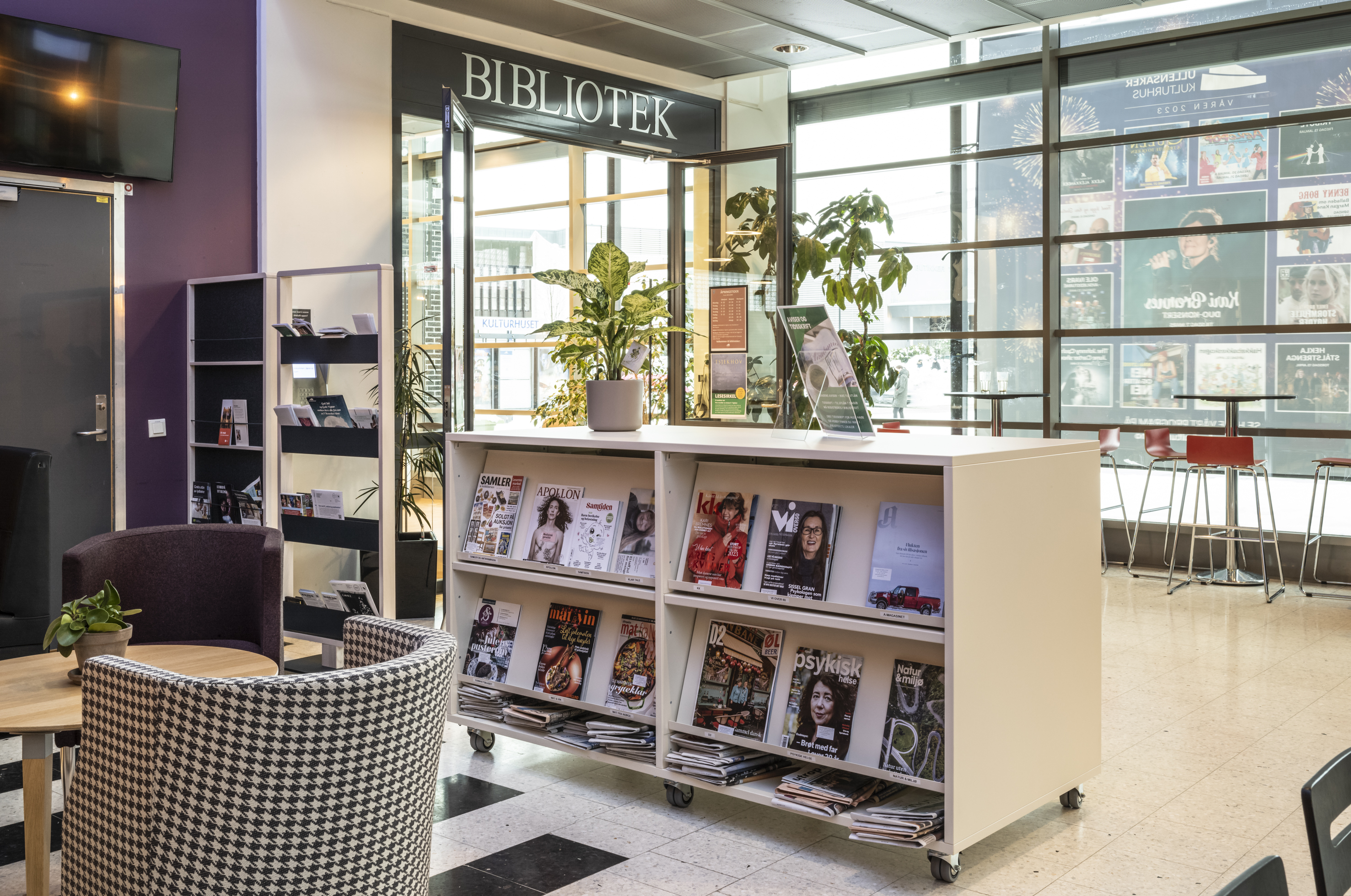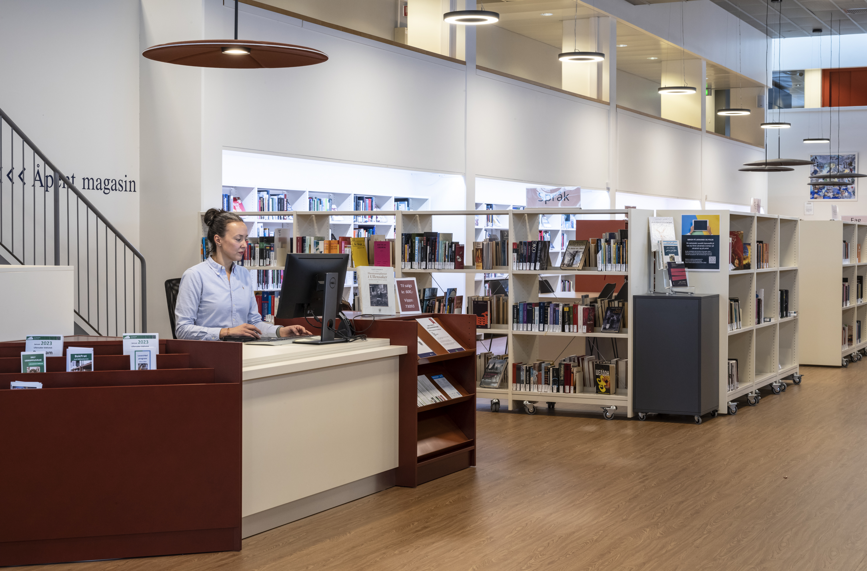 La bibliothèque municipale d'Ullensaker est située dans la ville de Jessheim. Le 5 janvier 2023, elle a été officiellement réouverte après d'importants travaux de rénovation, au cours desquels tout le mobilier a été renouvelé. En outre les coloris choisis s'harmonisent avec les éléments de base des locaux restaurés.